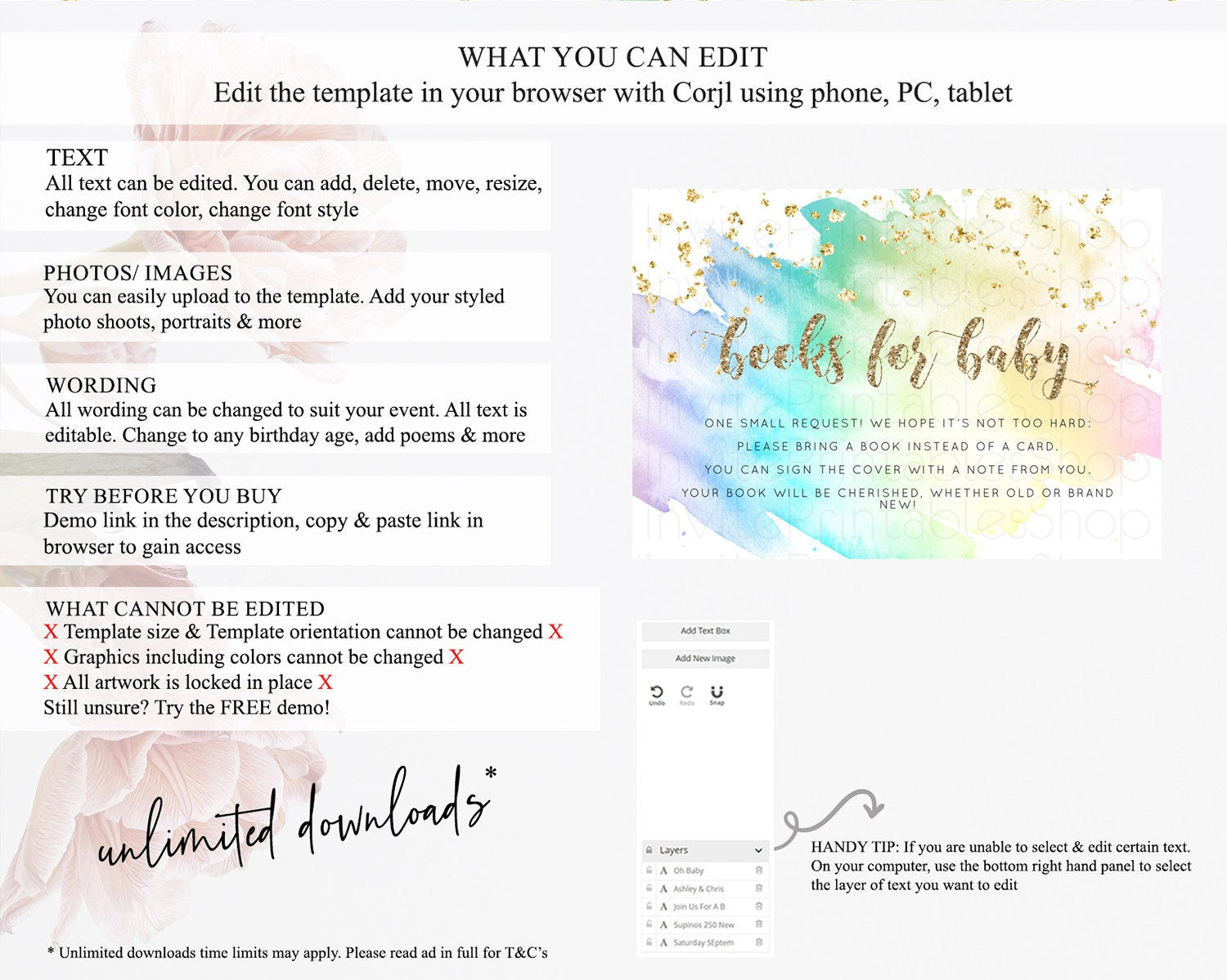 • After purchase, Corjl emails your editing link. Allow up to 15 minutes for delivery.