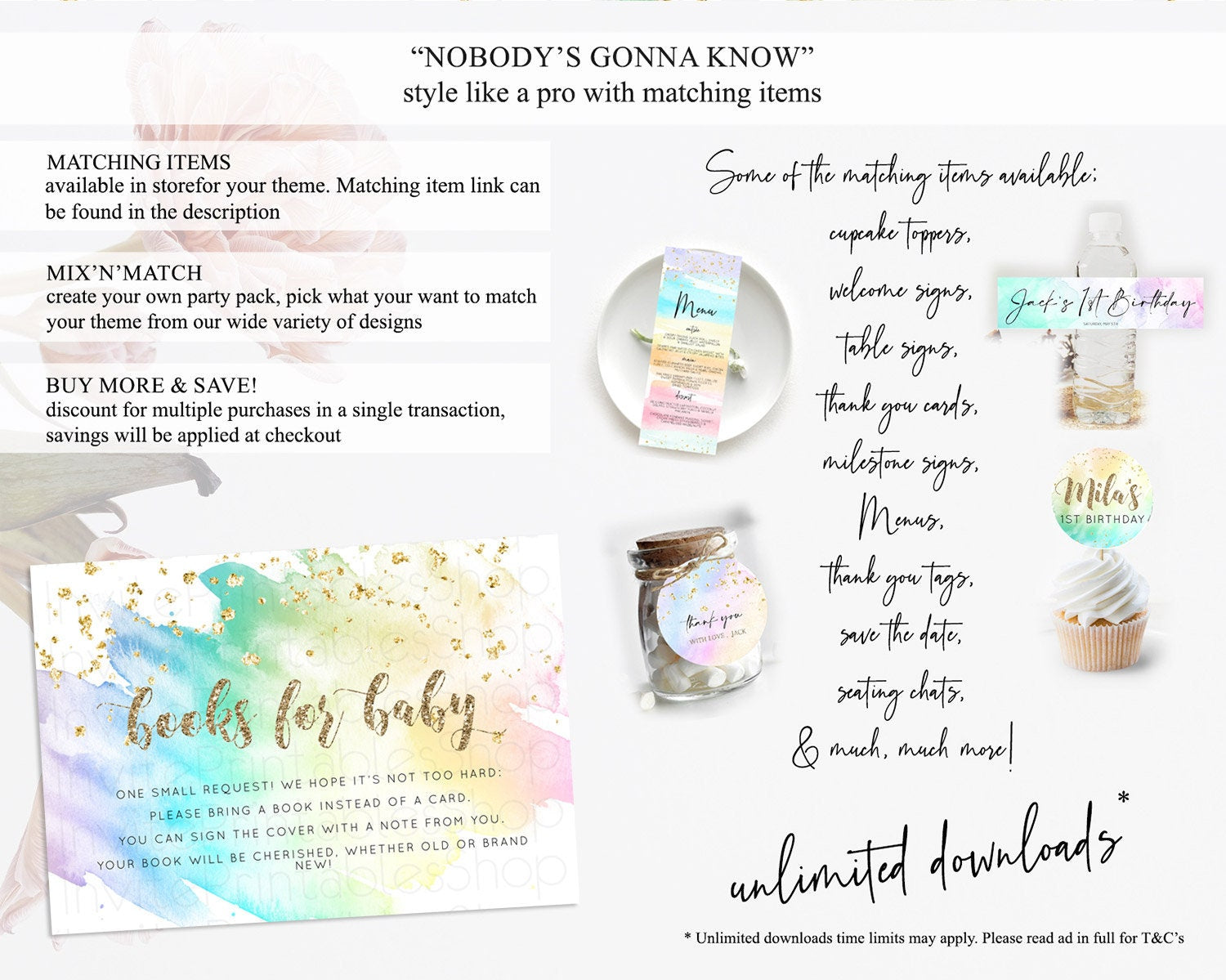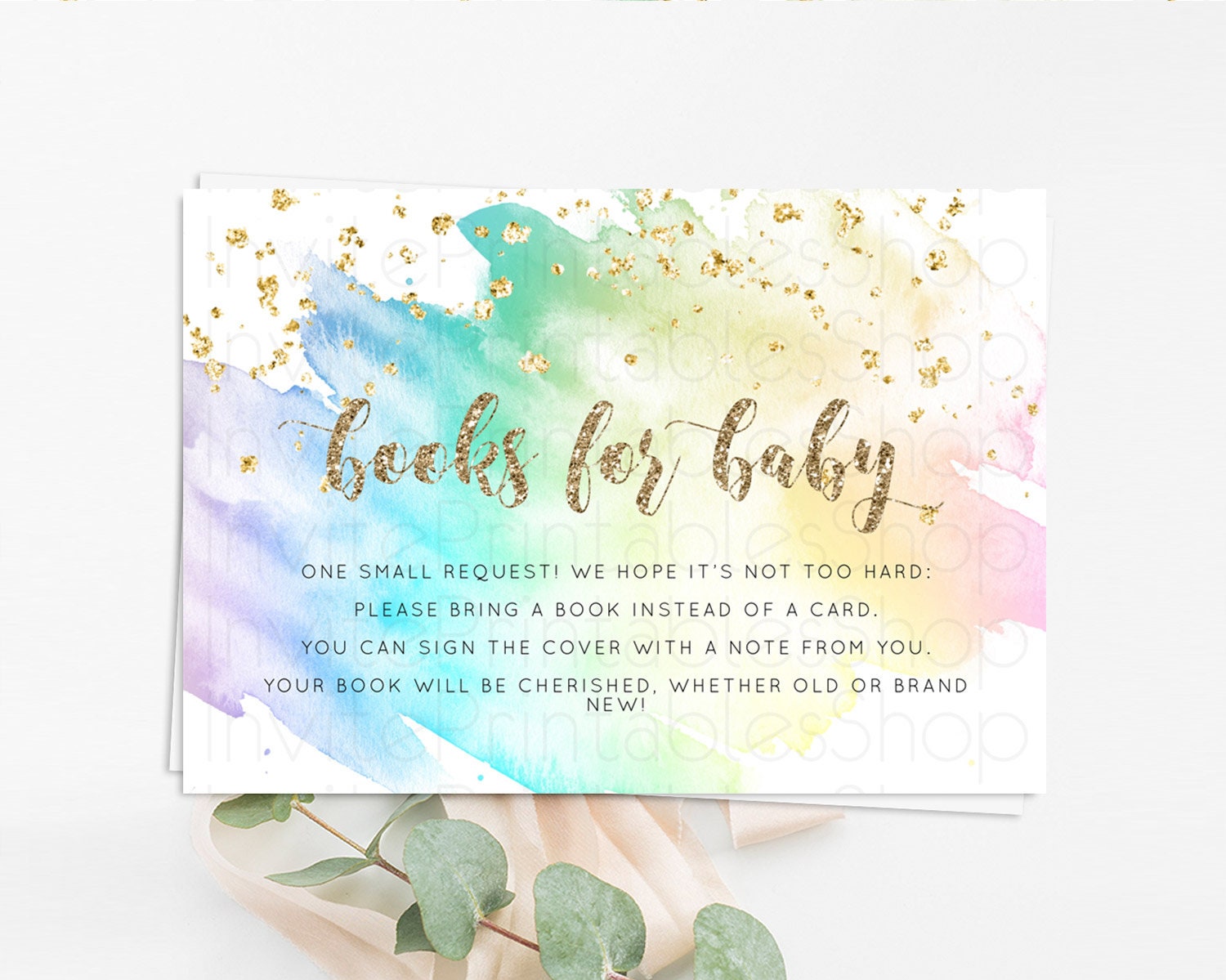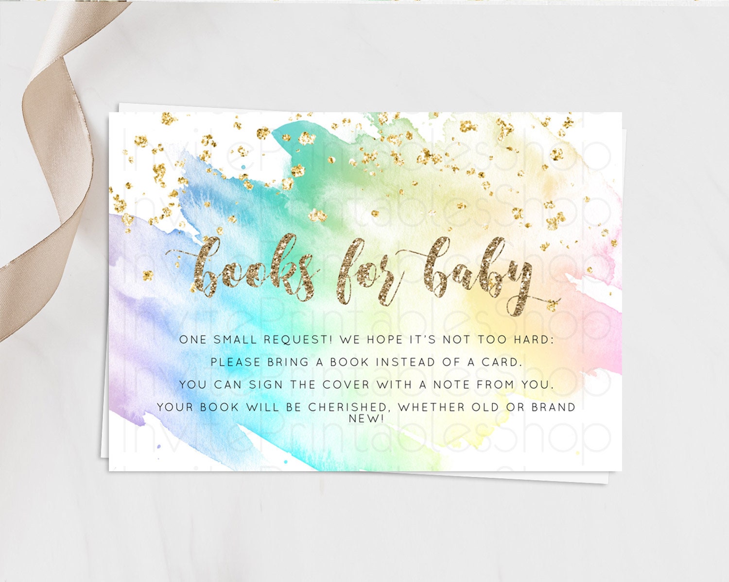 Pastel Books For Baby Card Pastel Rainbow Book Insert Colorful Ombre Watercolor Book Card Confetti Glitter Baby Book Poem Request D10259