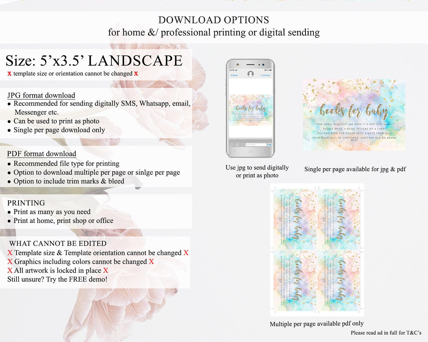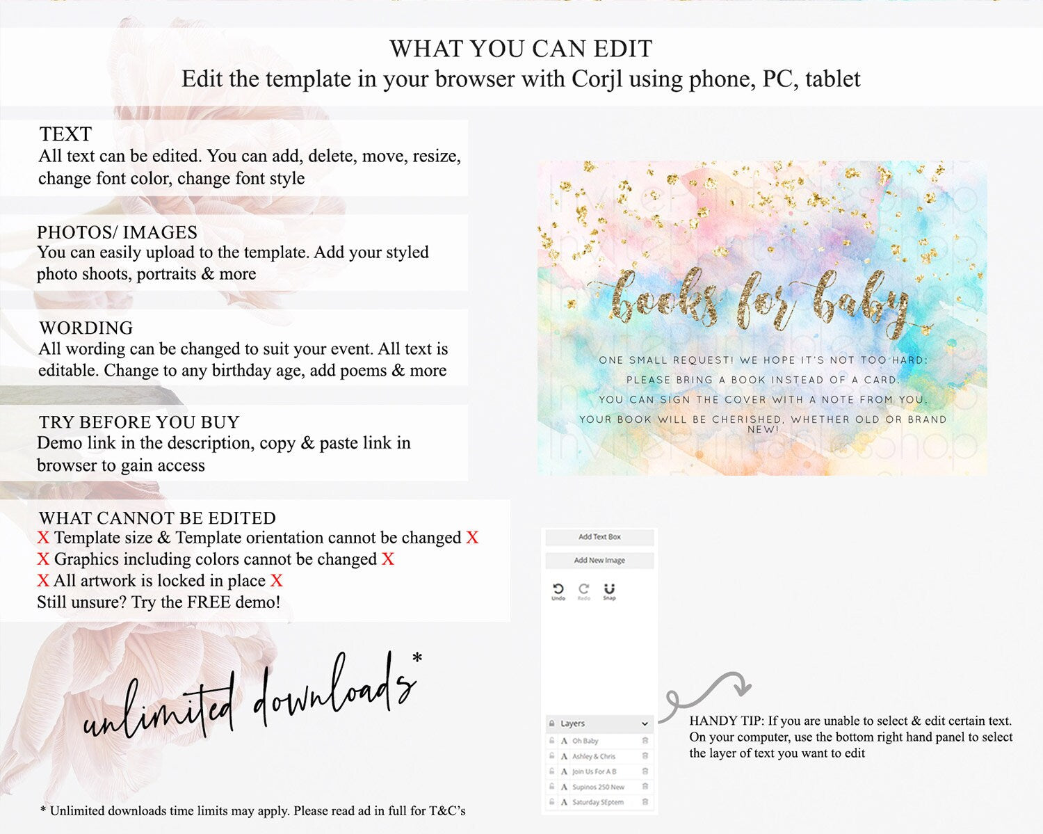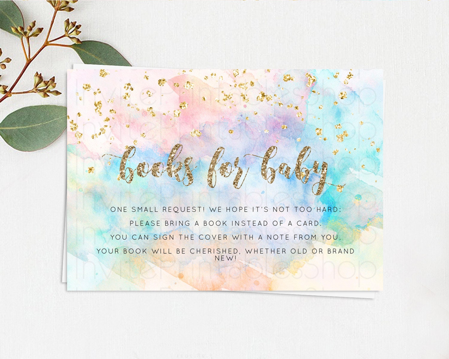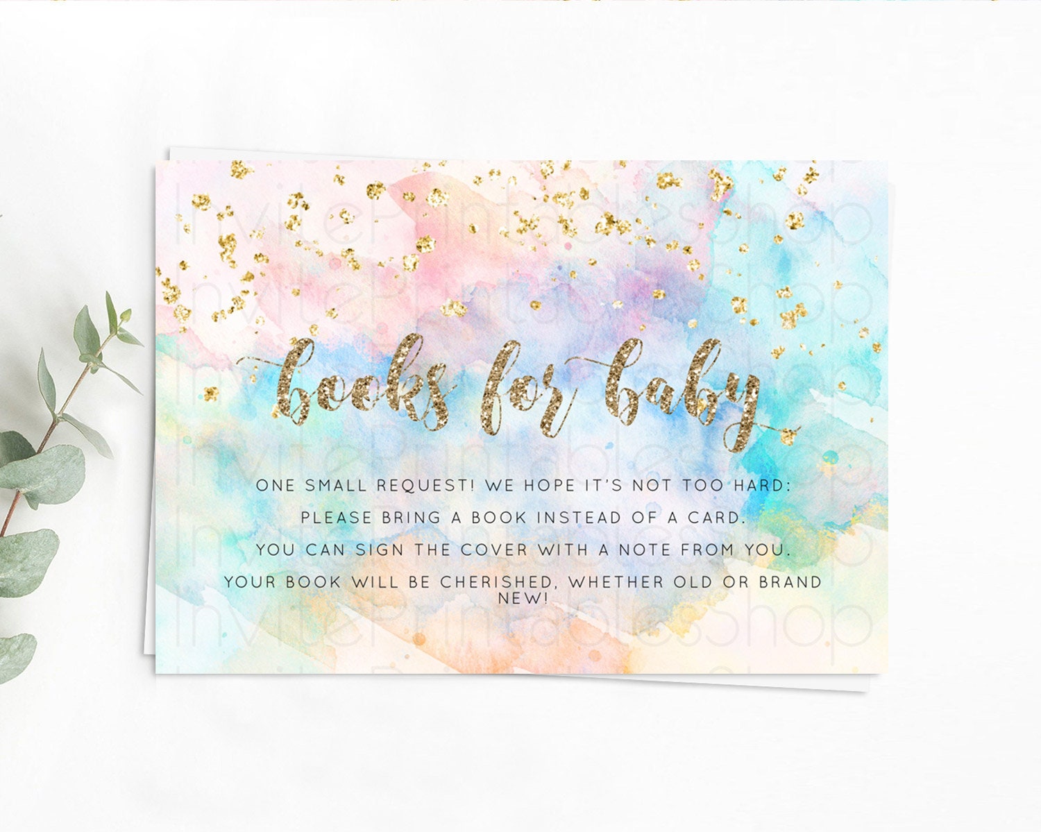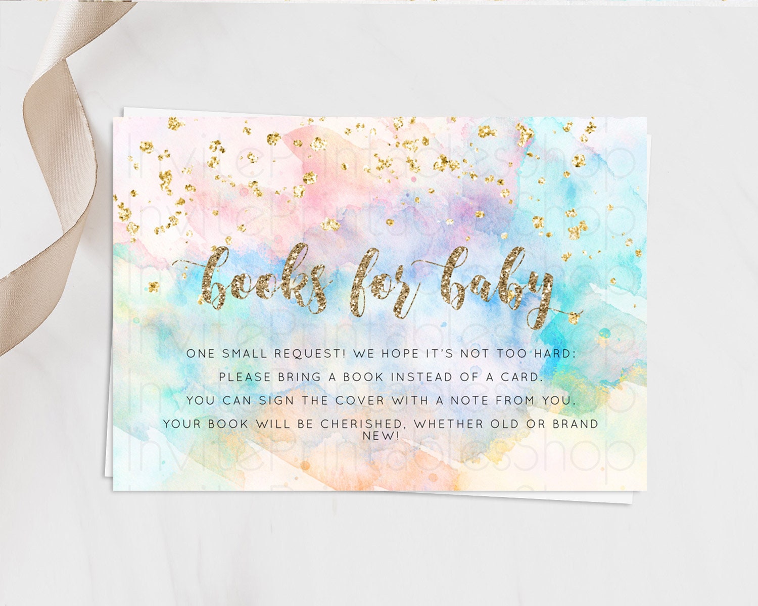 Pastel Books For Baby Card Pastel Rainbow Book Insert Colorful Ombre Watercolor Book Card Confetti Glitter Baby Book Poem Request D10261