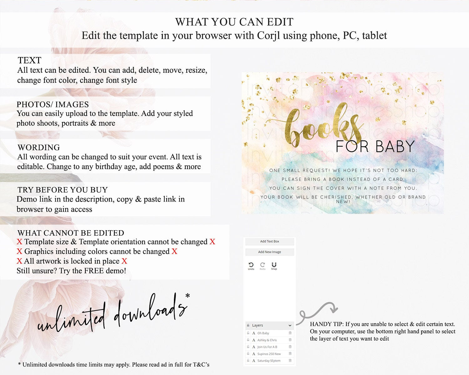 • After purchase, Corjl emails your editing link. Allow up to 15 minutes for delivery.