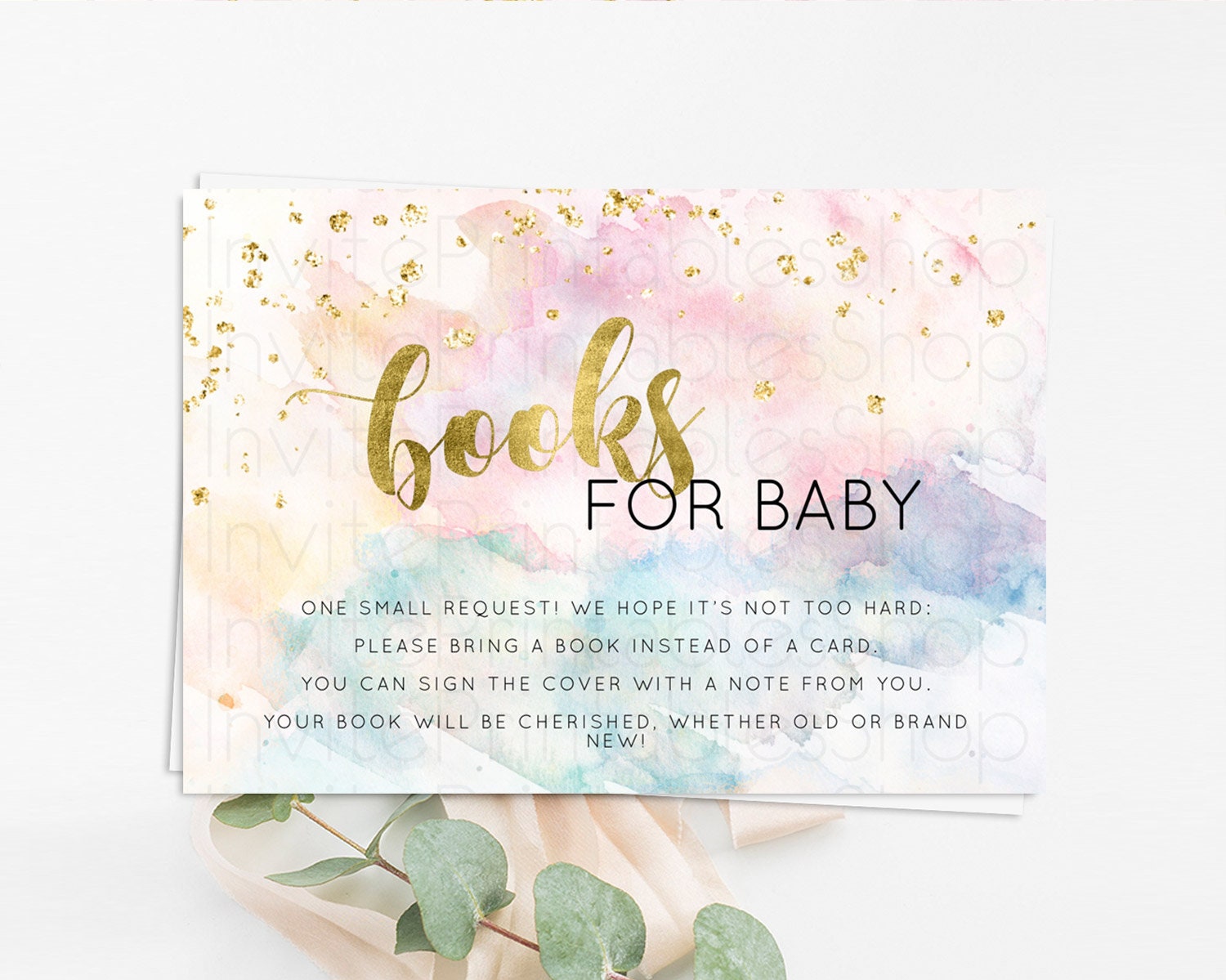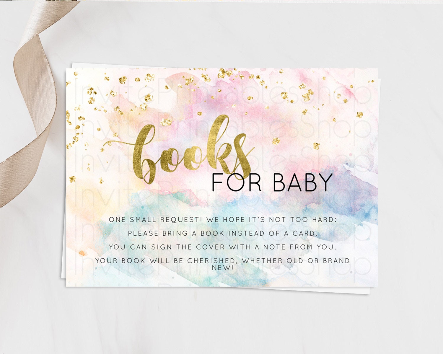 Pastel Books For Baby Card Pastel Rainbow Book Insert Colorful Ombre Watercolor Book Card Confetti Glitter Baby Book Poem Request D10265