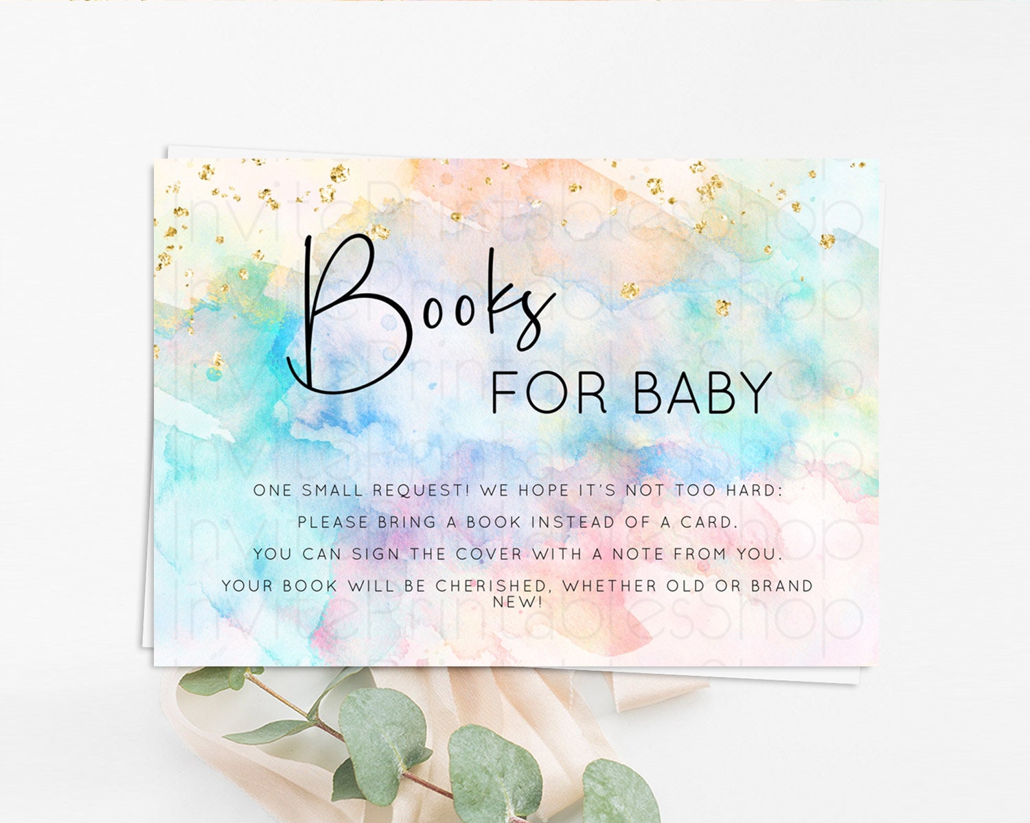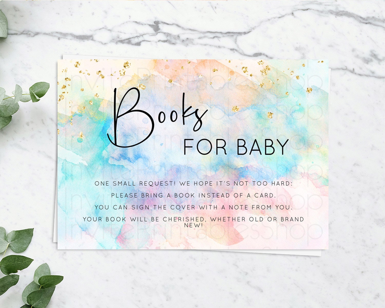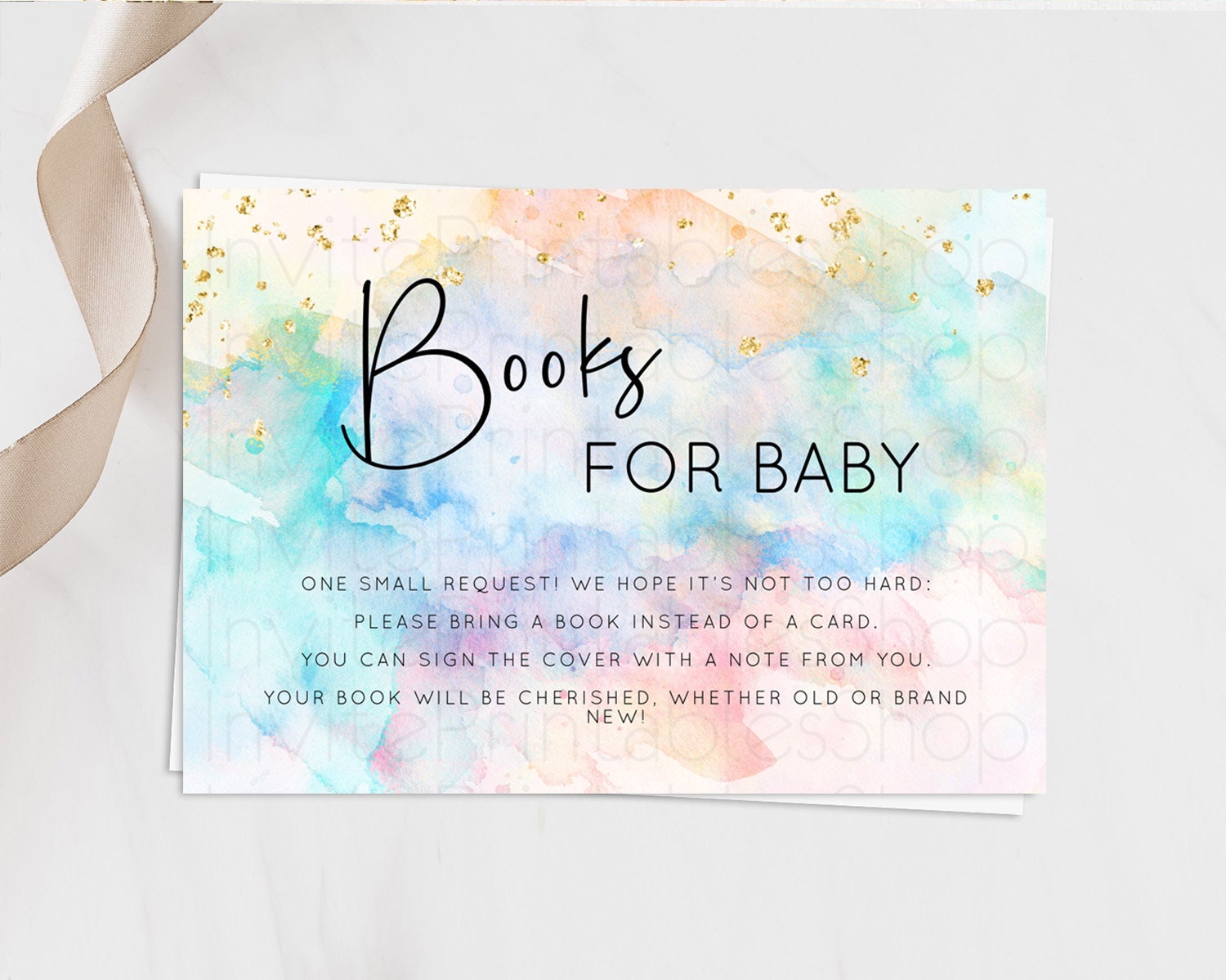 Pastel Books For Baby Card Pastel Rainbow Book Insert Colorful Ombre Watercolor Book Card Confetti Glitter Baby Book Poem Request D10266