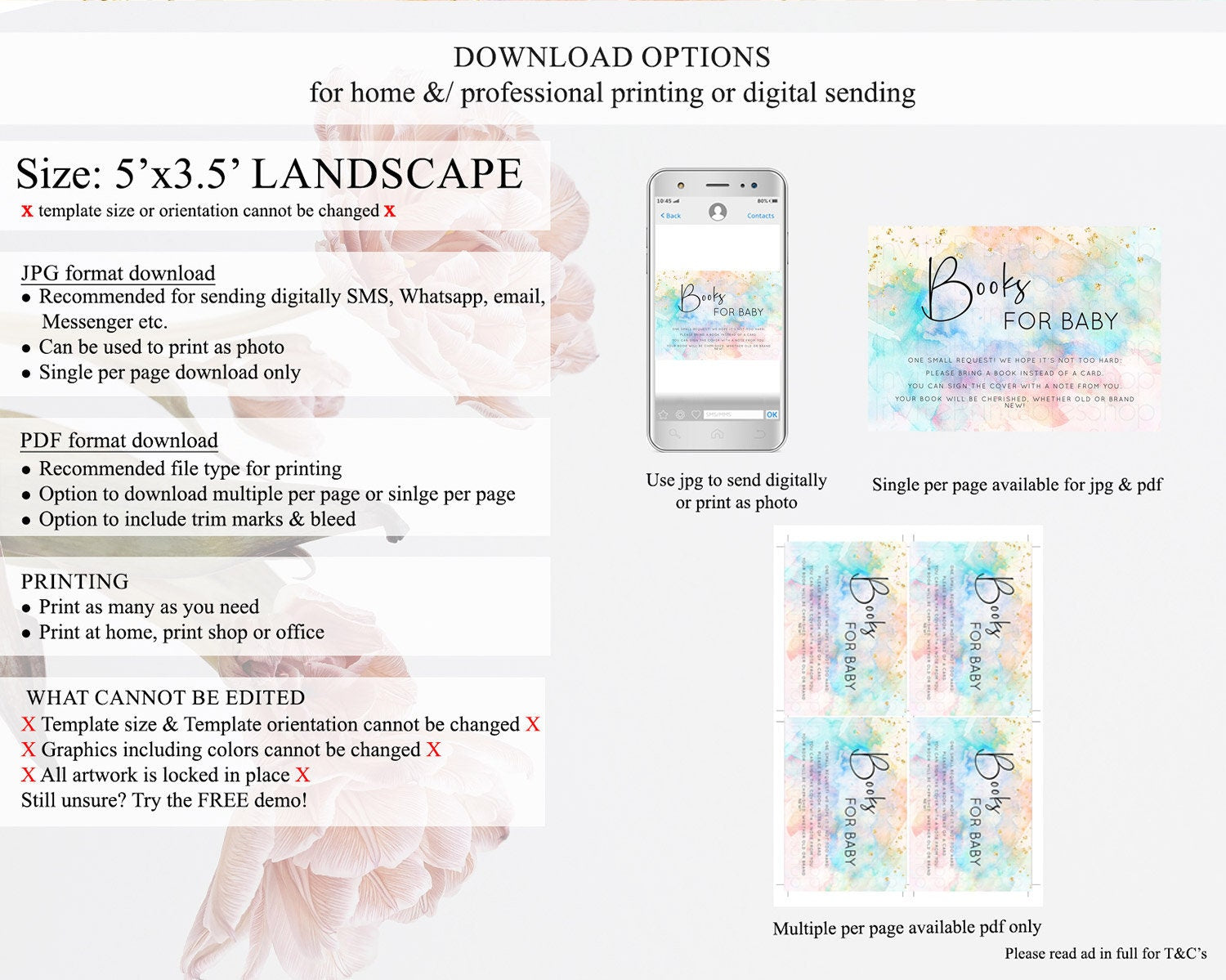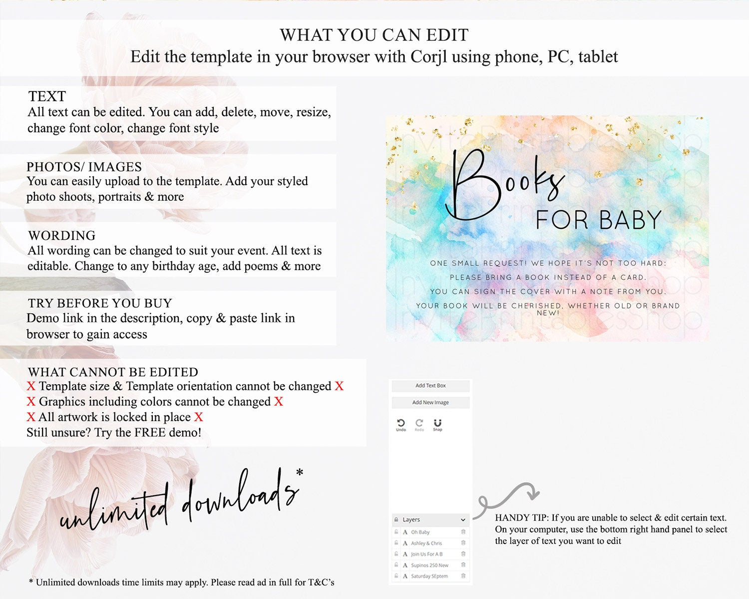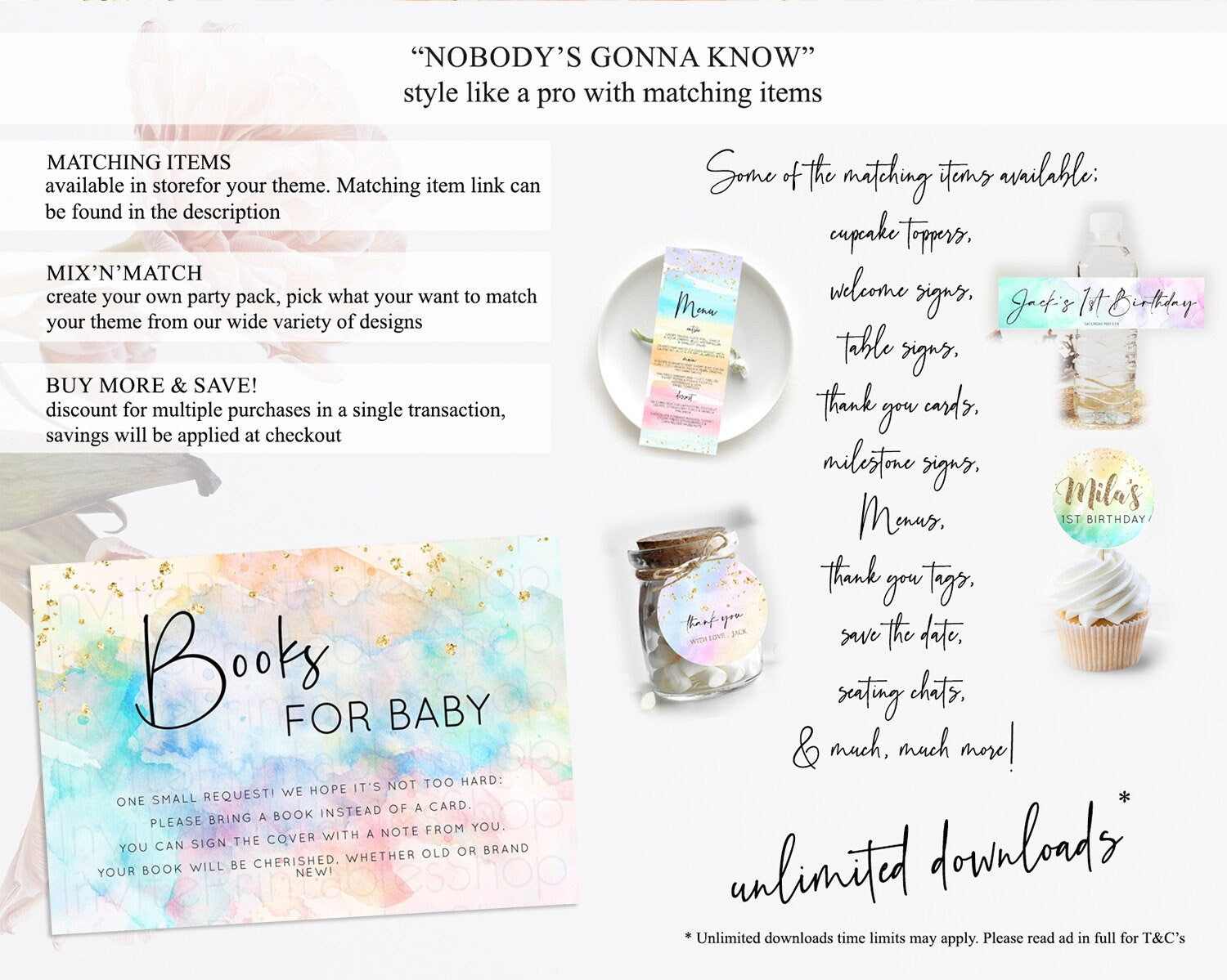 Pastel Books For Baby Card Pastel Rainbow Book Insert Colorful Ombre Watercolor Book Card Confetti Glitter Baby Book Poem Request D10266