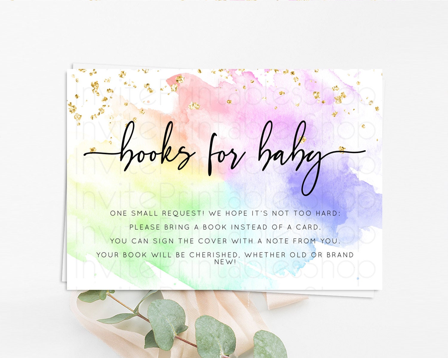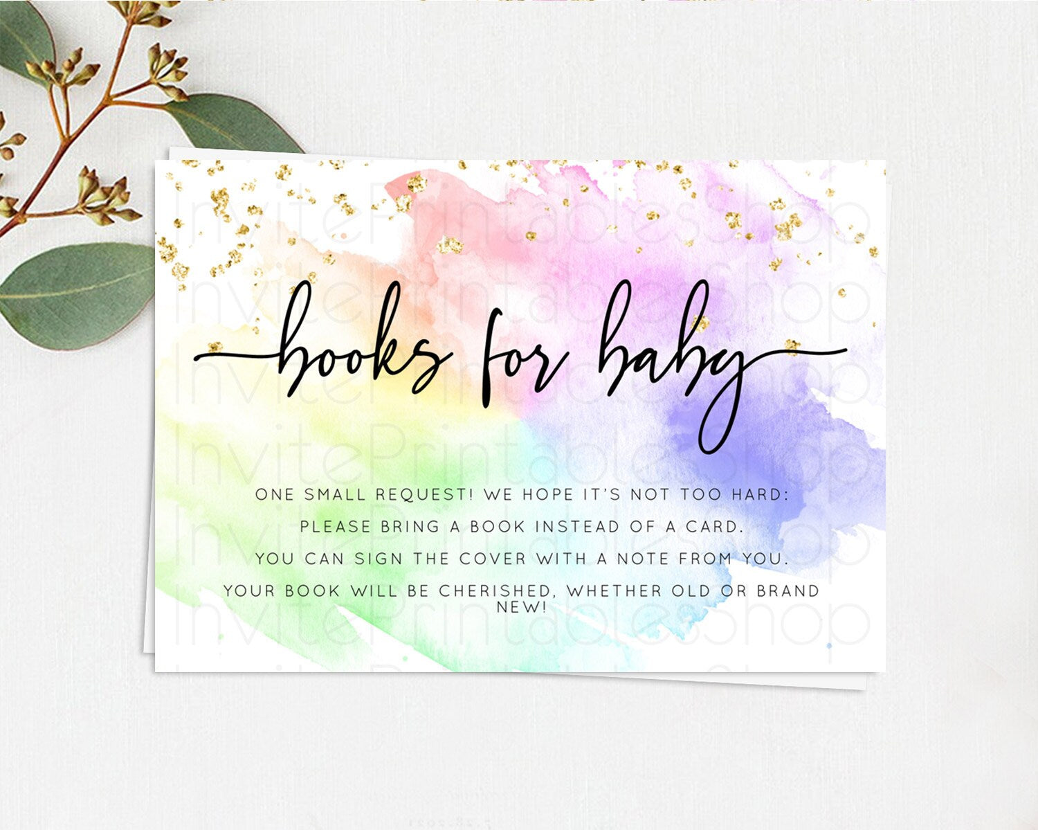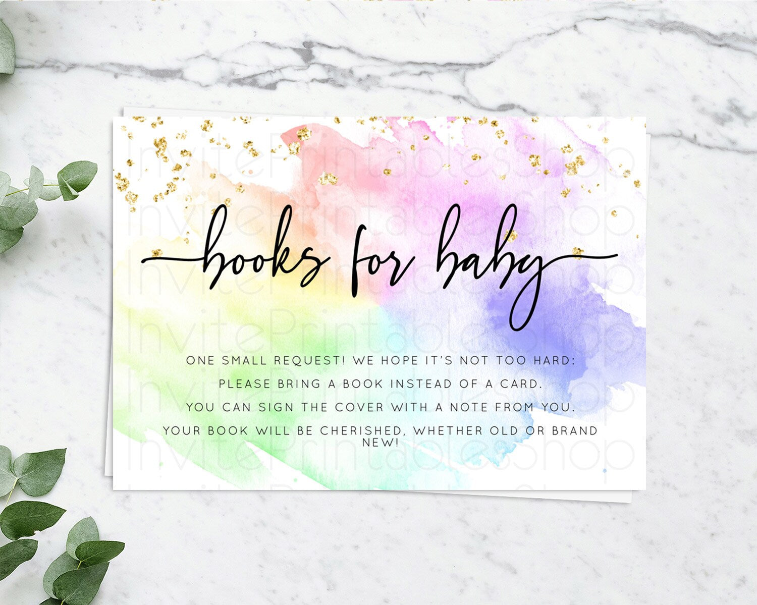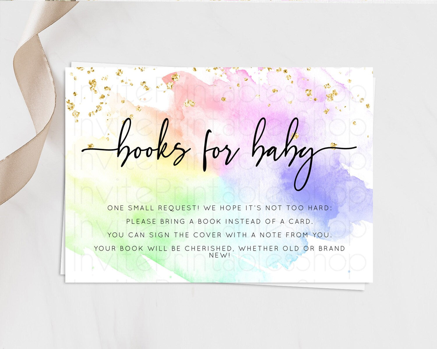Pastel Books For Baby Card Pastel Rainbow Book Insert Colorful Ombre Watercolor Book Card Confetti Glitter Baby Book Poem Request D10316