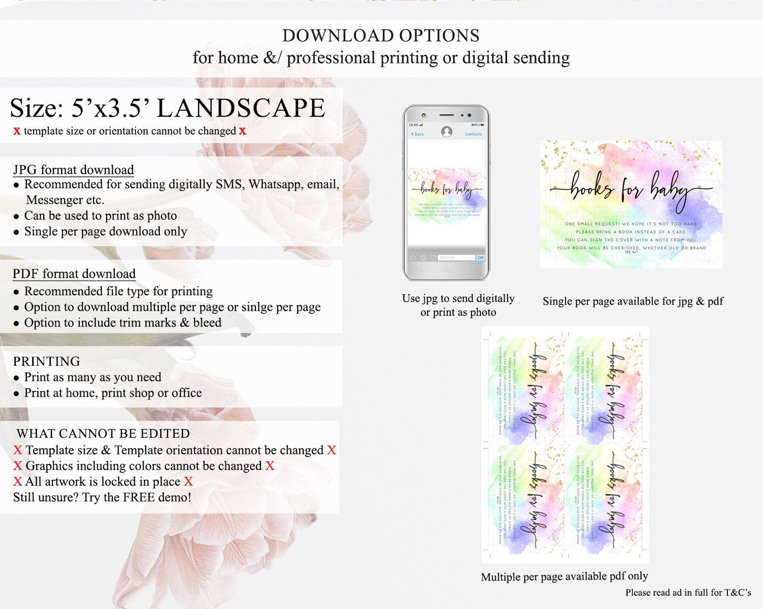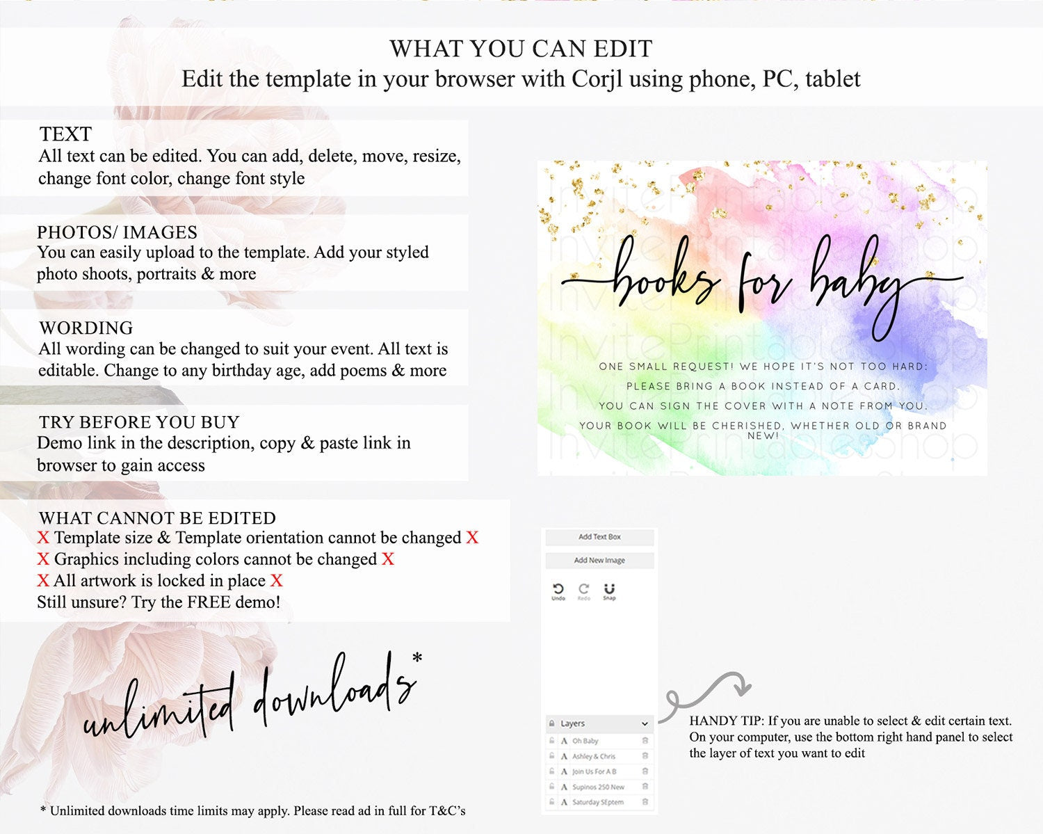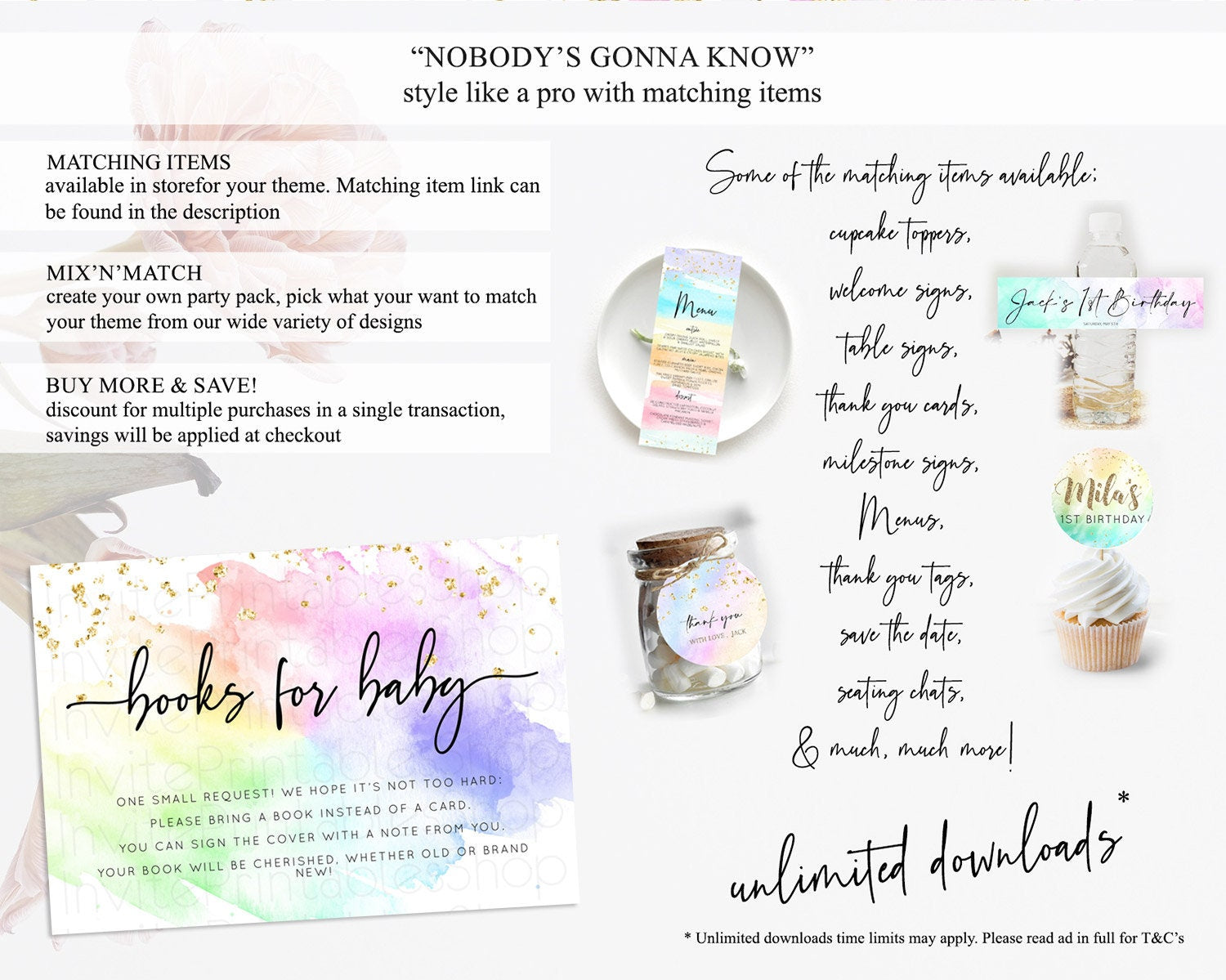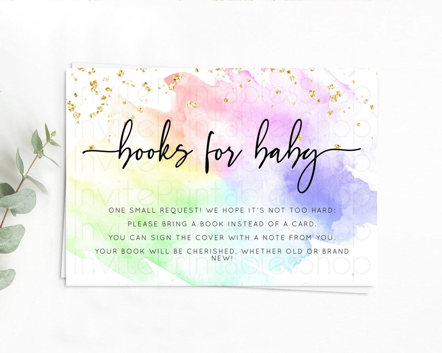 Pastel Books For Baby Card Pastel Rainbow Book Insert Colorful Ombre Watercolor Book Card Confetti Glitter Baby Book Poem Request D10316