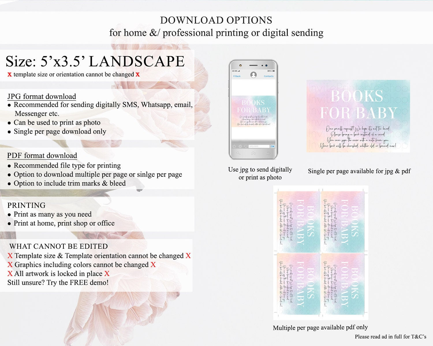 Pastel Books For Baby Card Pastel Rainbow Book Insert Colorful Ombre Watercolor Book Card Confetti Glitter Baby Book Poem Request D10375