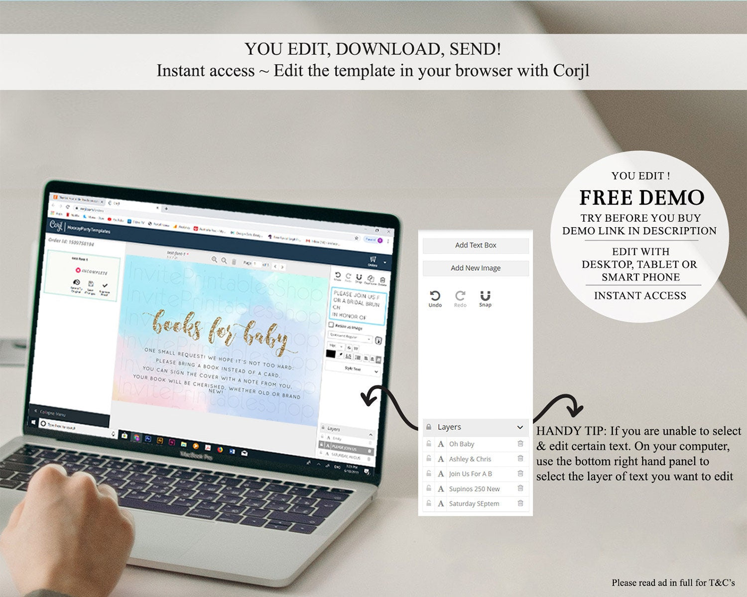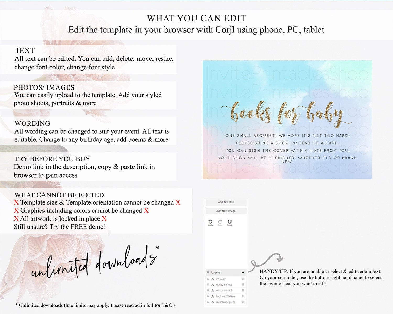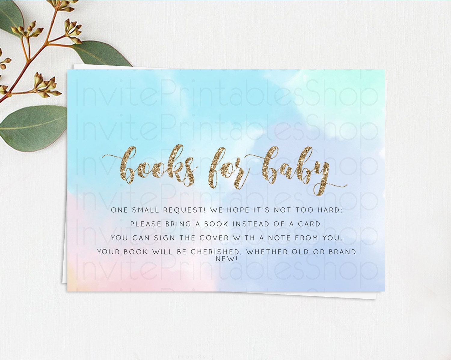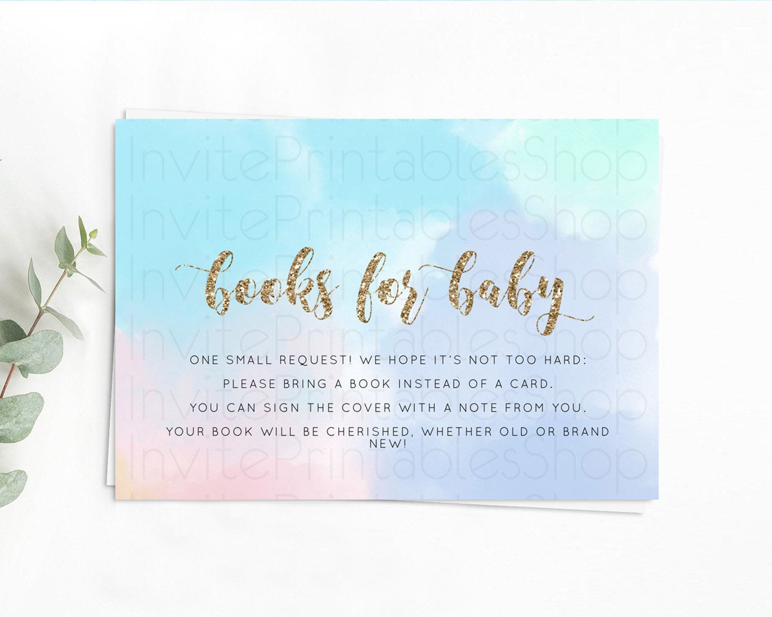 Pastel Books For Baby Card Pastel Rainbow Book Insert Colorful Ombre Watercolor Book Card Confetti Glitter Baby Book Poem Request D10378