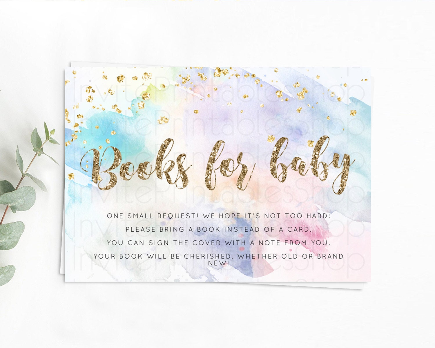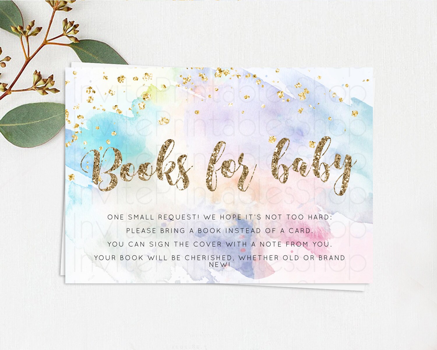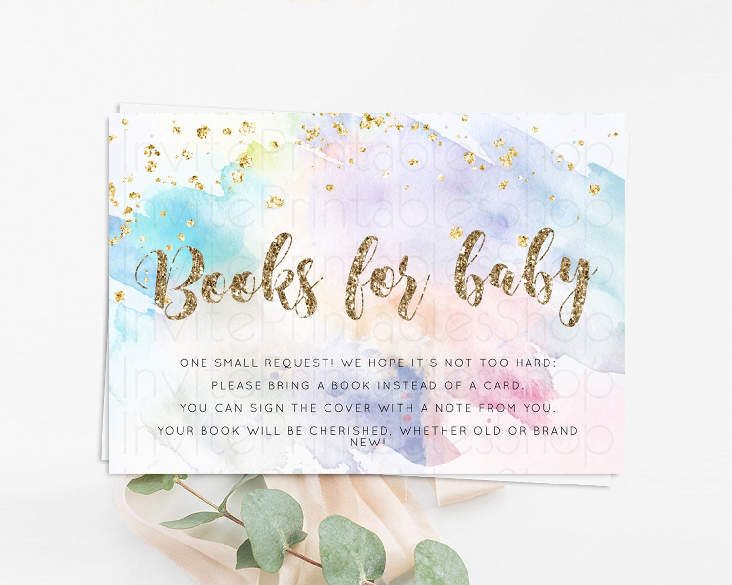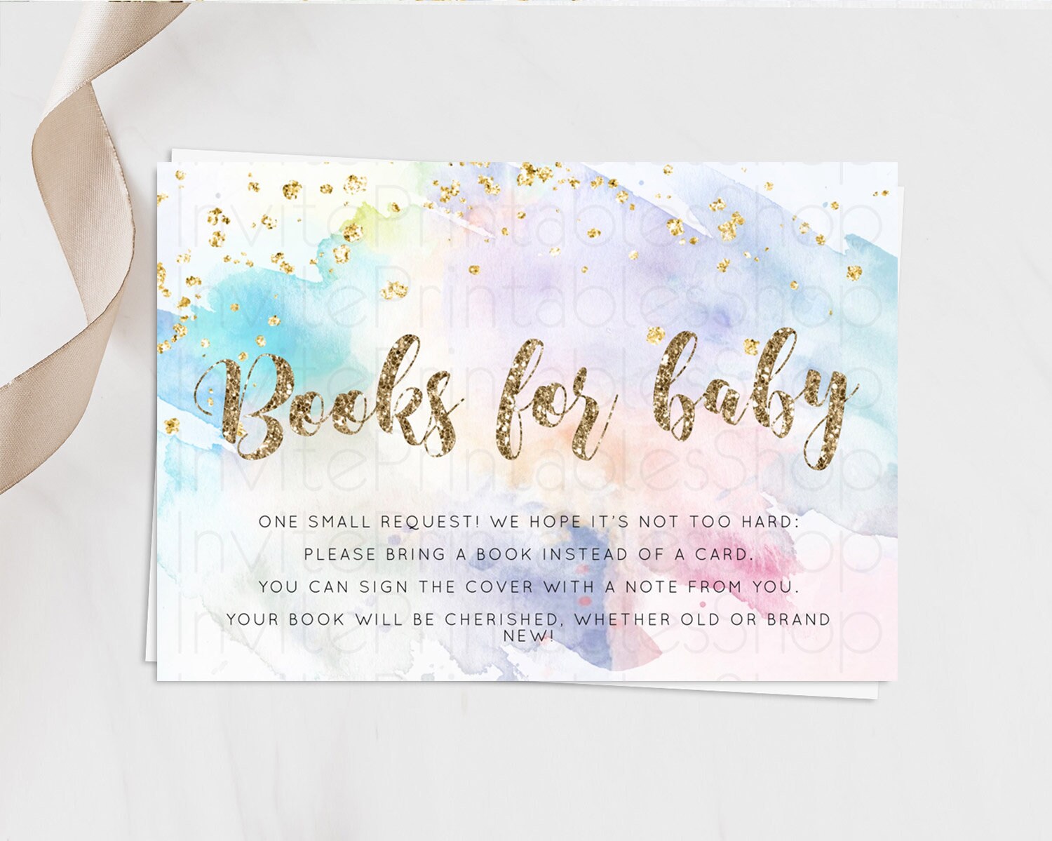 Pastel Books For Baby Card Pastel Rainbow Book Insert Colorful Ombre Watercolor Book Card Confetti Glitter Baby Book Poem Request D10421