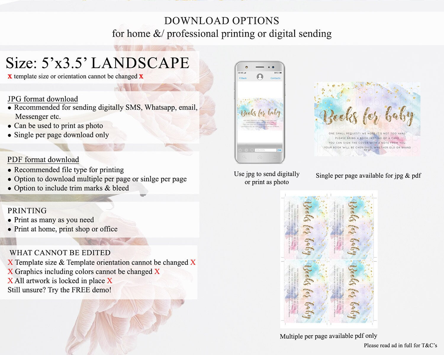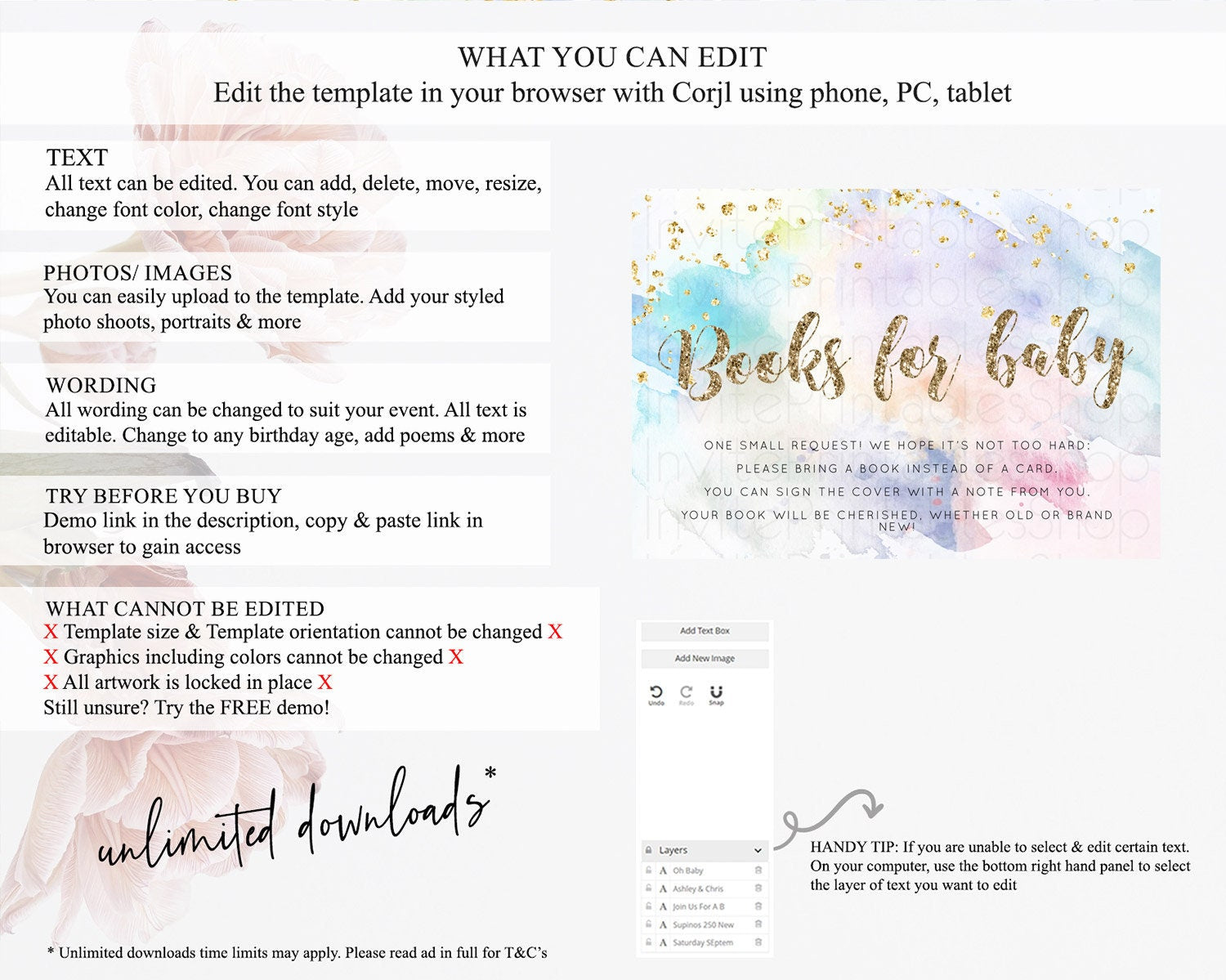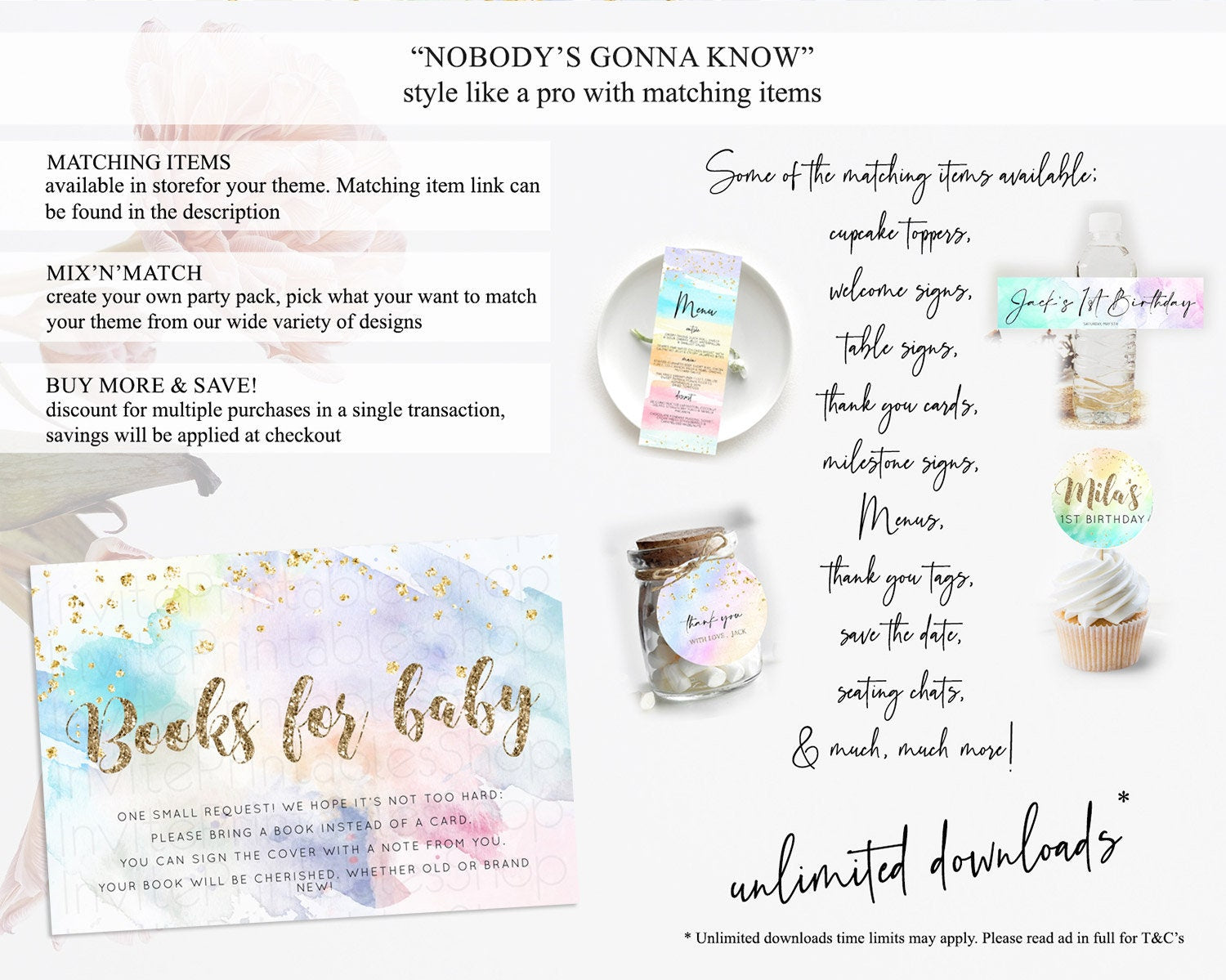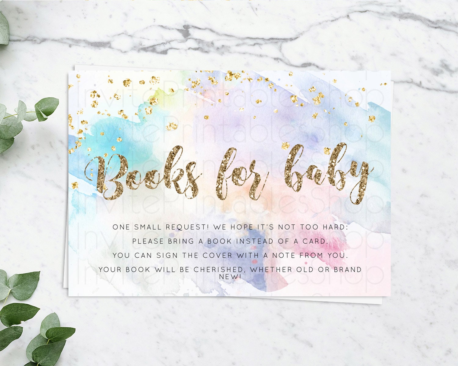Pastel Books For Baby Card Pastel Rainbow Book Insert Colorful Ombre Watercolor Book Card Confetti Glitter Baby Book Poem Request D10421