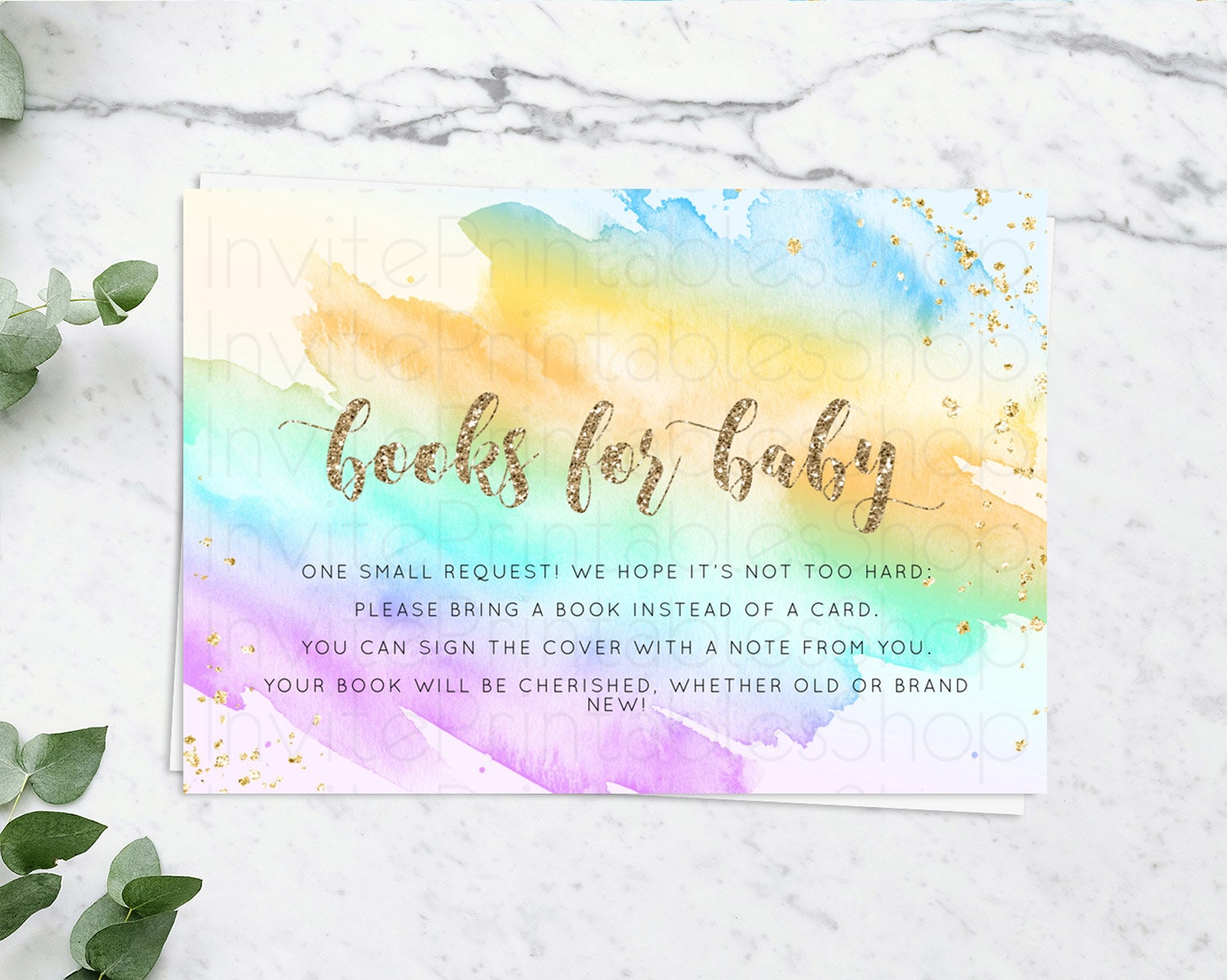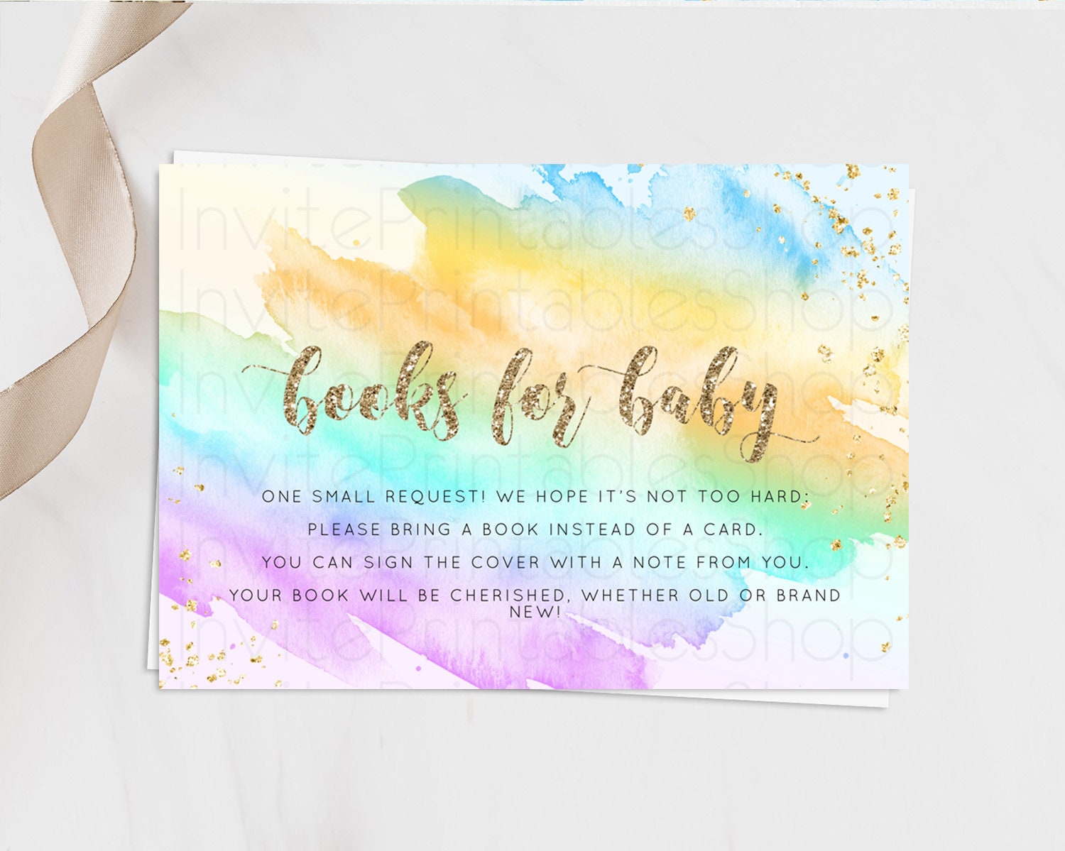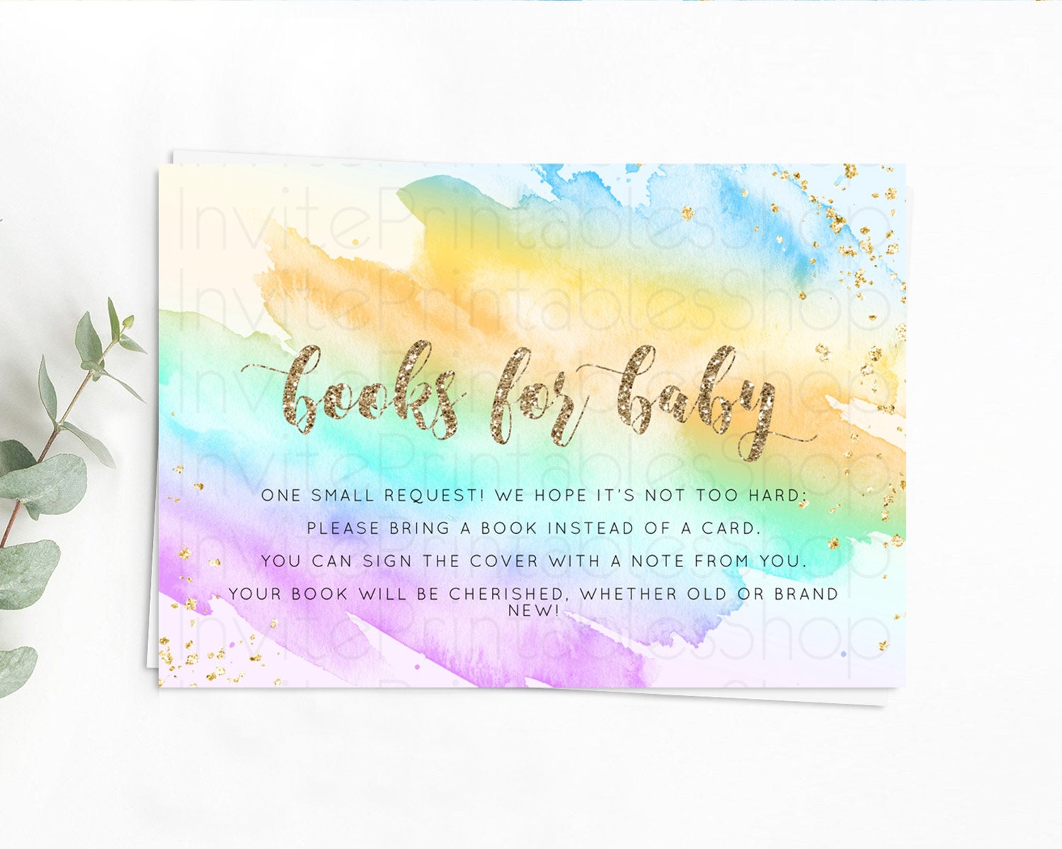 Pastel Books For Baby Card Pastel Rainbow Book Insert Colorful Ombre Watercolor Book Card Confetti Glitter Baby Book Poem Request D10426