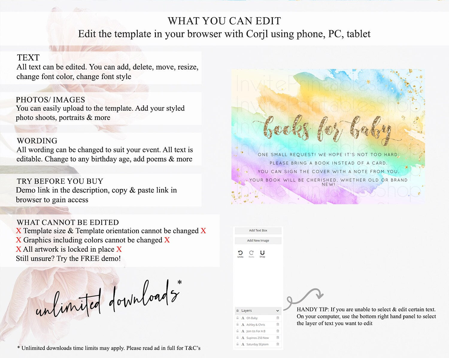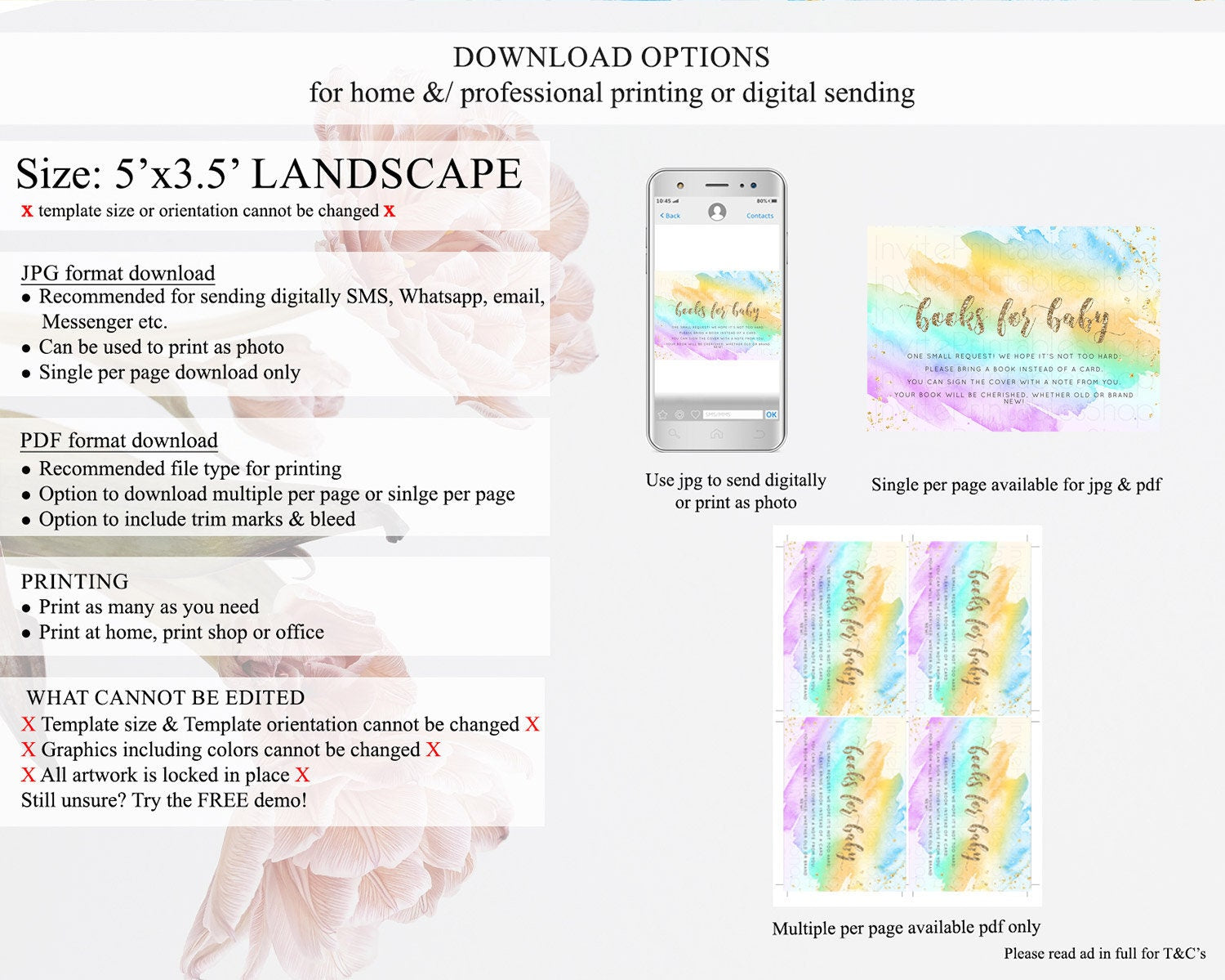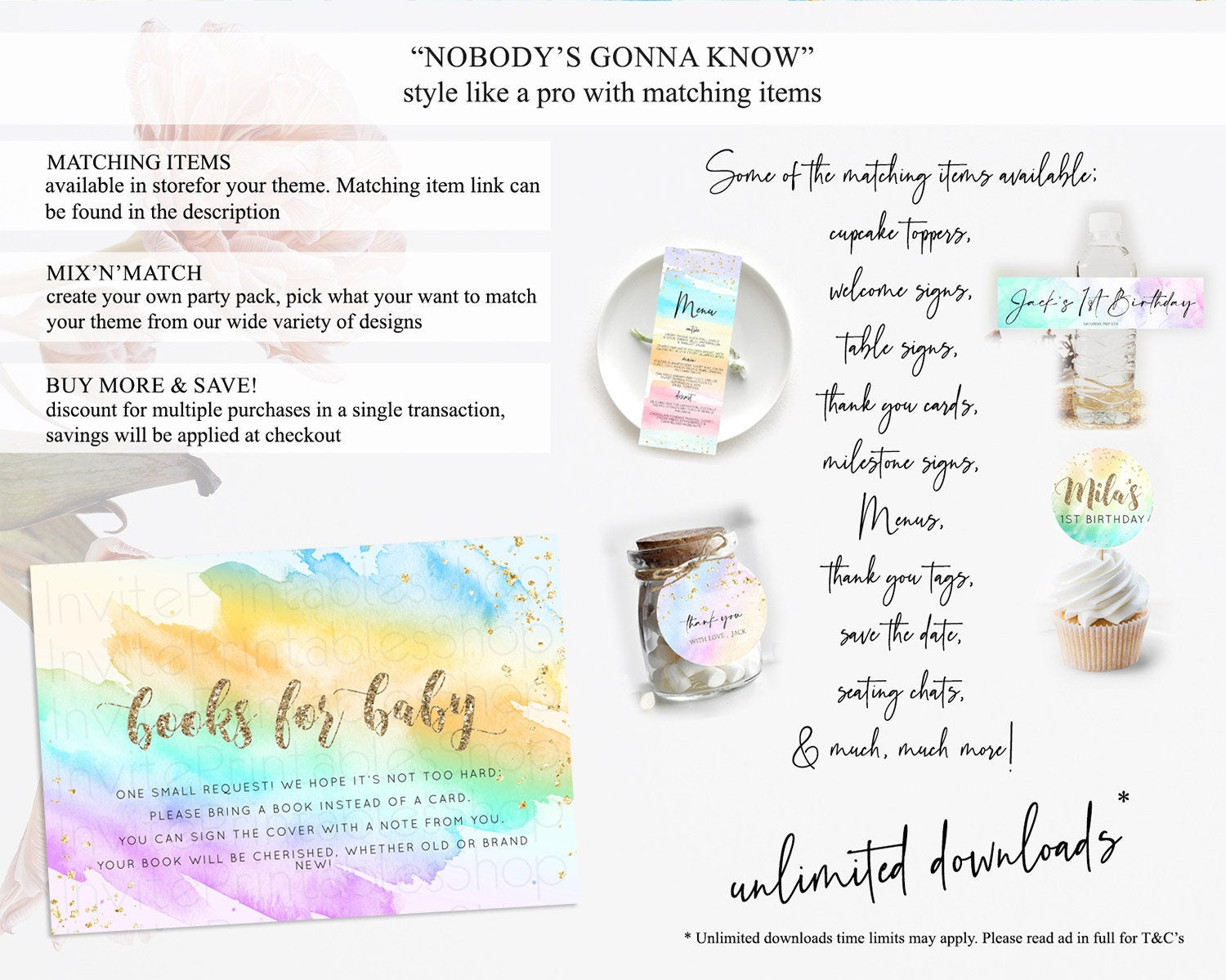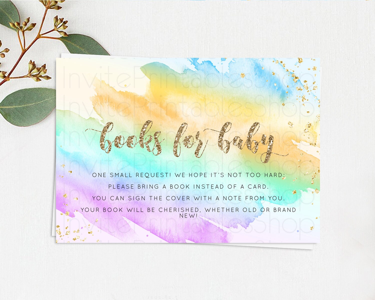 Pastel Books For Baby Card Pastel Rainbow Book Insert Colorful Ombre Watercolor Book Card Confetti Glitter Baby Book Poem Request D10426