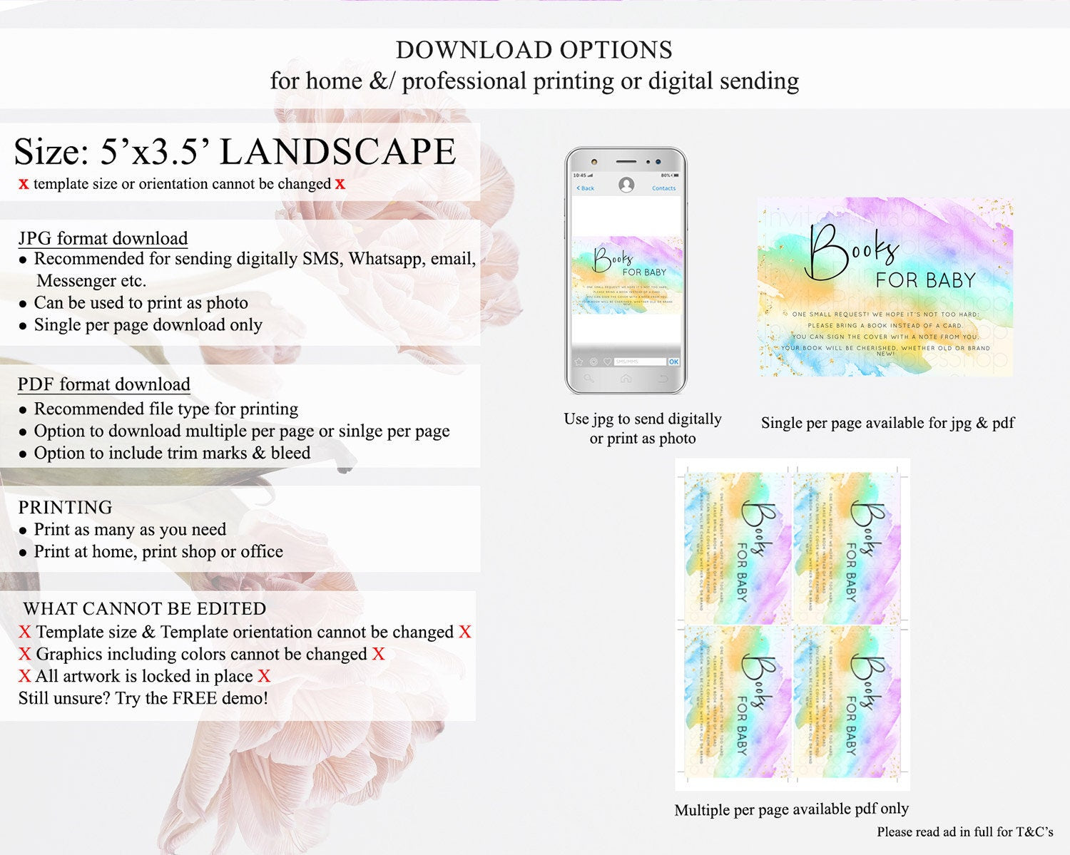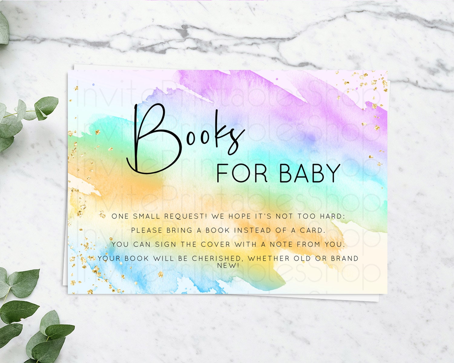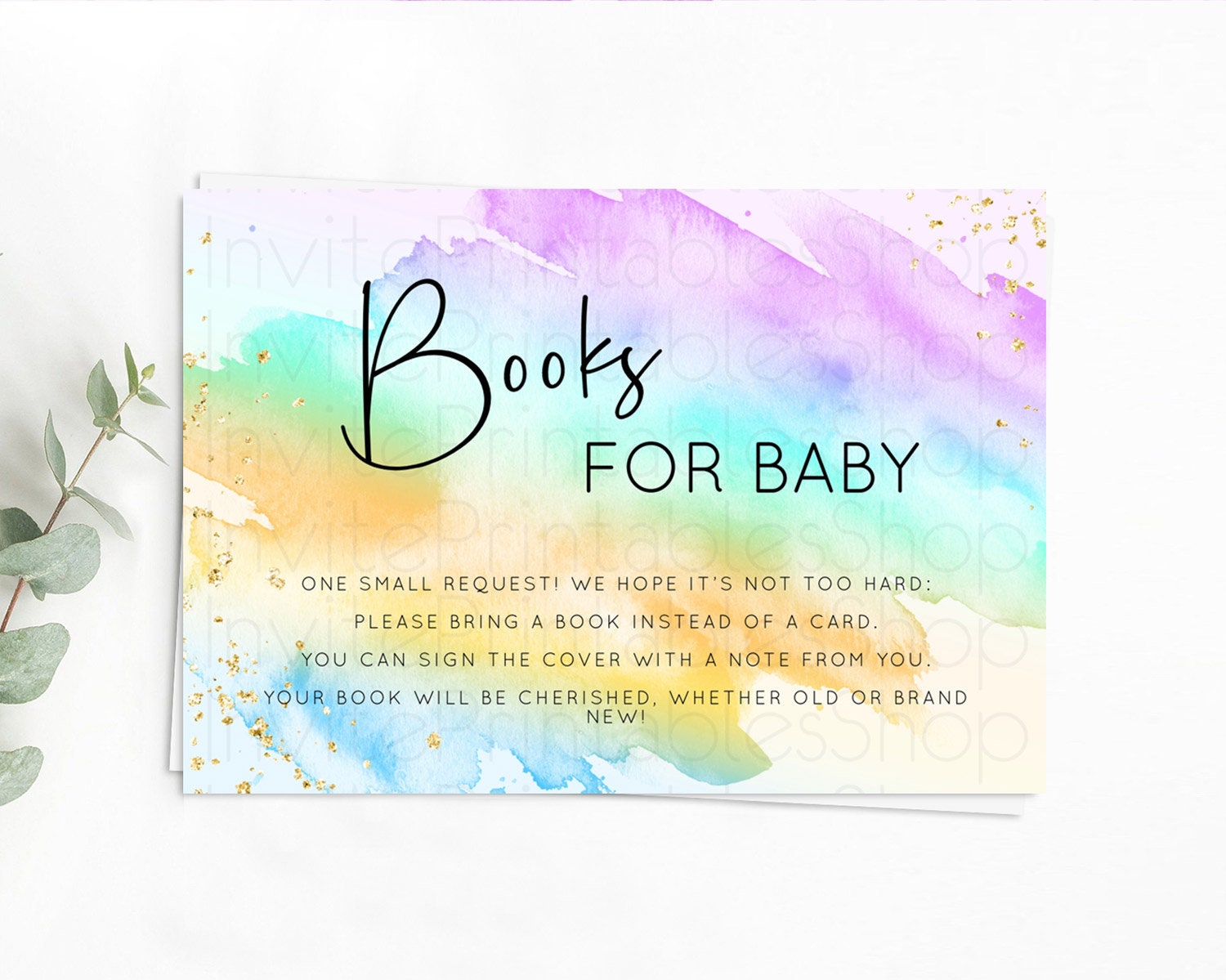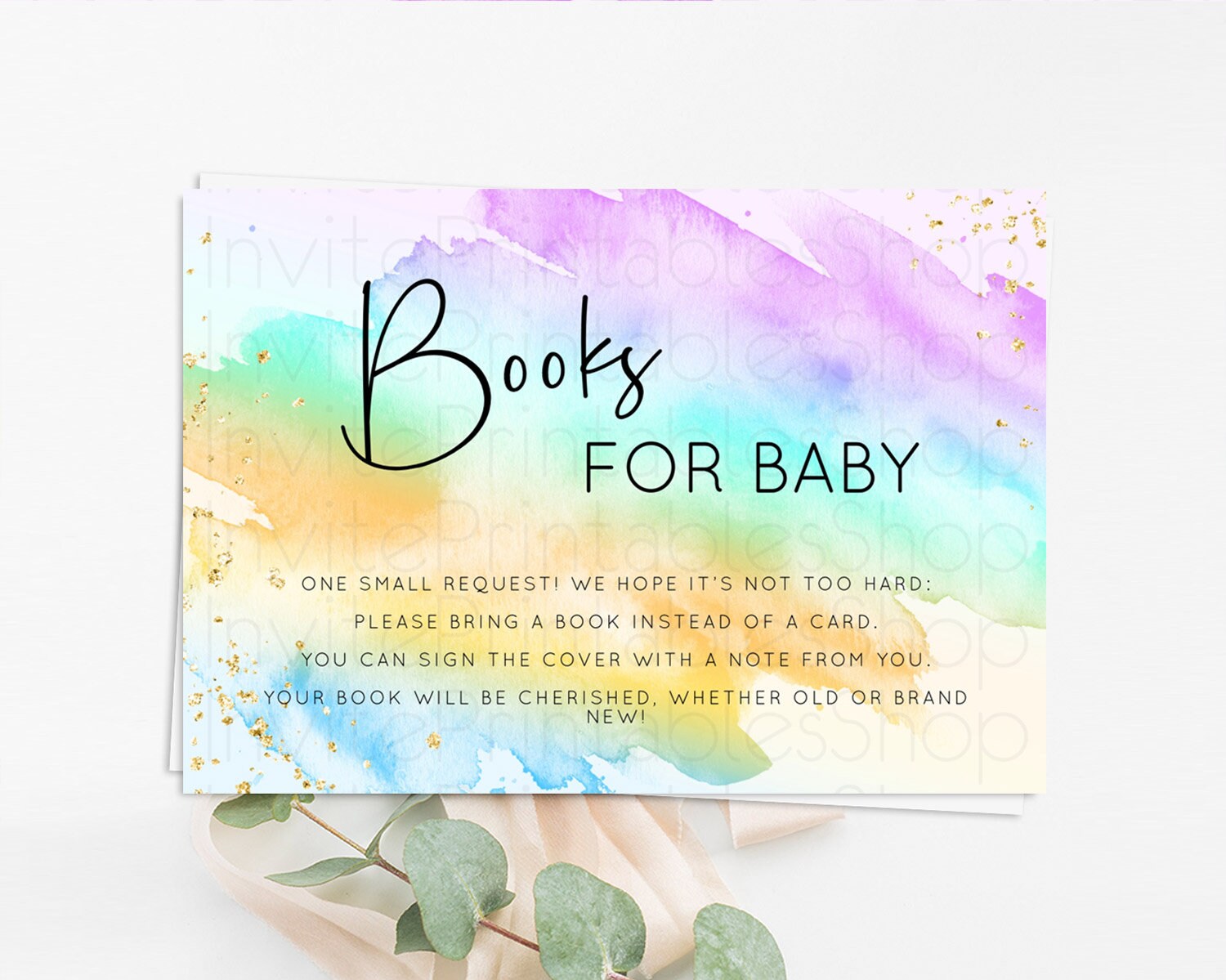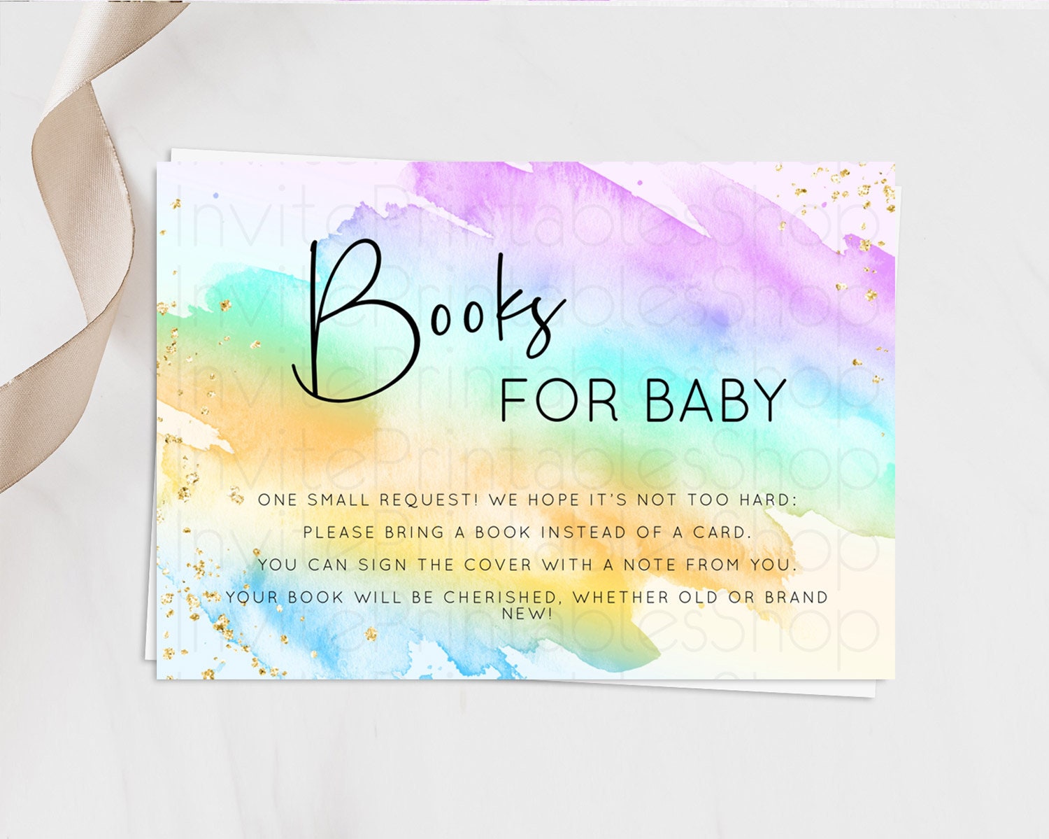 Pastel Books For Baby Card Pastel Rainbow Book Insert Colorful Ombre Watercolor Book Card Confetti Glitter Baby Book Poem Request D10427
