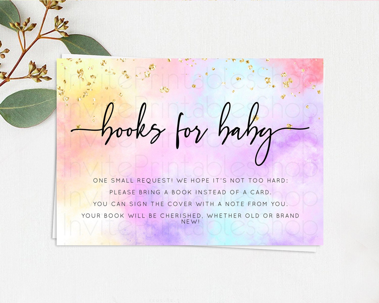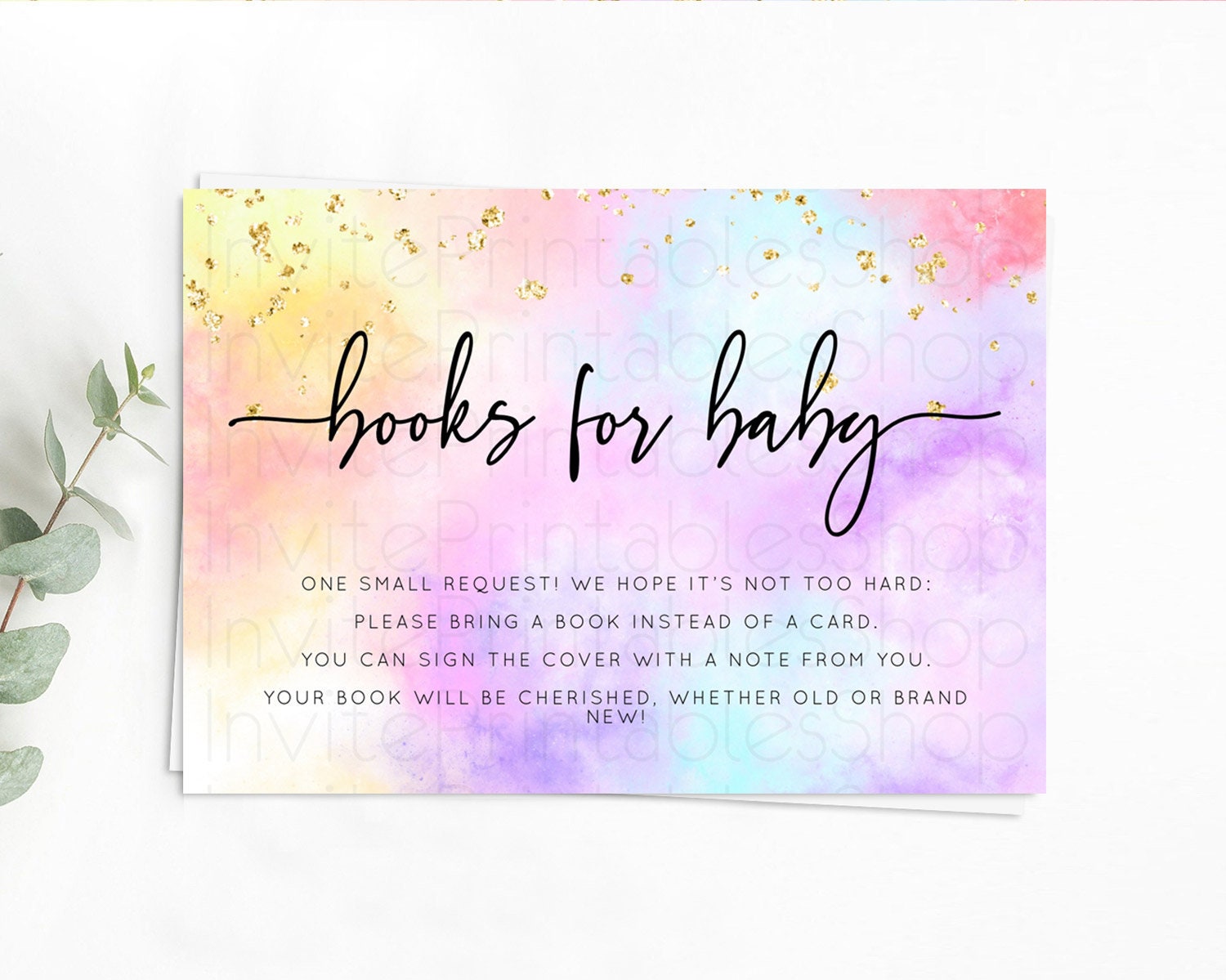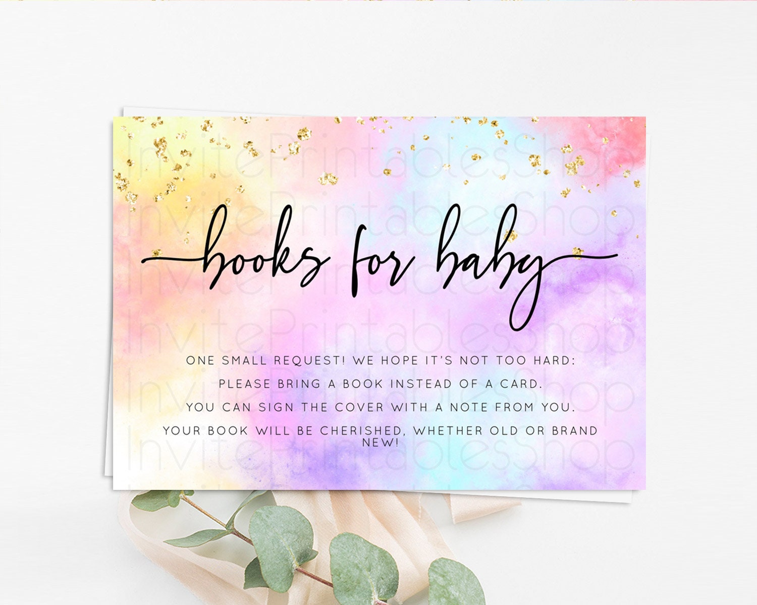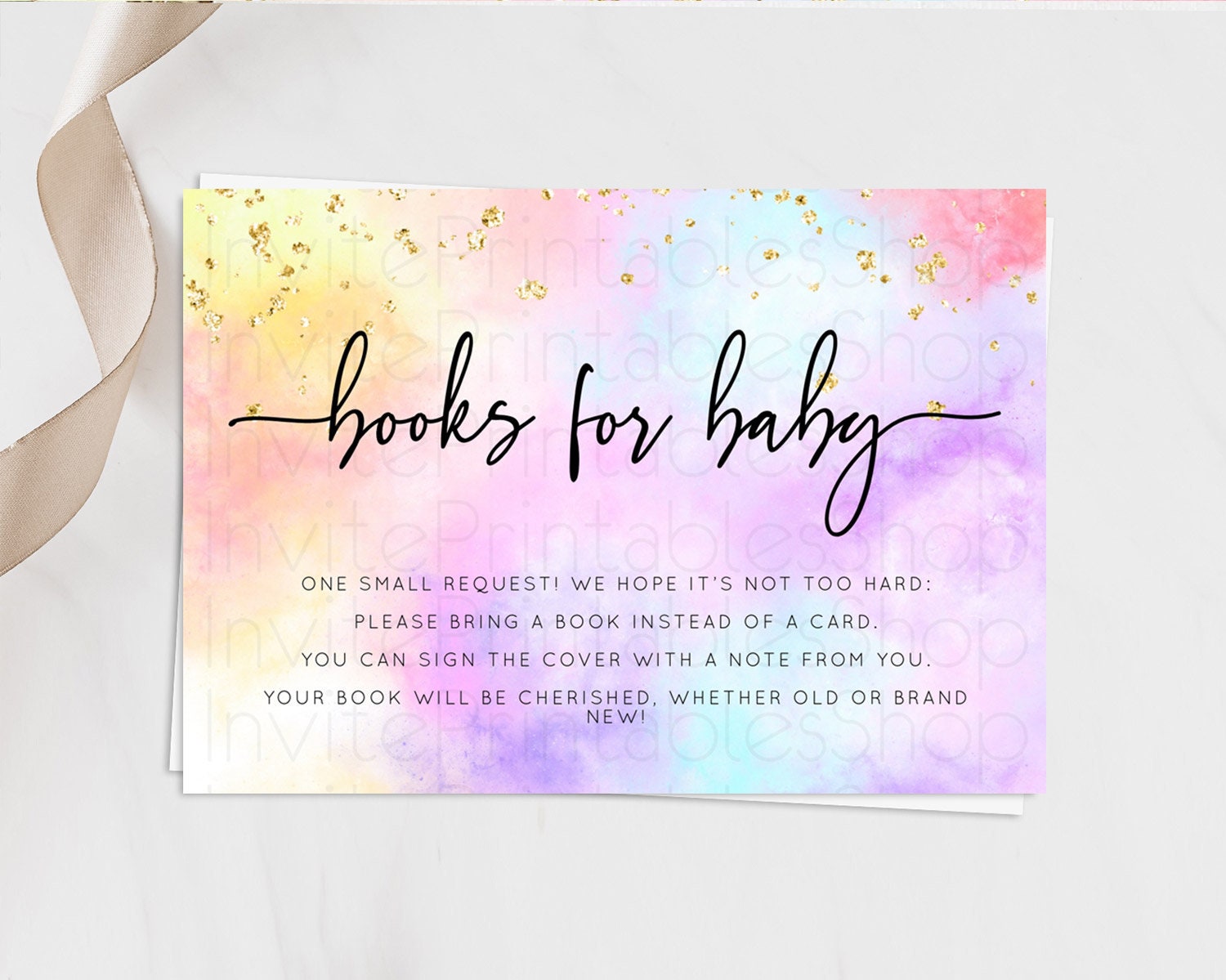 Pastel Books For Baby Card Pastel Rainbow Book Insert Colorful Ombre Watercolor Book Card Confetti Glitter Baby Book Poem Request D10437