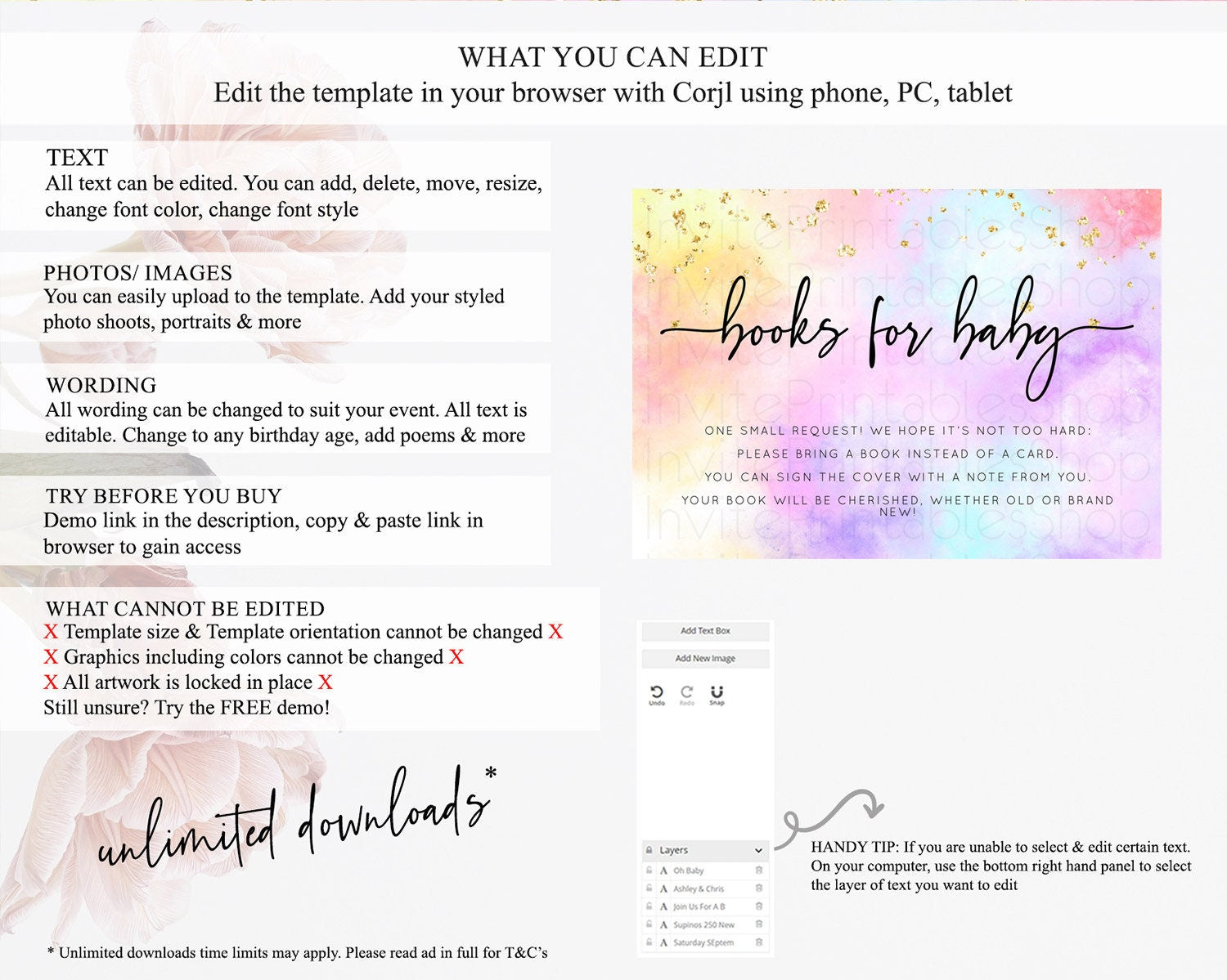 • After purchase, Corjl emails your editing link. Allow up to 15 minutes for delivery.