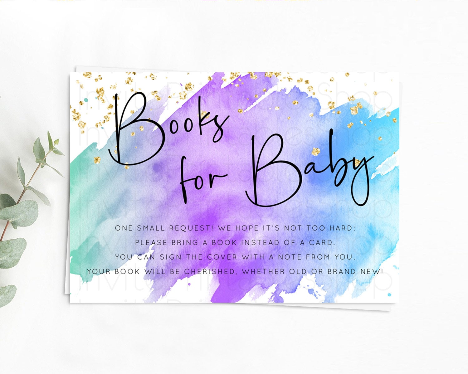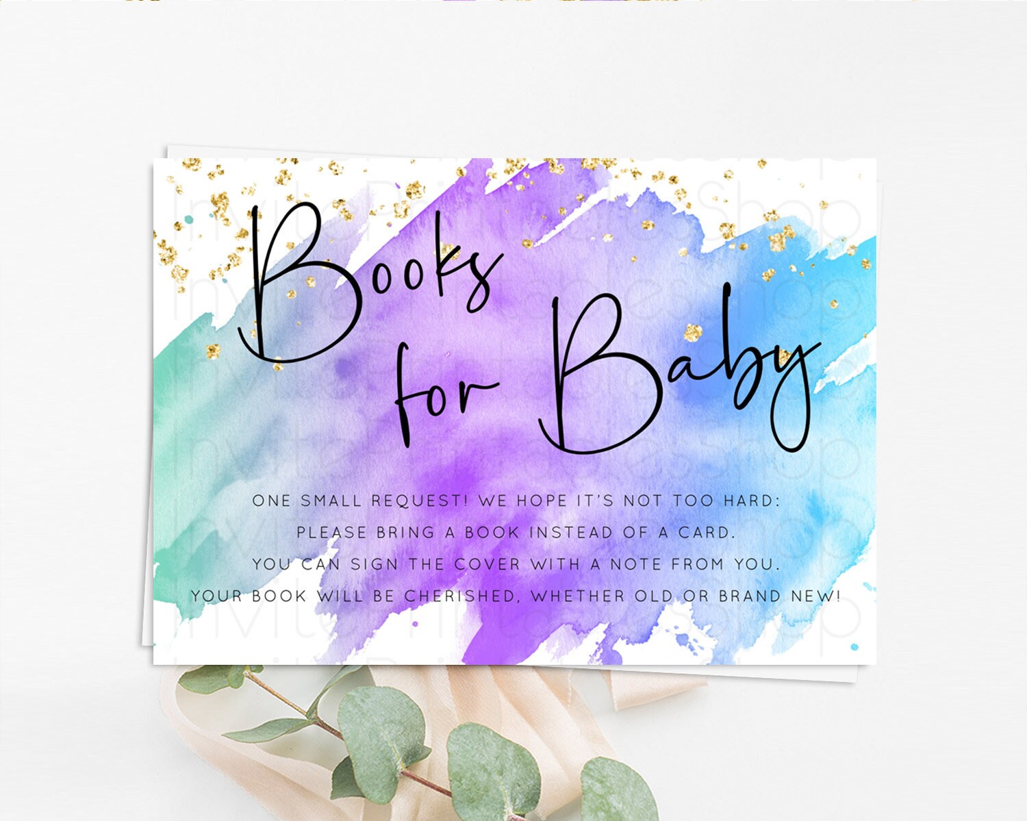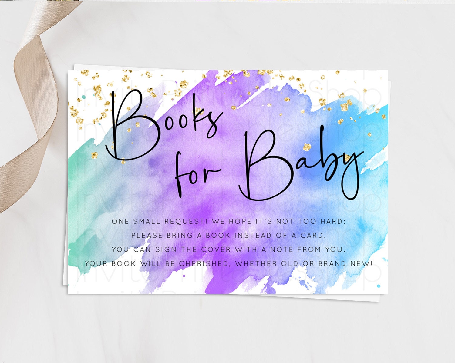 Pastel Books For Baby Card Pastel Rainbow Book Insert Colorful Ombre Watercolor Book Card Confetti Glitter Baby Book Poem Request D10491