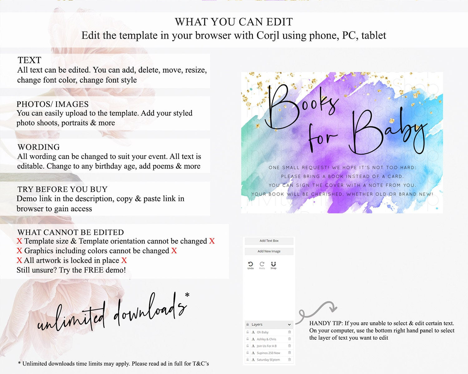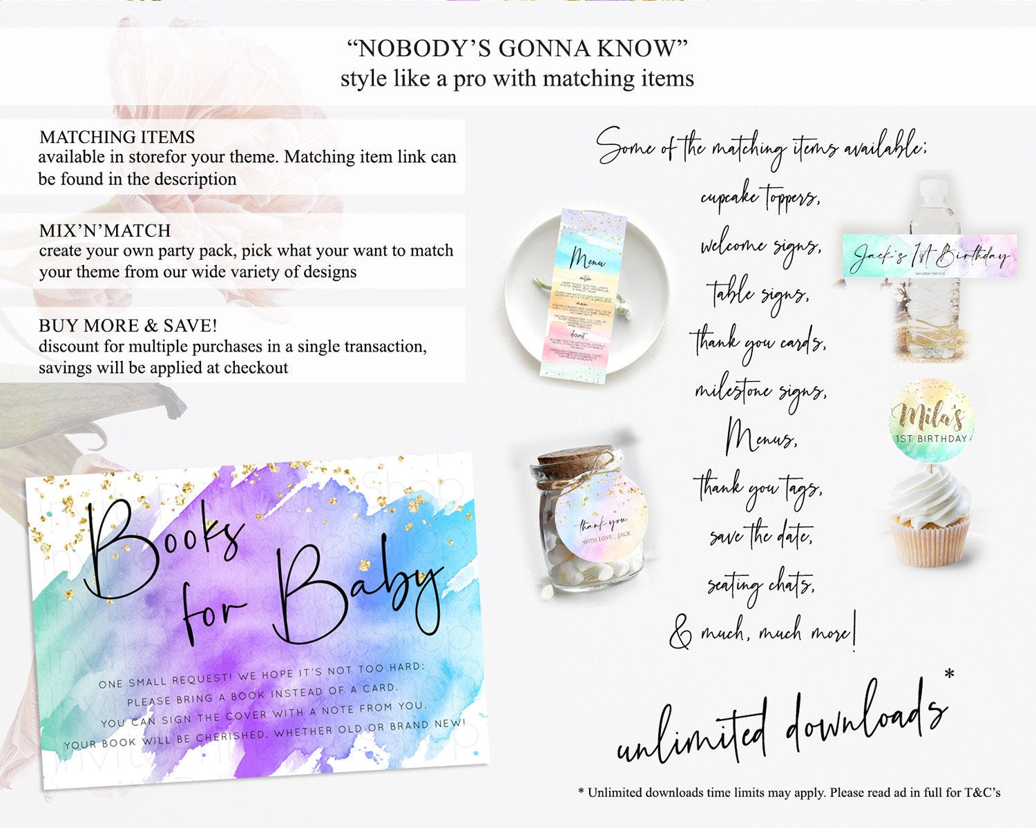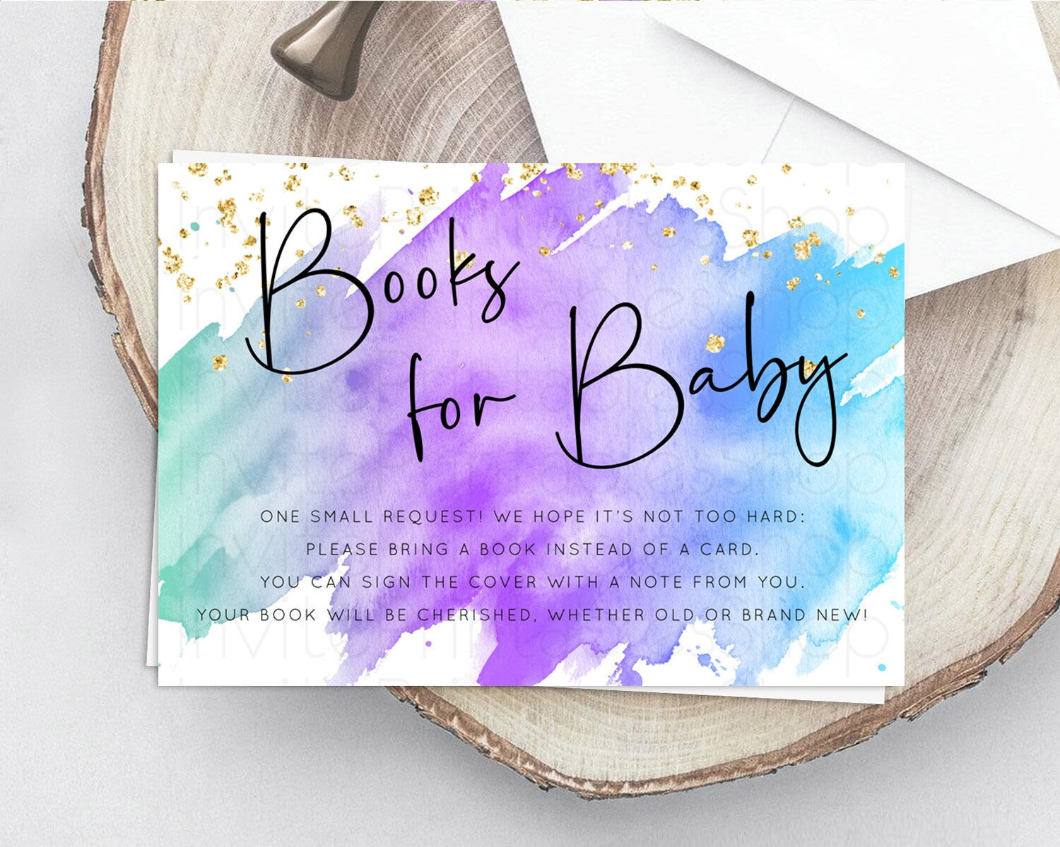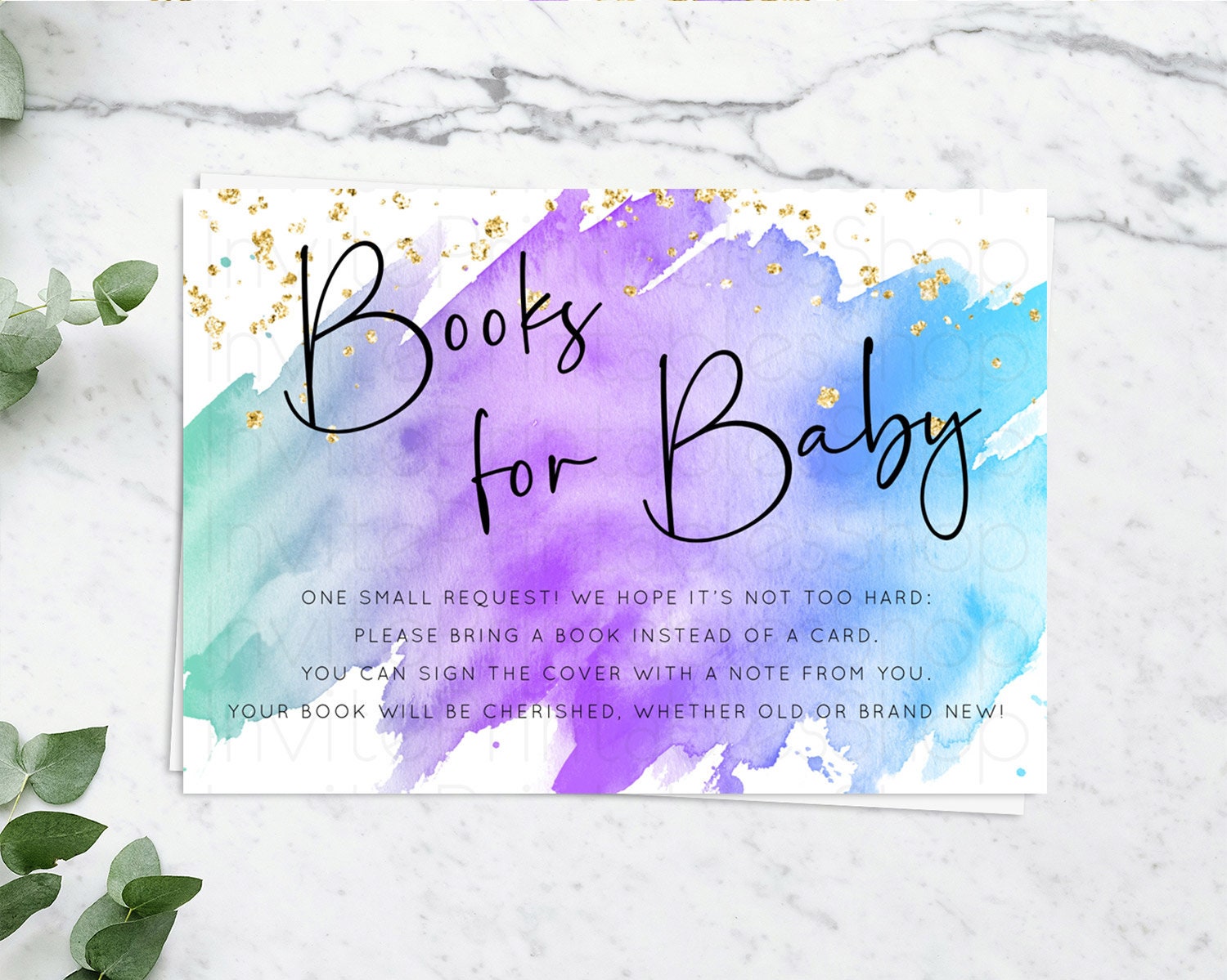 Pastel Books For Baby Card Pastel Rainbow Book Insert Colorful Ombre Watercolor Book Card Confetti Glitter Baby Book Poem Request D10491