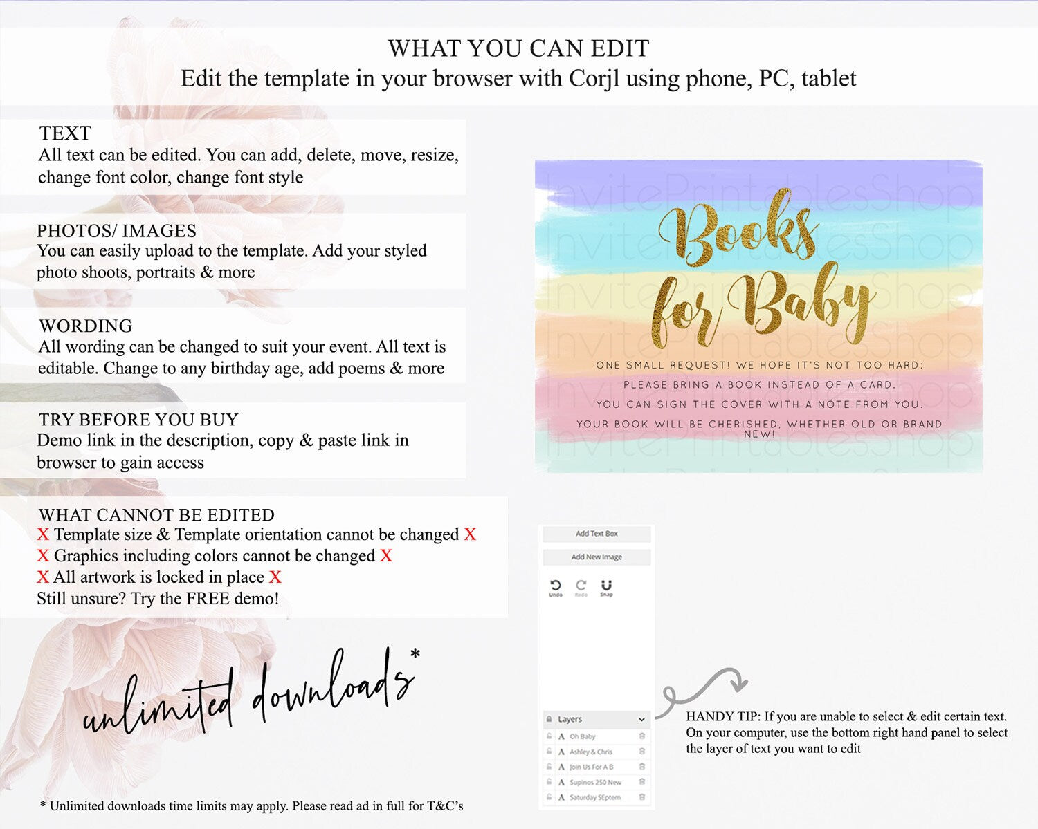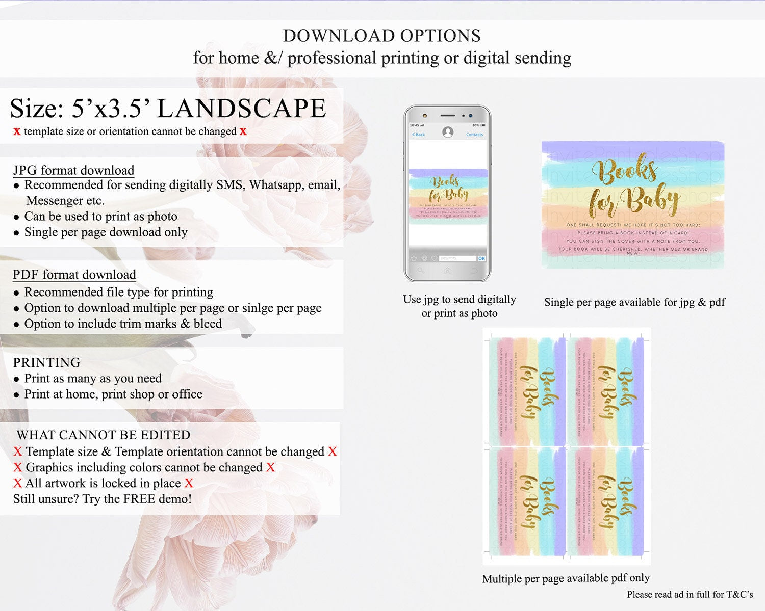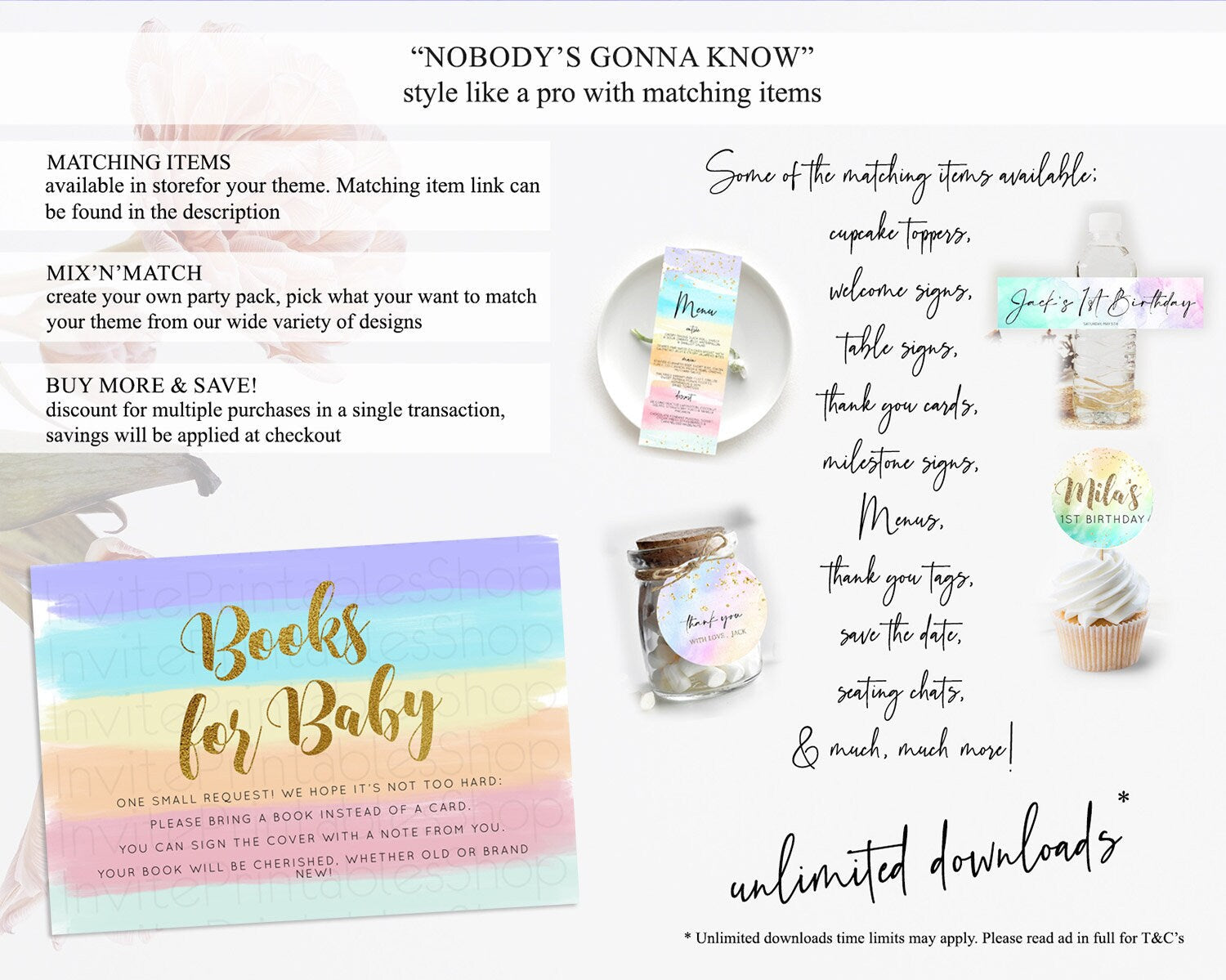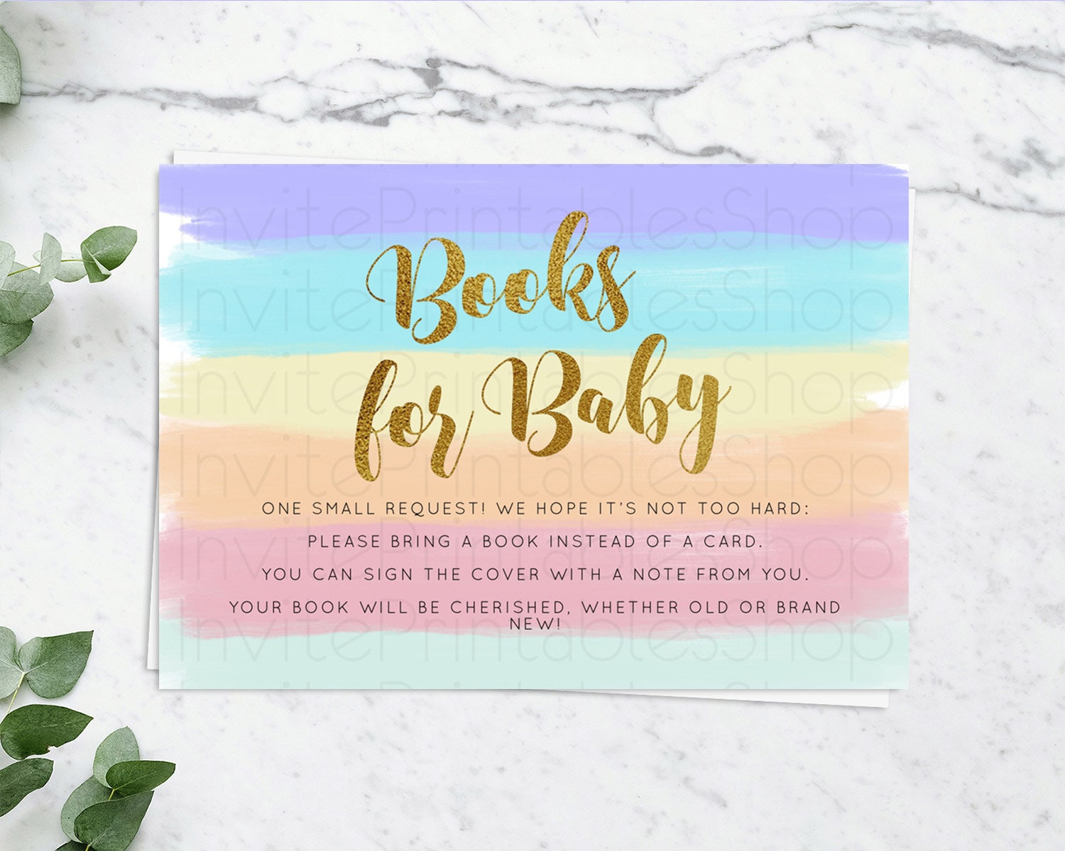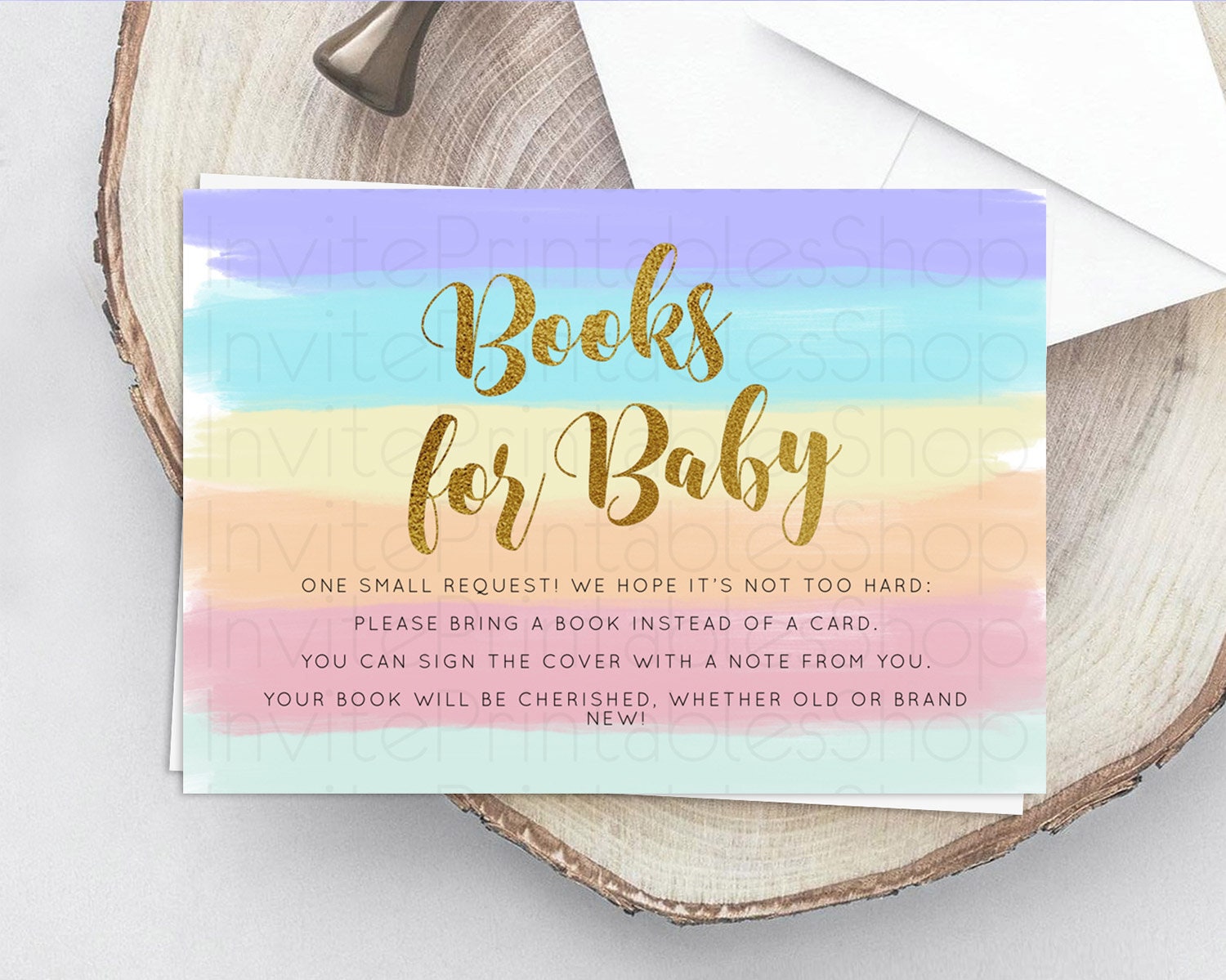 Pastel Books For Baby Card Pastel Rainbow Book Insert Colorful Ombre Watercolor Book Card Confetti Glitter Baby Book Poem Request D10510