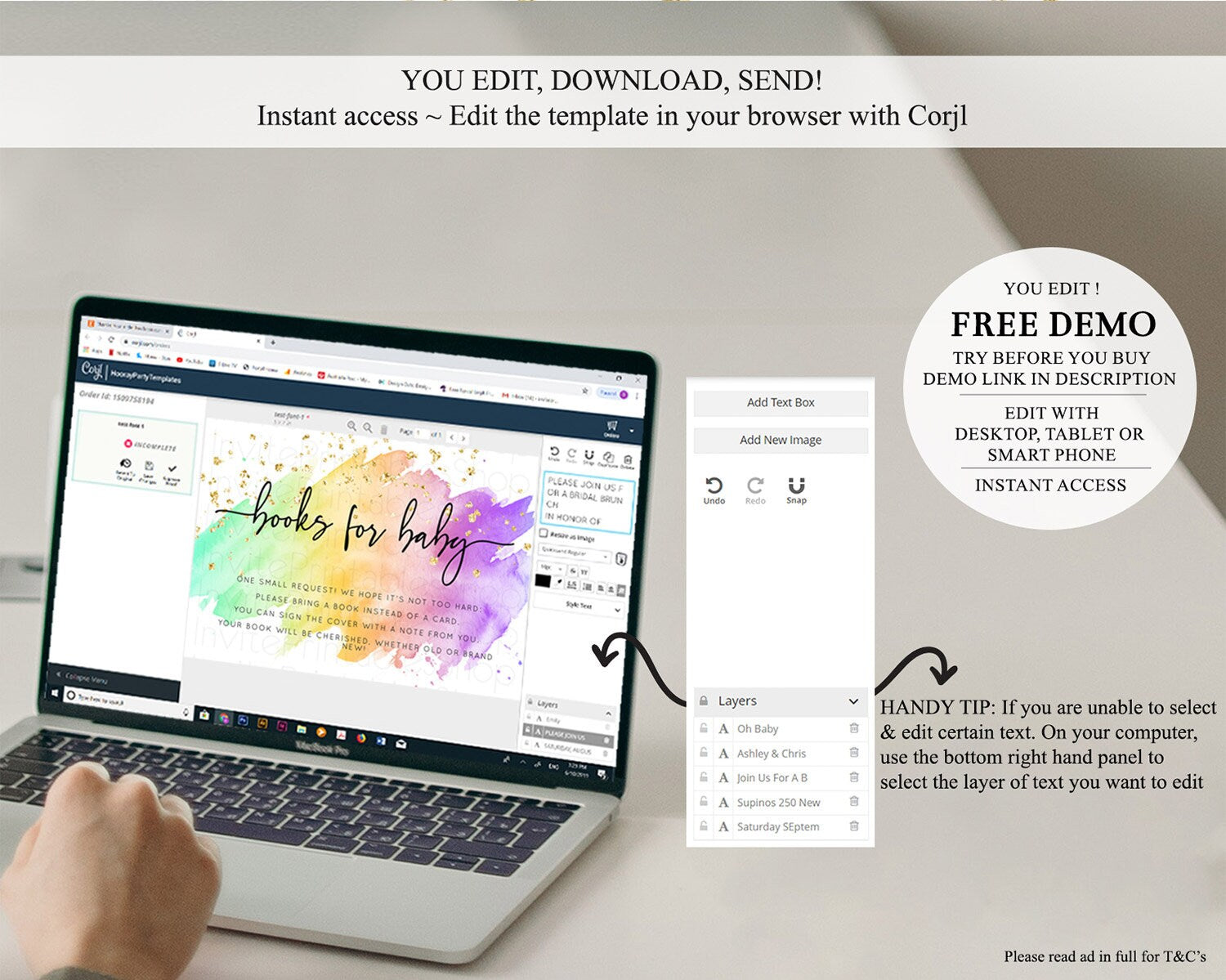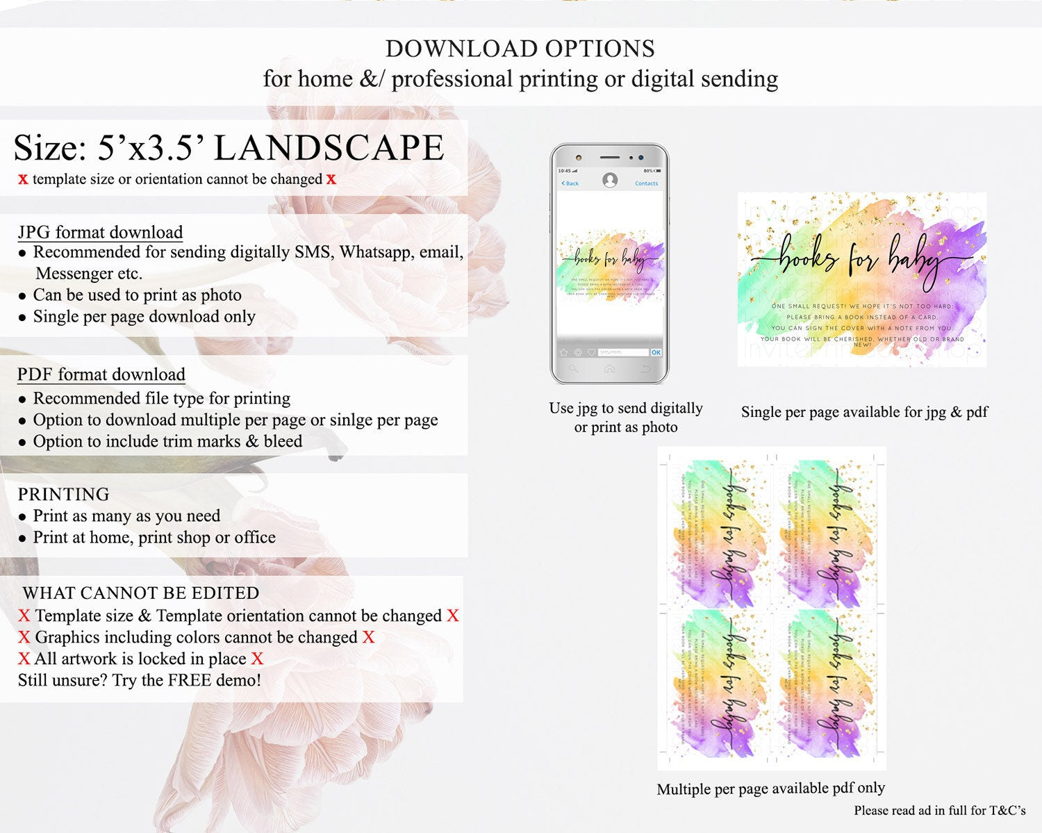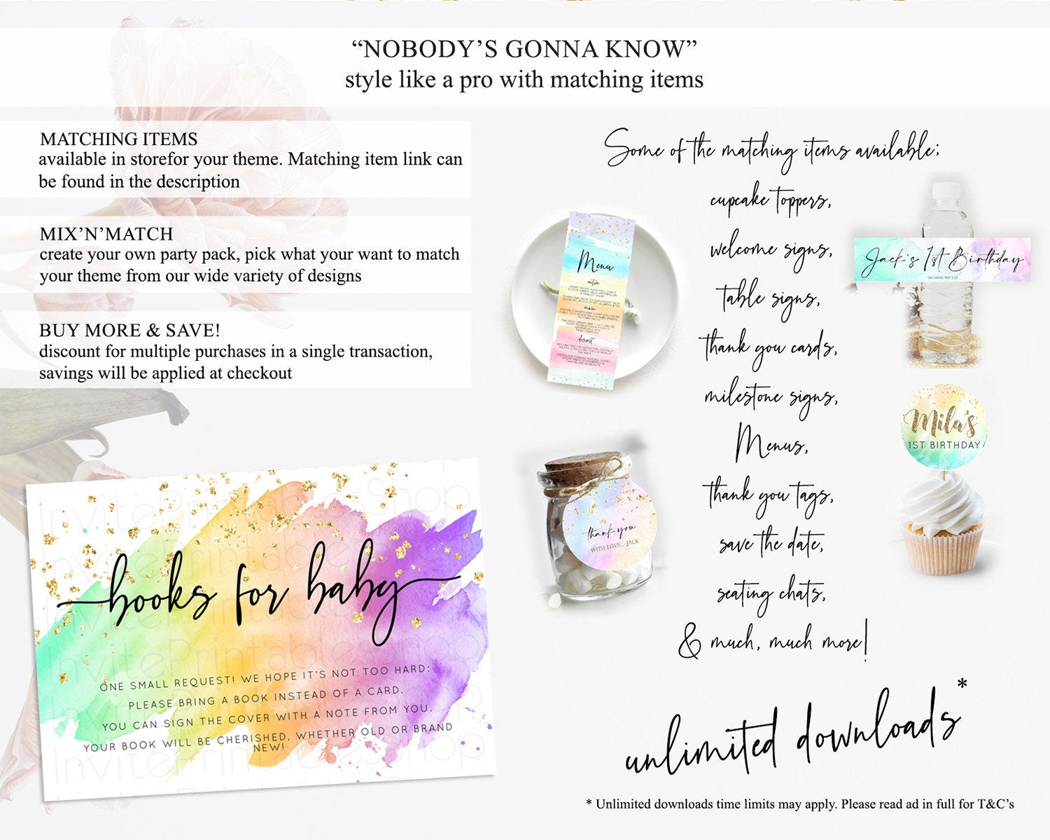 Pastel Books For Baby Card Pastel Rainbow Book Insert Colorful Ombre Watercolor Book Card Confetti Glitter Baby Book Poem Request D10518