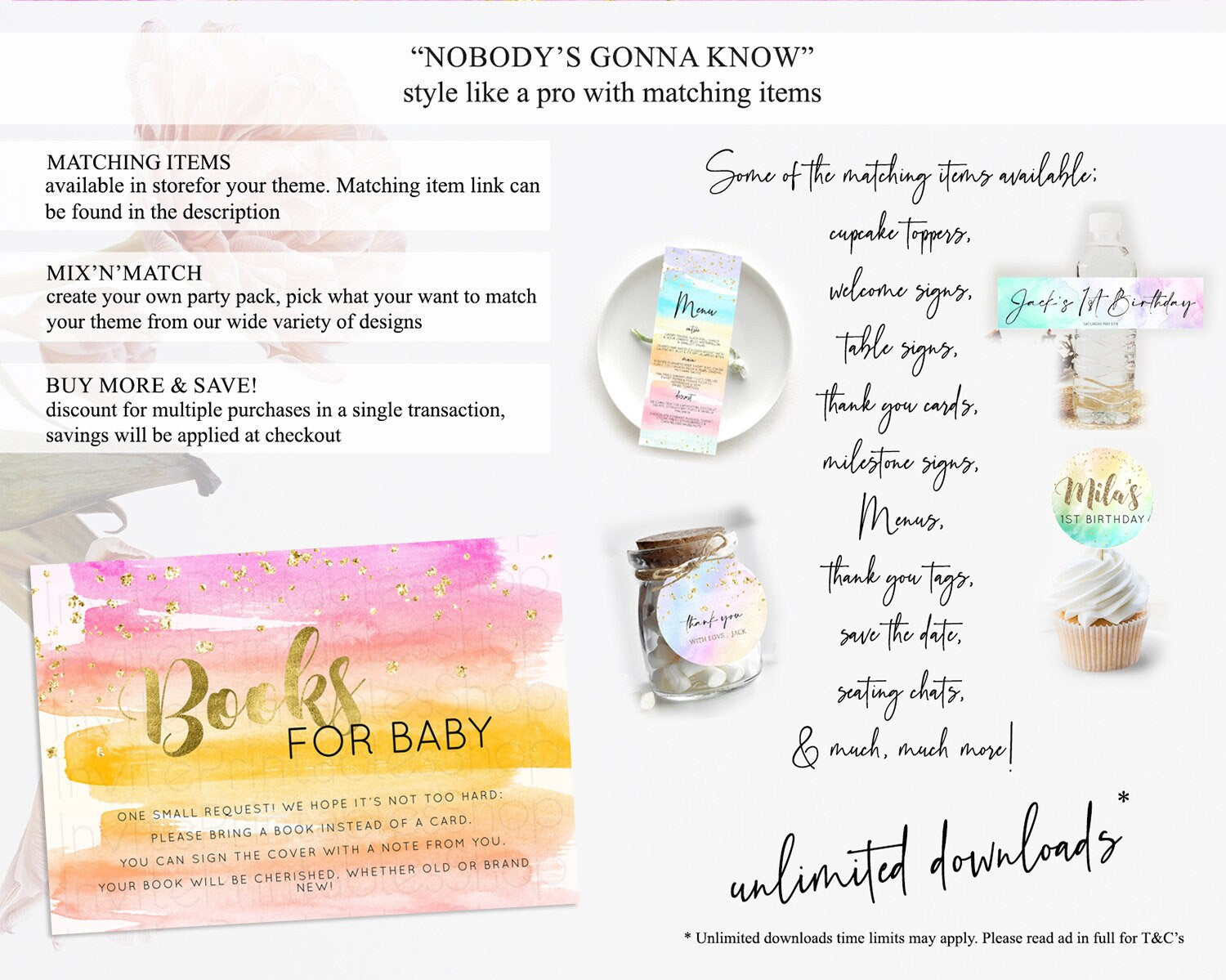 Pastel Books For Baby Card Pastel Rainbow Book Insert Colorful Ombre Watercolor Book Card Confetti Glitter Baby Book Poem Request D10520