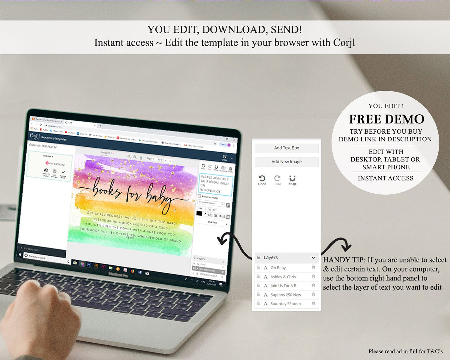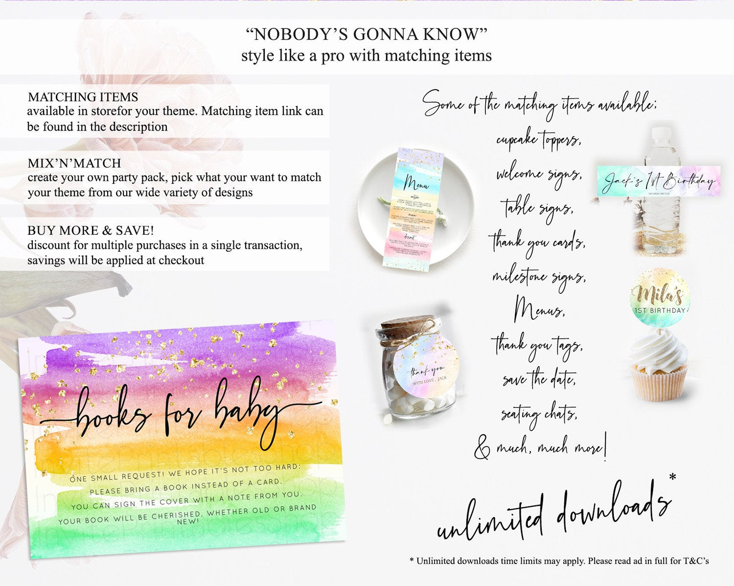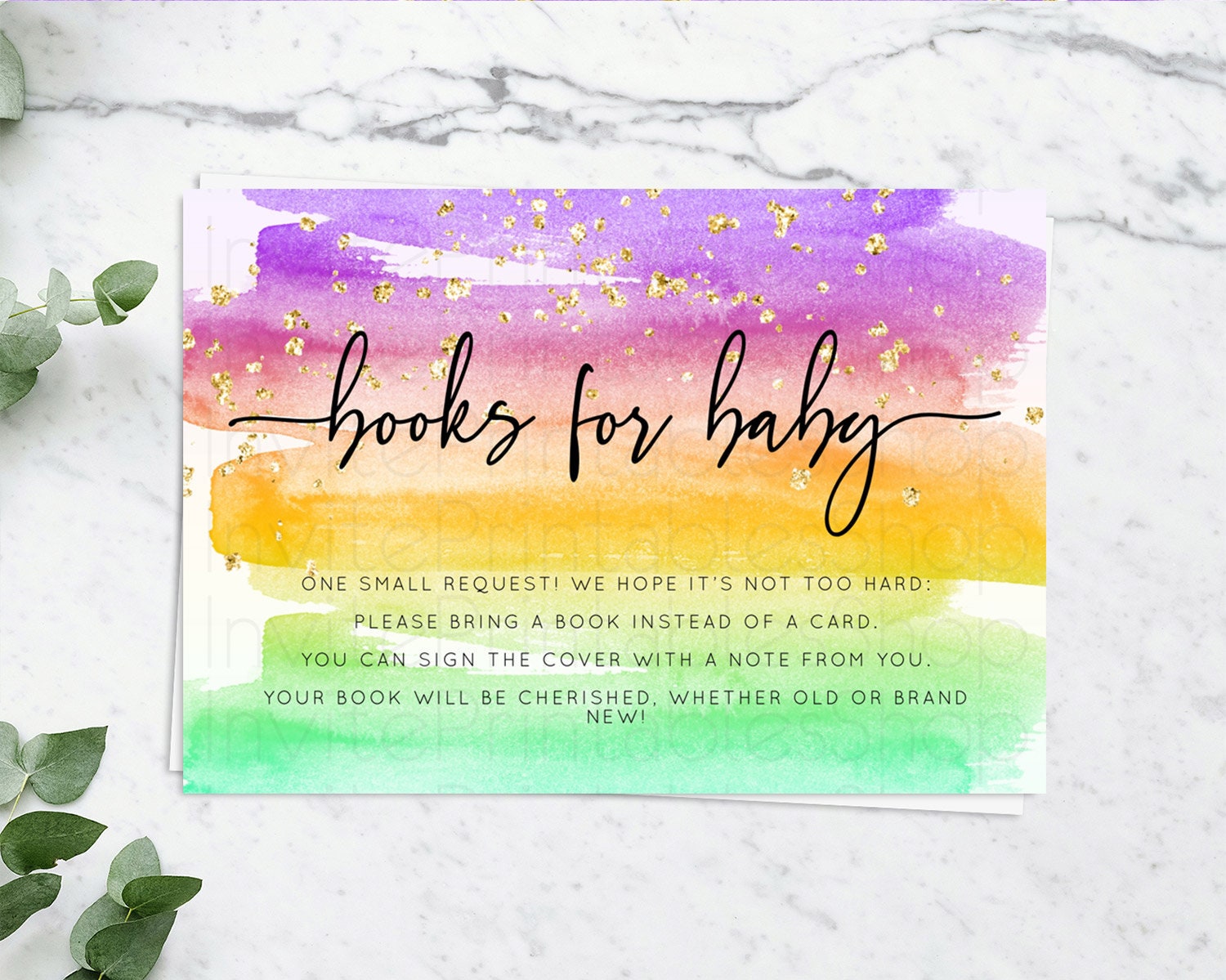 Pastel Books For Baby Card Pastel Rainbow Book Insert Colorful Ombre Watercolor Book Card Confetti Glitter Baby Book Poem Request D10524
