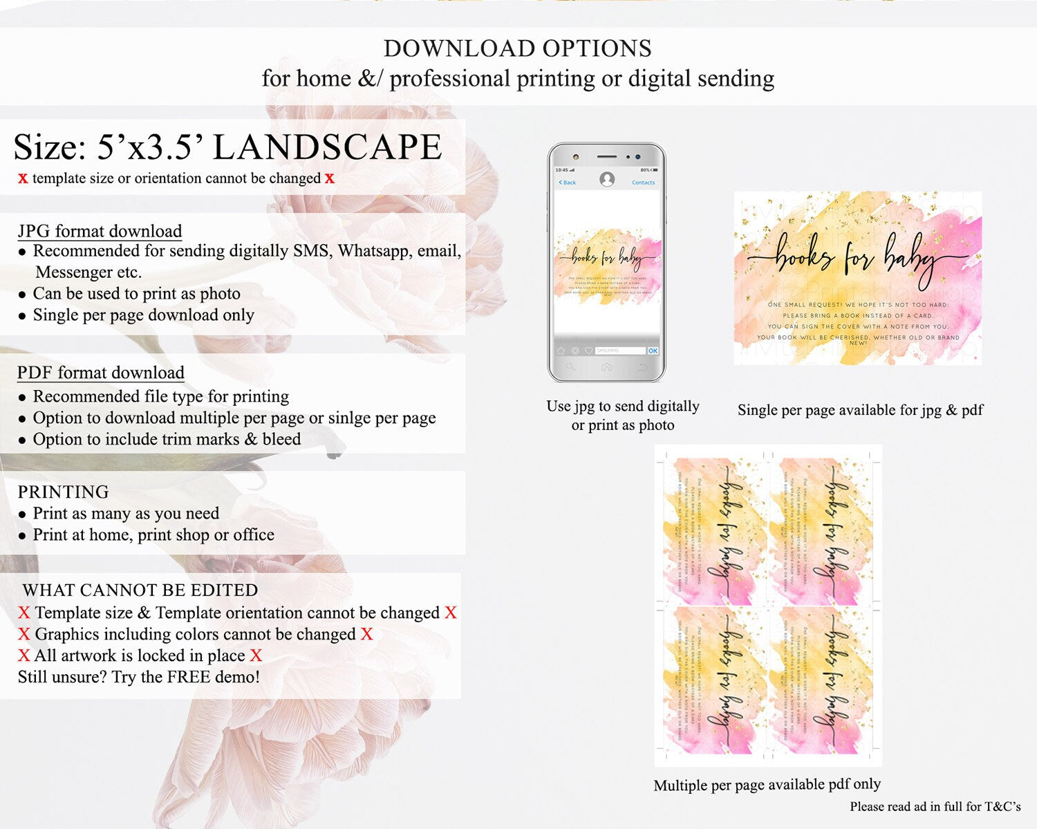 Pastel Books For Baby Card Pastel Rainbow Book Insert Colorful Ombre Watercolor Book Card Confetti Glitter Baby Book Poem Request D10527
