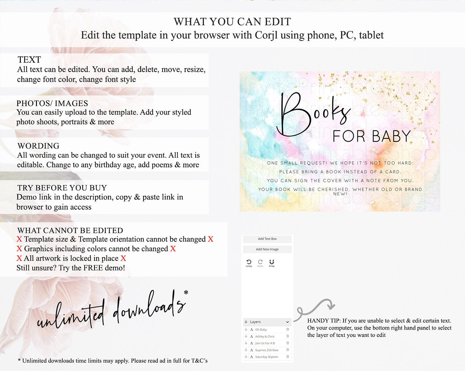 • After purchase, Corjl emails your editing link. Allow up to 15 minutes for delivery.