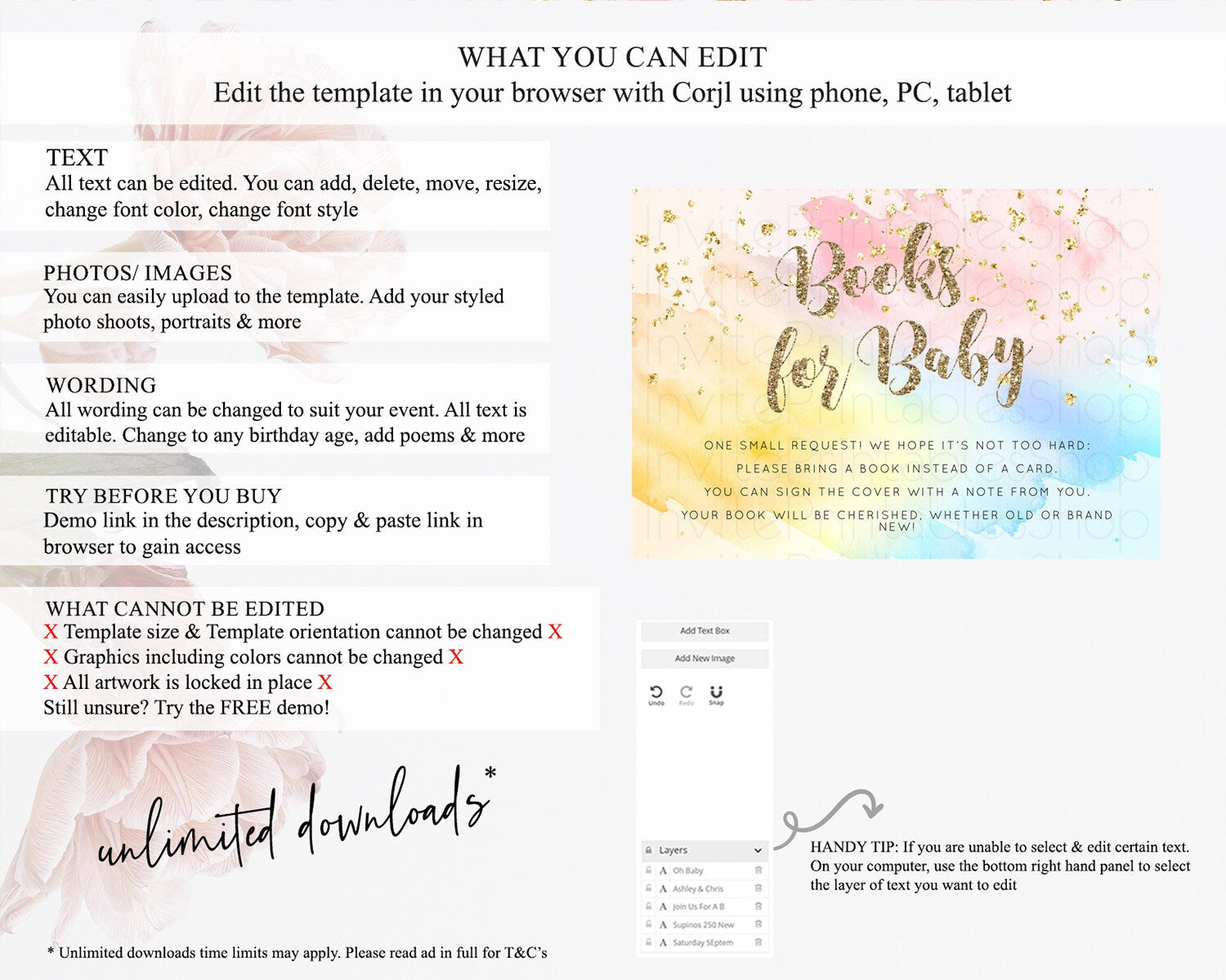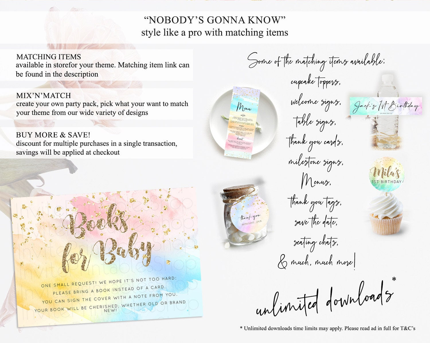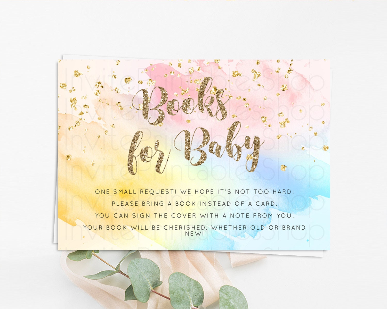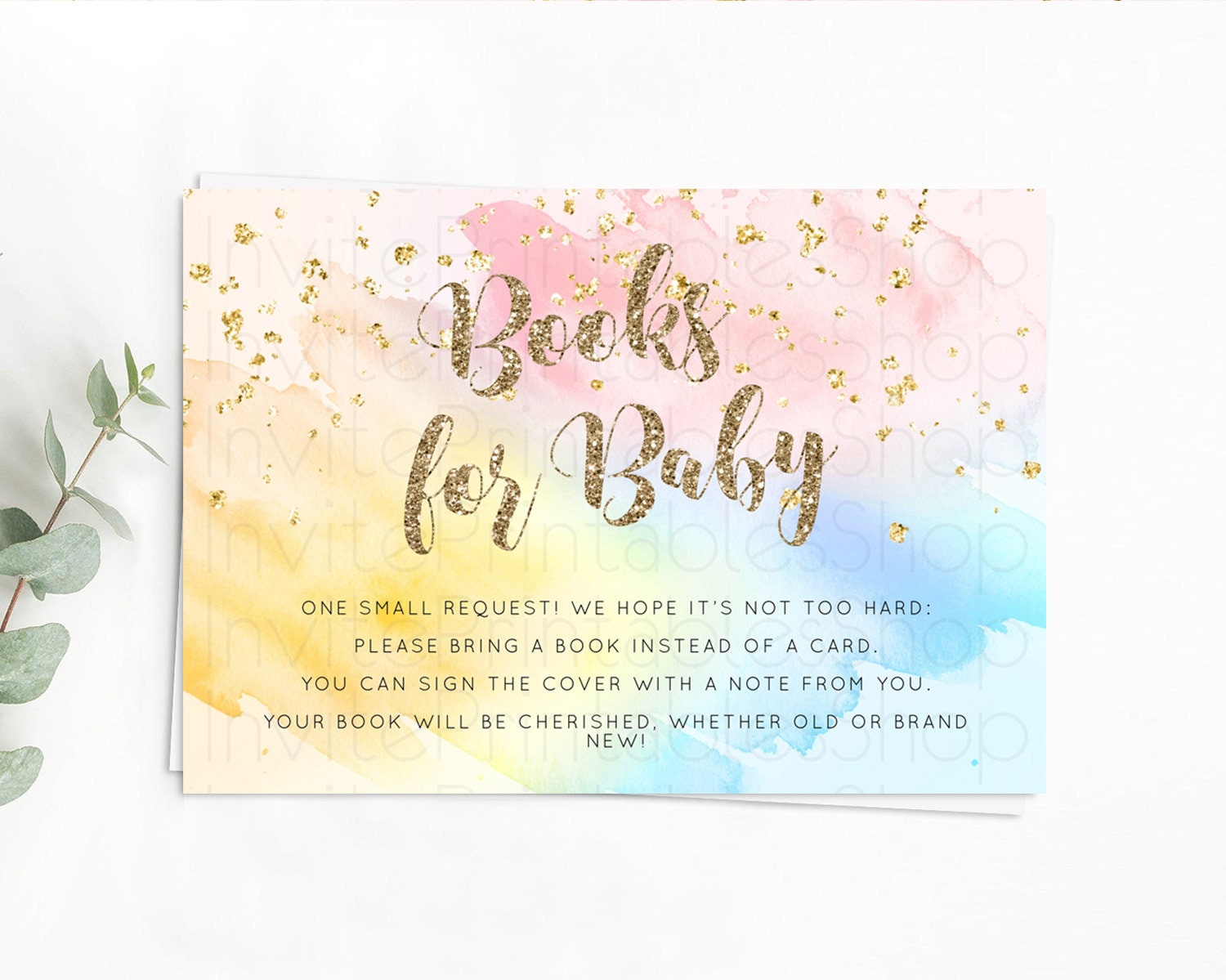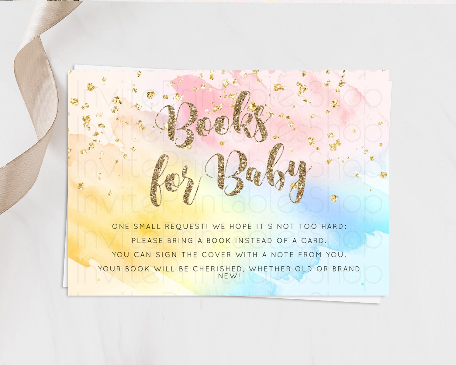 Pastel Books For Baby Card Pastel Rainbow Book Insert Colorful Ombre Watercolor Book Card Confetti Glitter Baby Book Poem Request D10556