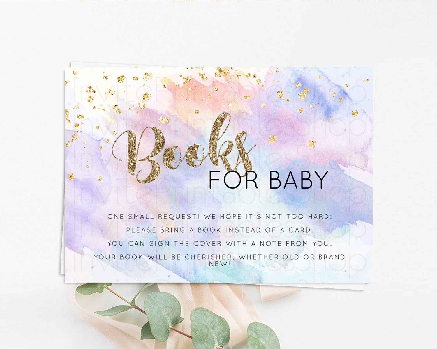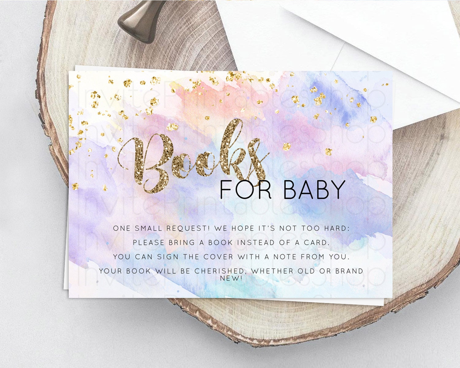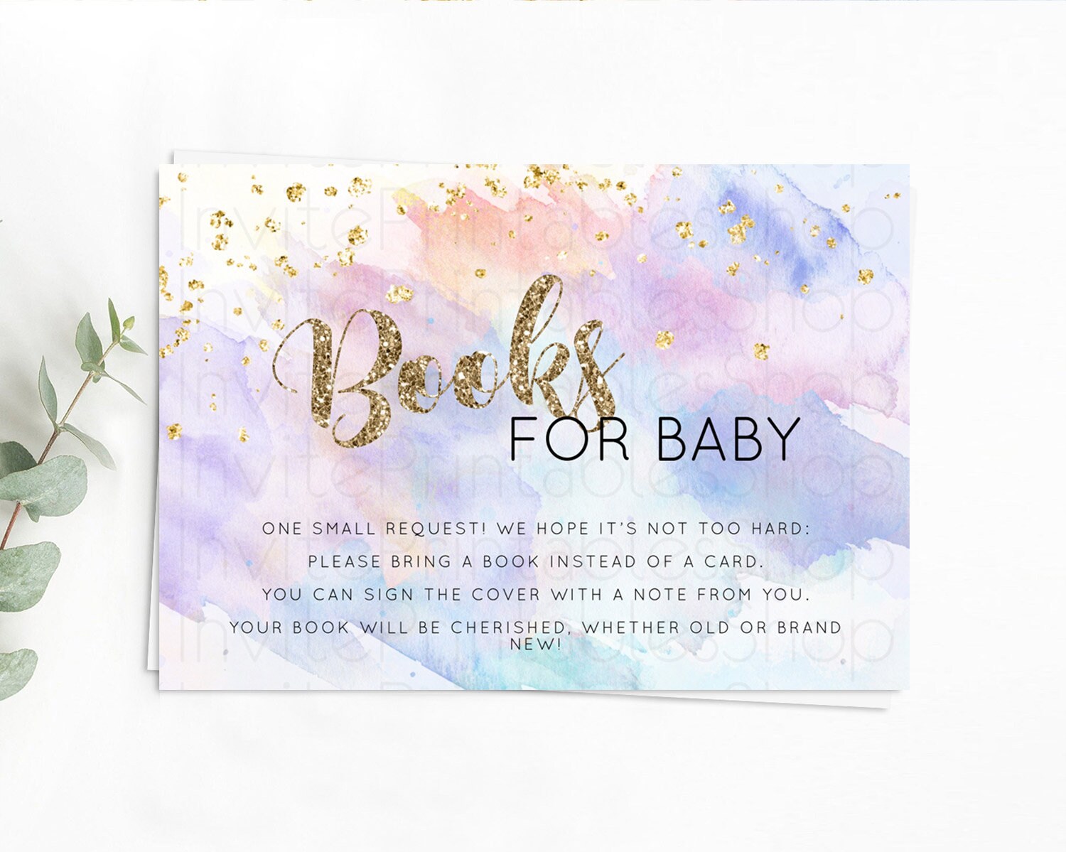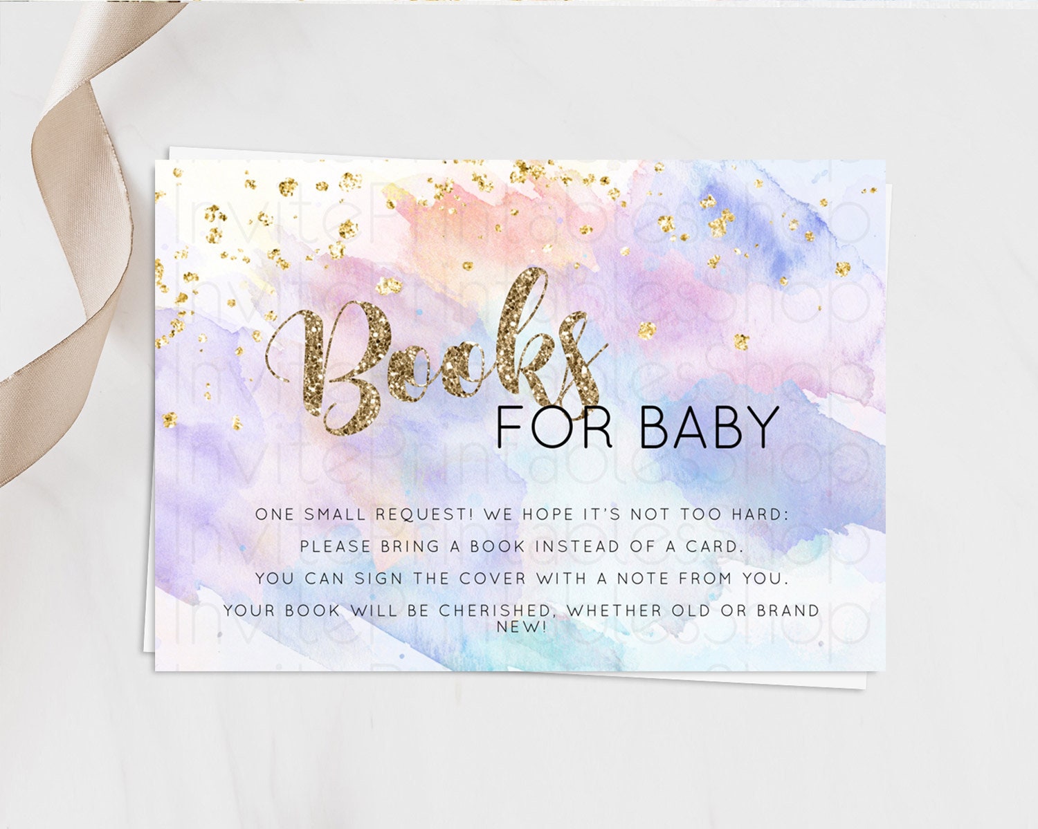Pastel Books For Baby Card Pastel Rainbow Book Insert Colorful Ombre Watercolor Book Card Confetti Glitter Baby Book Poem Request D10583