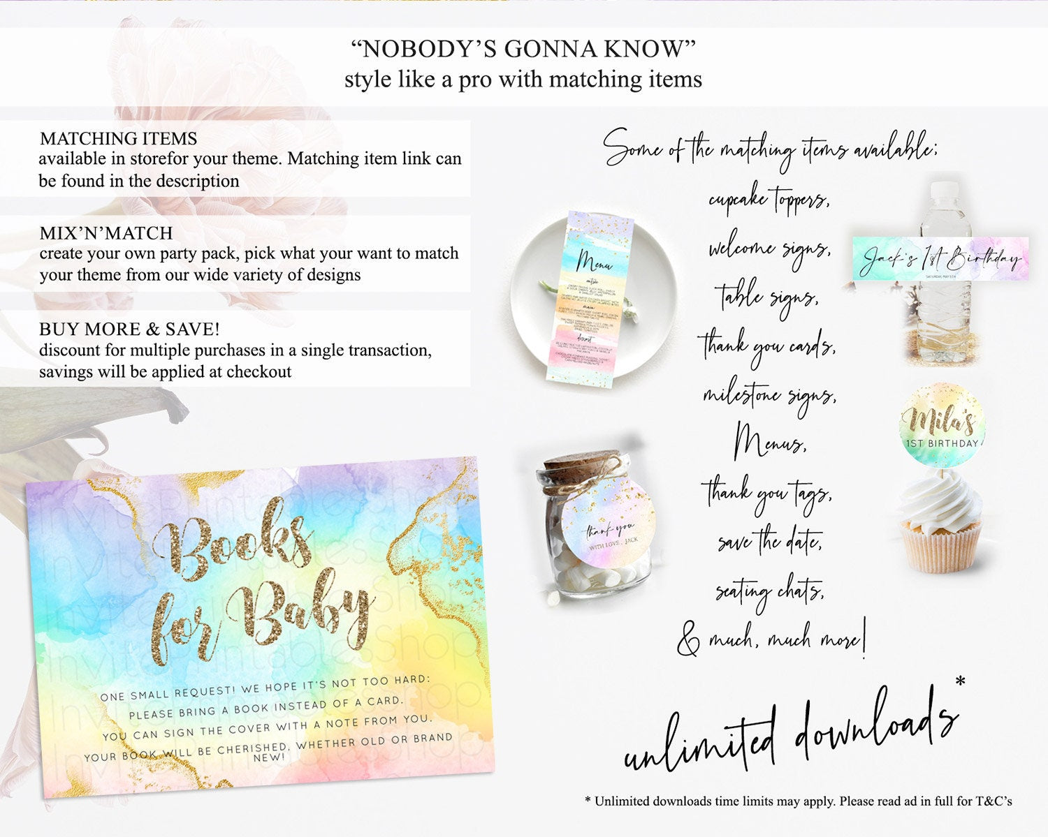 Pastel Books For Baby Card Pastel Rainbow Book Insert Colorful Ombre Watercolor Book Card Confetti Glitter Baby Book Poem Request D10589