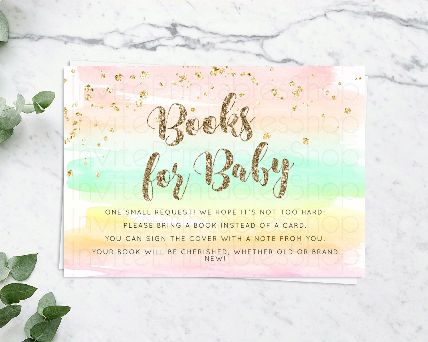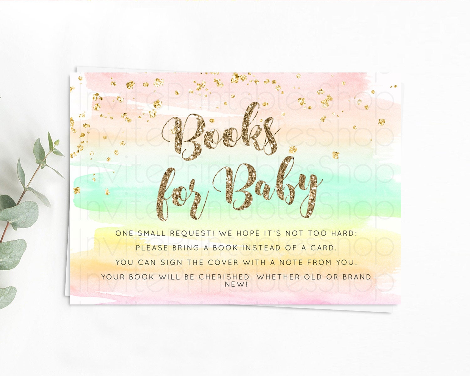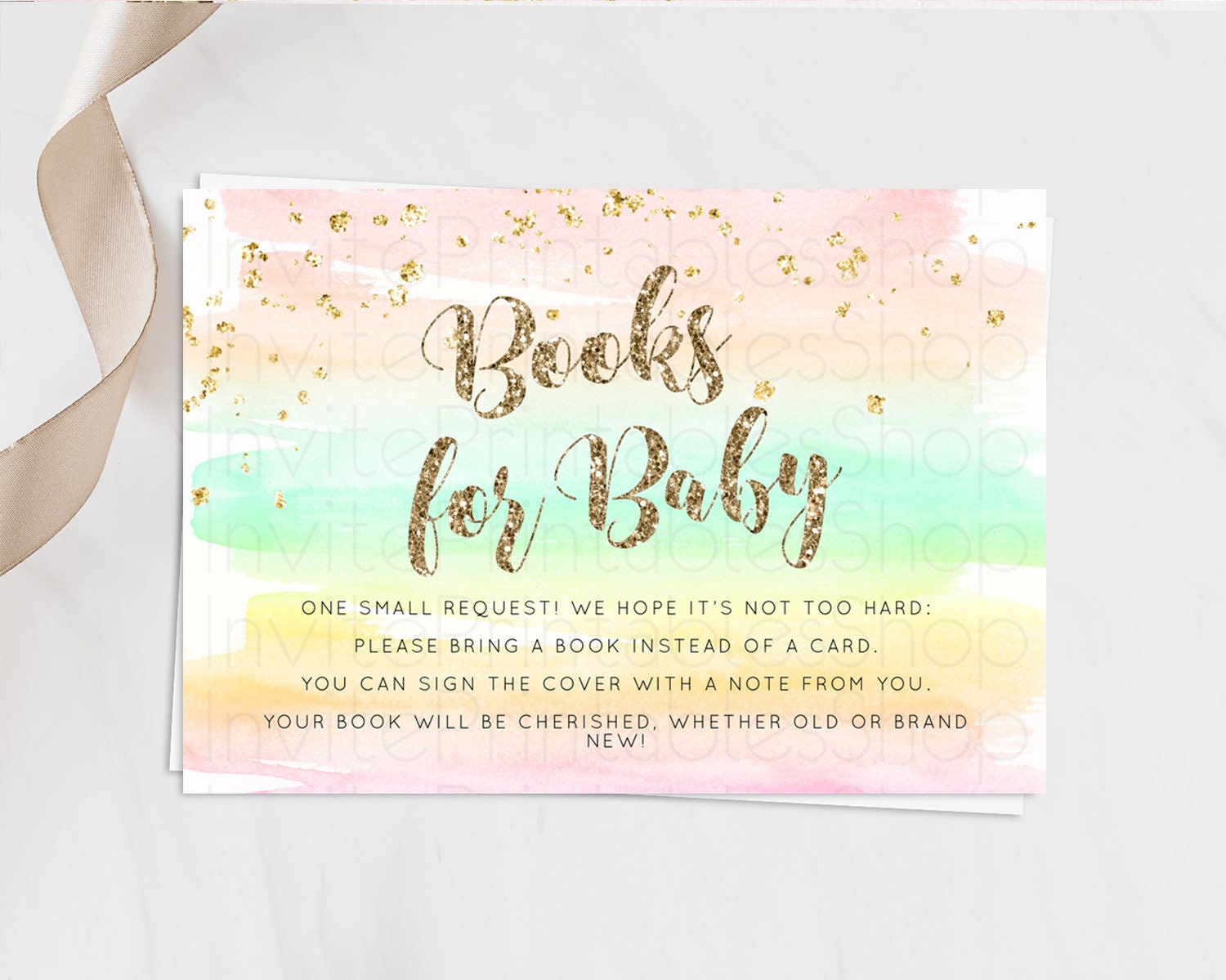 Pastel Books For Baby Card Pastel Rainbow Book Insert Colorful Ombre Watercolor Book Card Confetti Glitter Baby Book Poem Request D10592