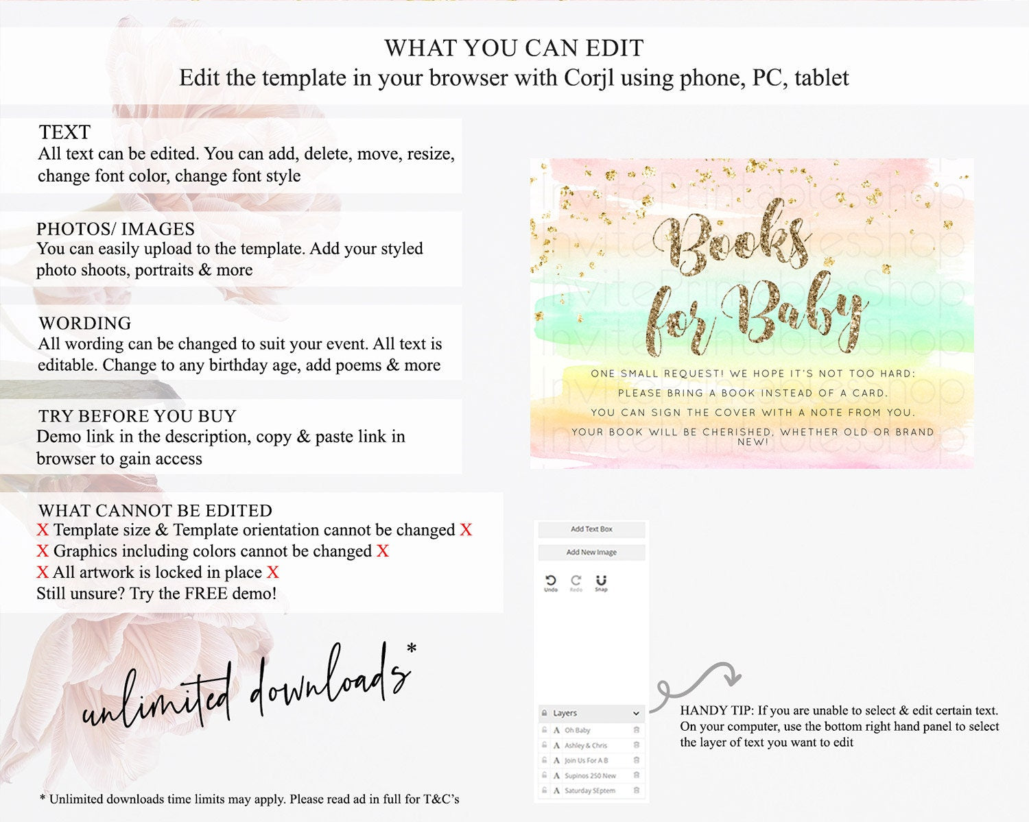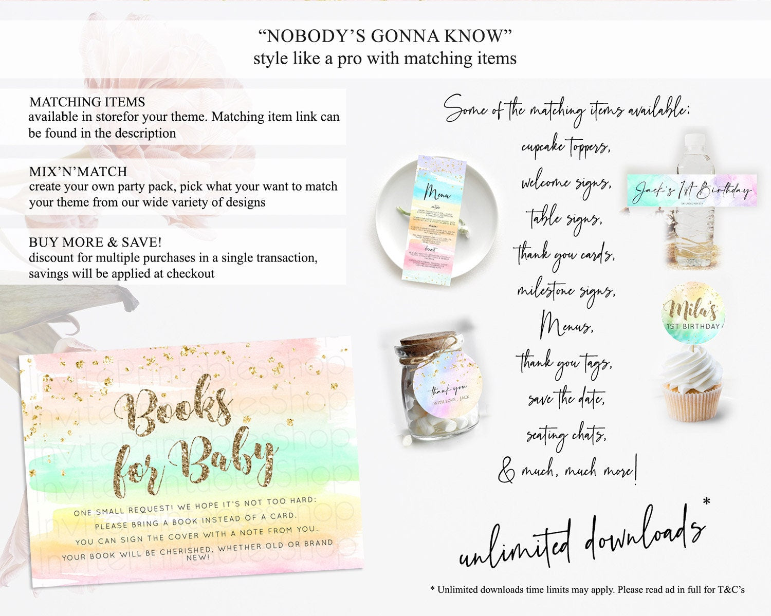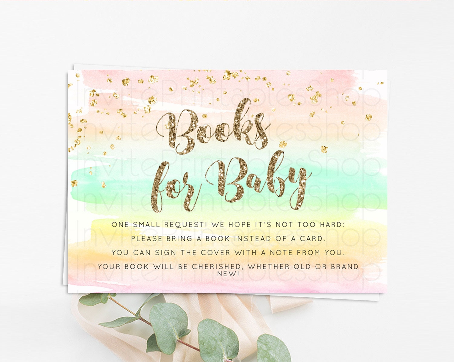 Pastel Books For Baby Card Pastel Rainbow Book Insert Colorful Ombre Watercolor Book Card Confetti Glitter Baby Book Poem Request D10592