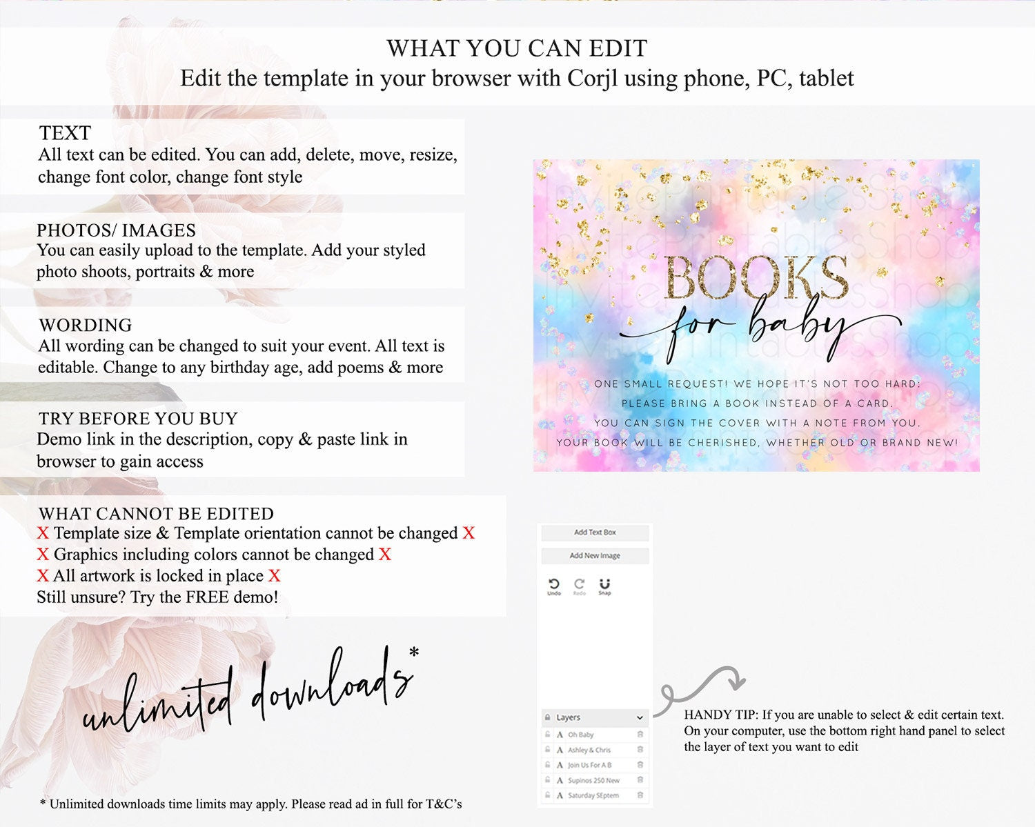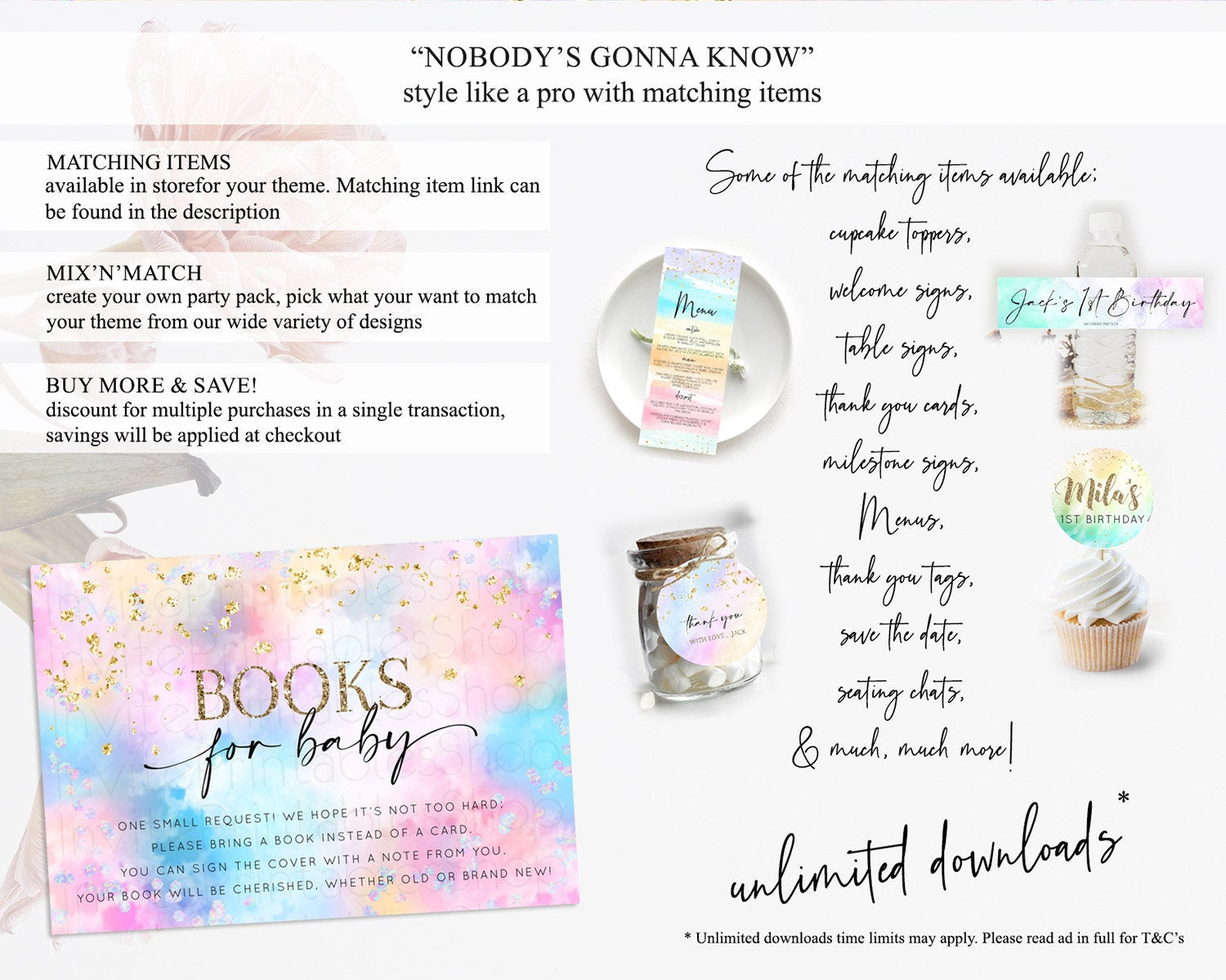 Pastel Books For Baby Card Pastel Rainbow Book Insert Colorful Ombre Watercolor Book Card Confetti Glitter Baby Book Poem Request D10607