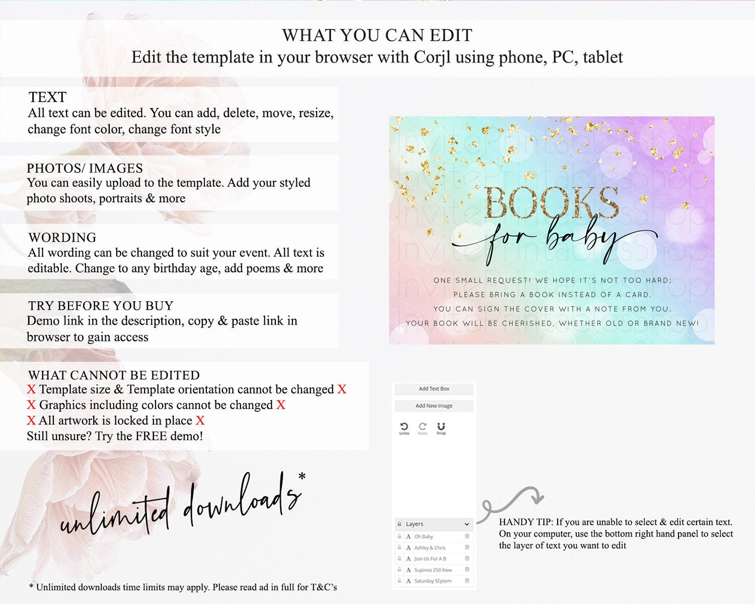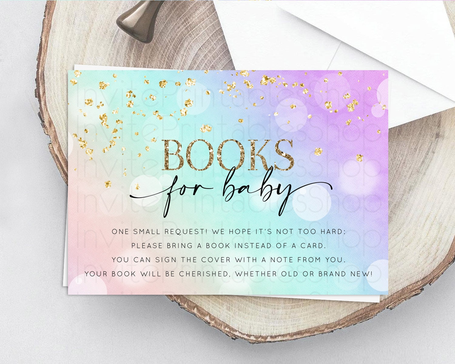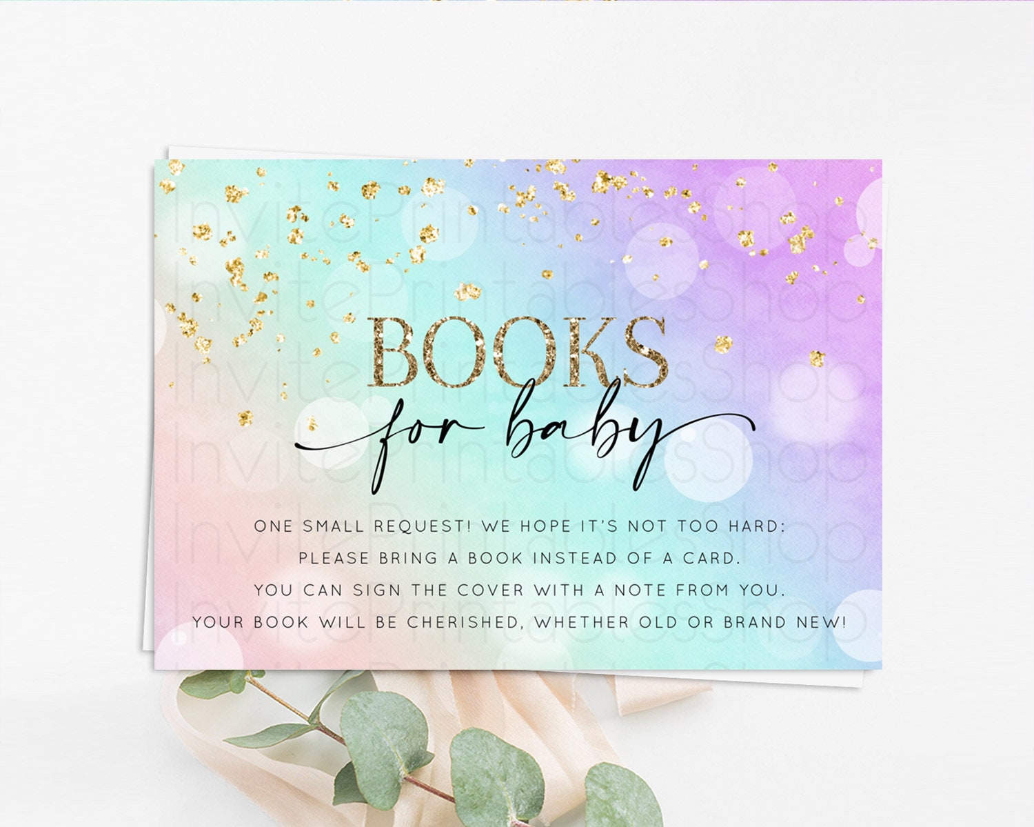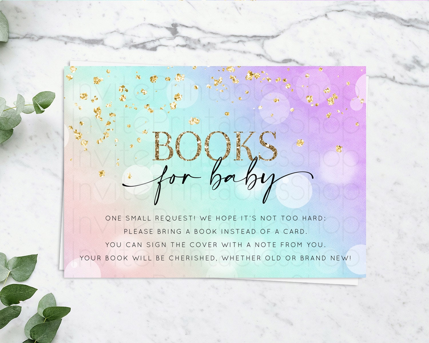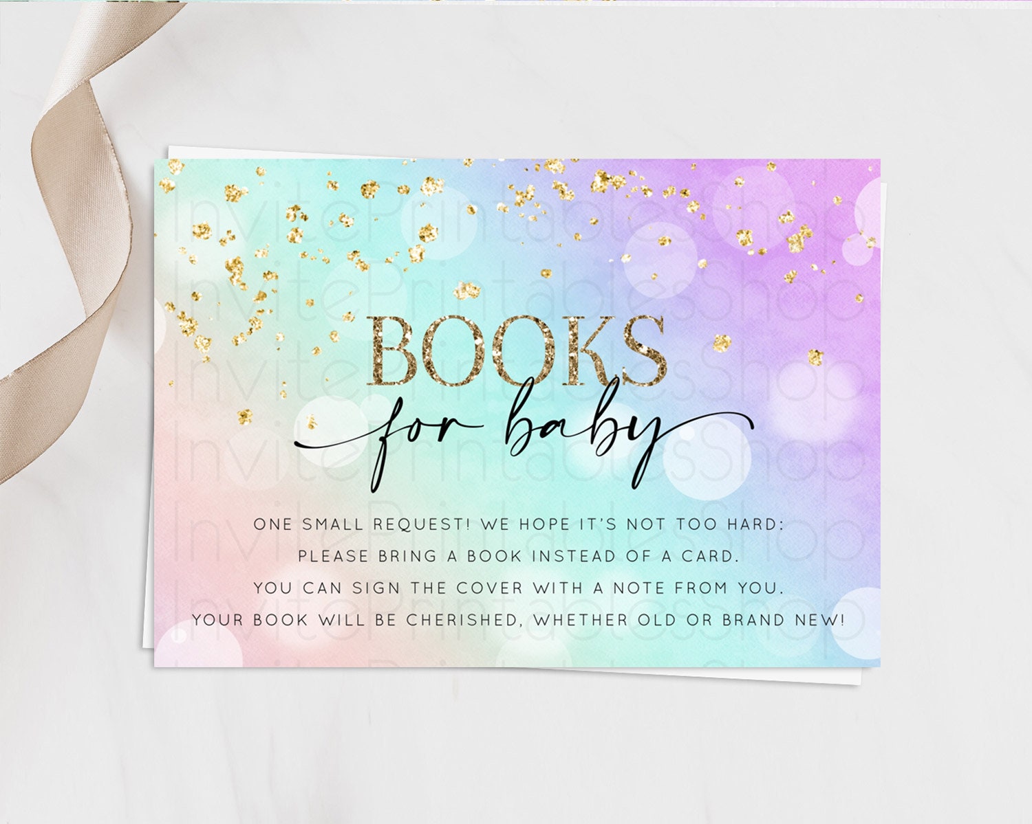 Pastel Books For Baby Card Pastel Rainbow Book Insert Colorful Ombre Watercolor Book Card Confetti Glitter Baby Book Poem Request D10618