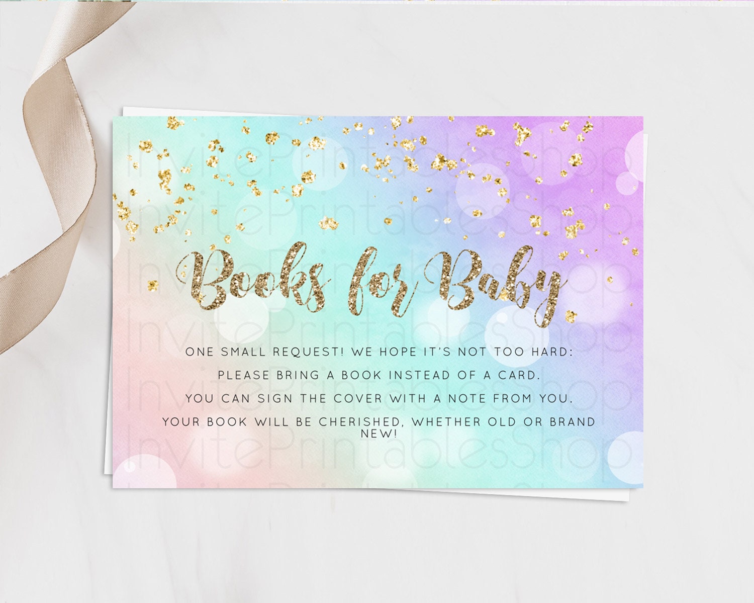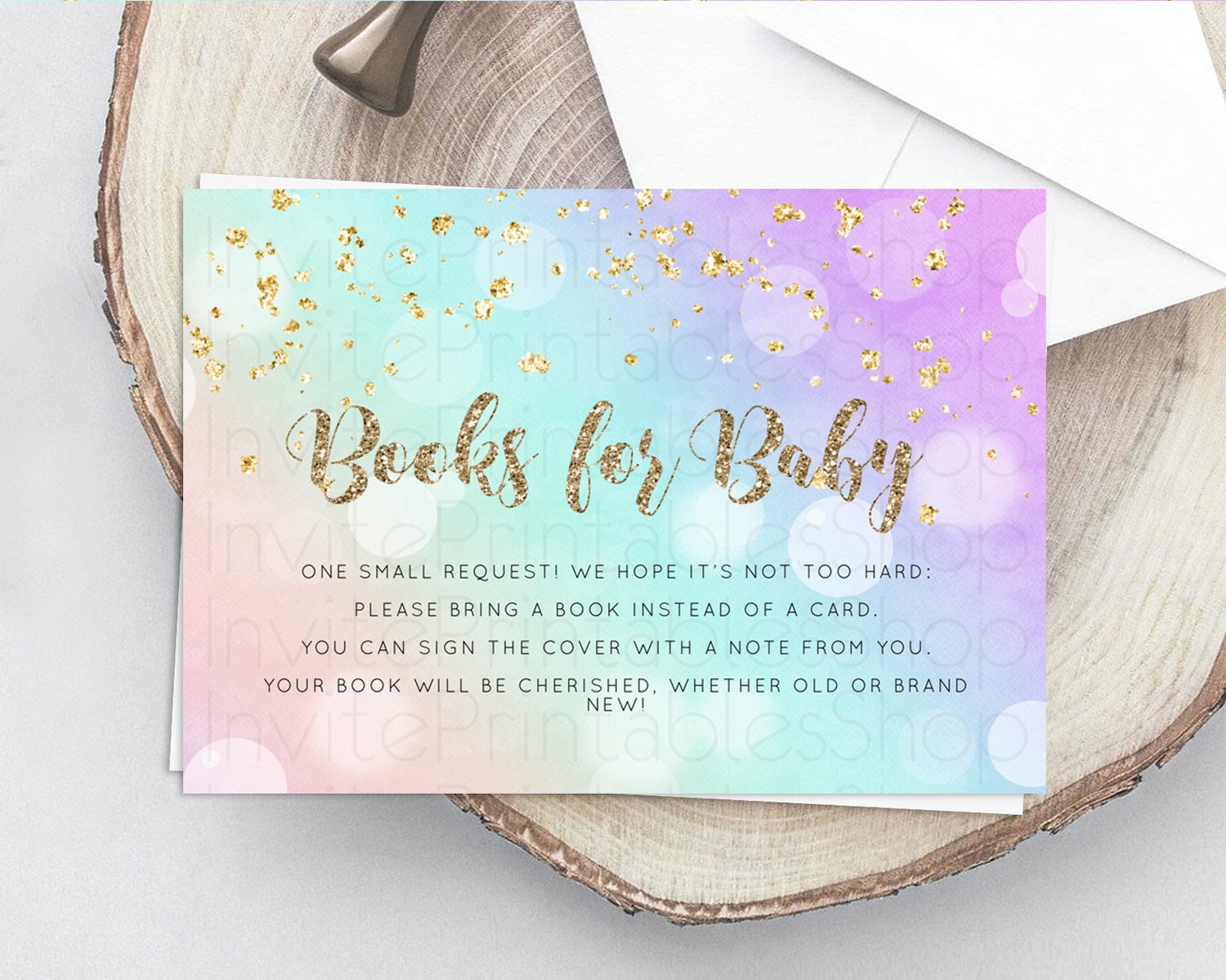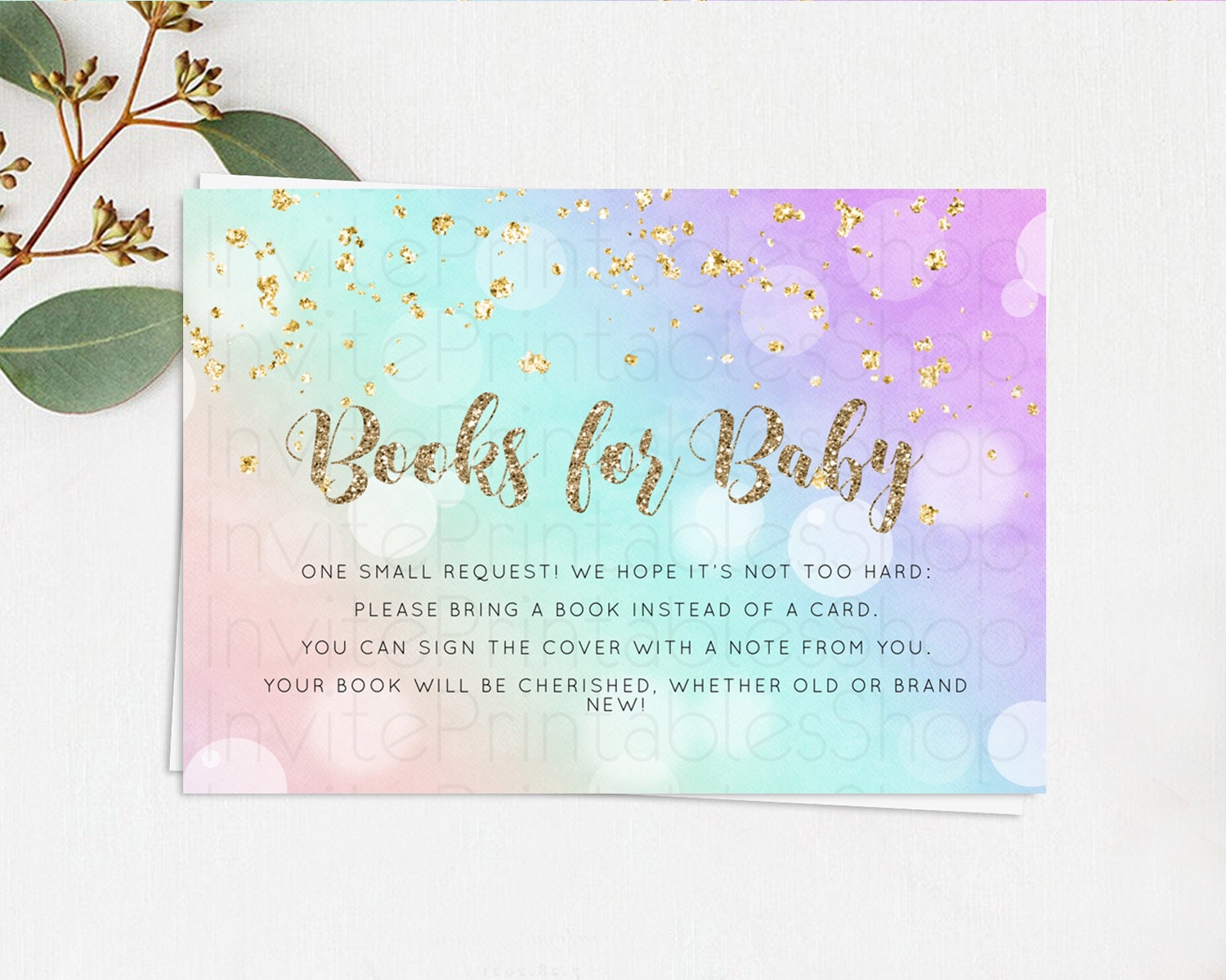 Pastel Books For Baby Card Pastel Rainbow Book Insert Colorful Ombre Watercolor Book Card Confetti Glitter Baby Book Poem Request D10621