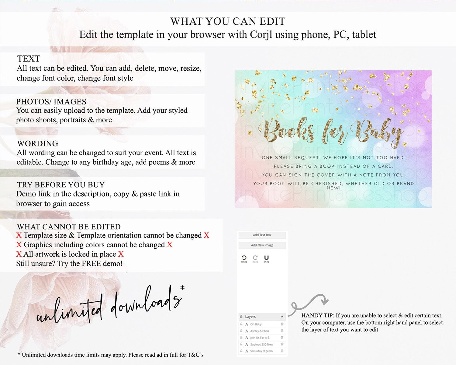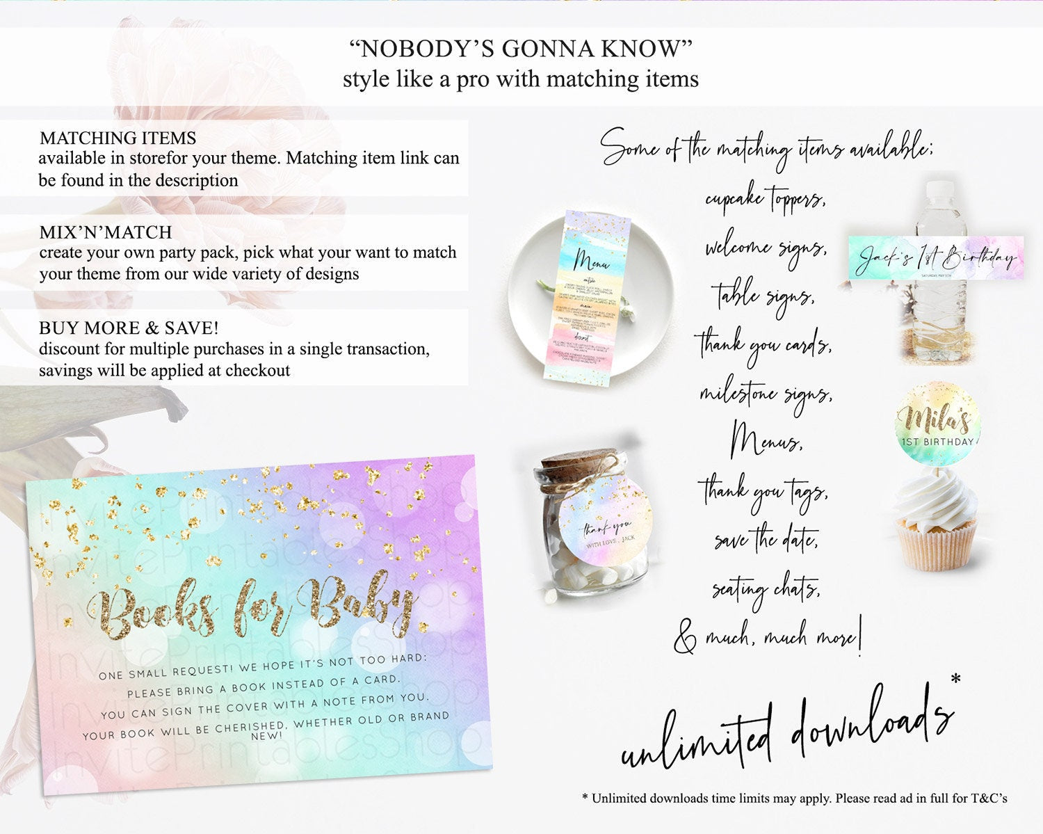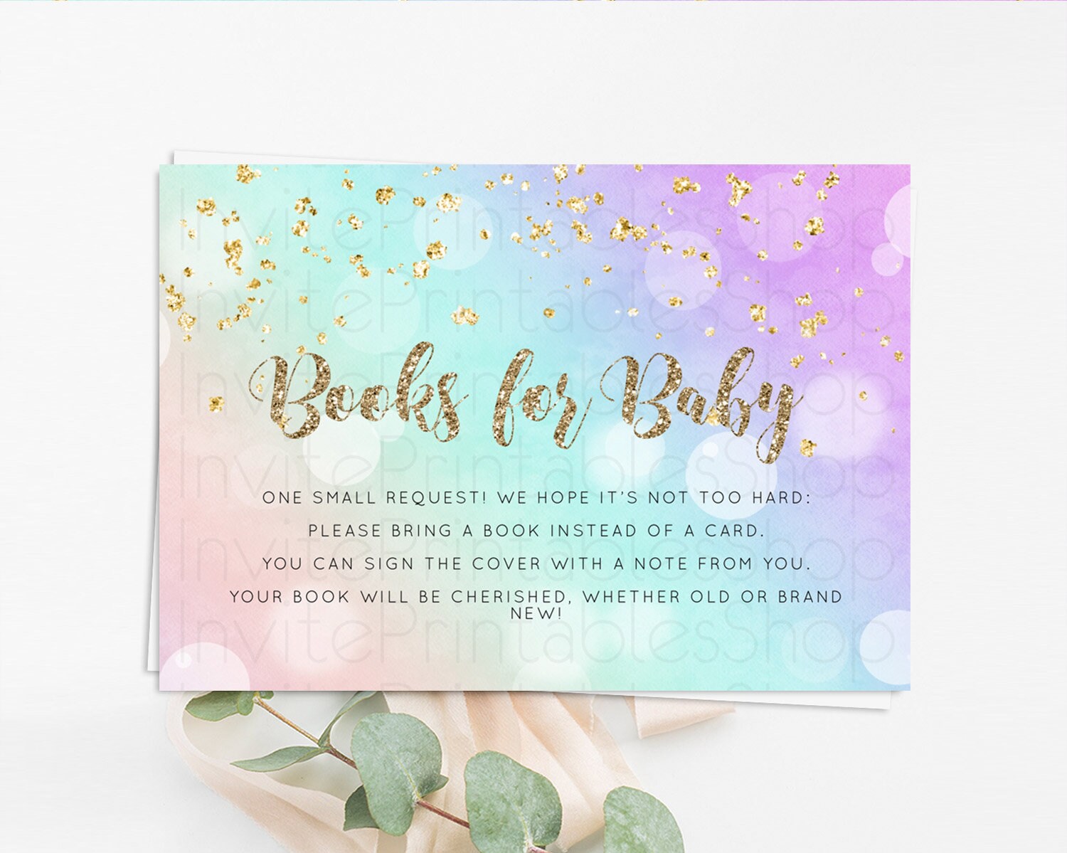 Pastel Books For Baby Card Pastel Rainbow Book Insert Colorful Ombre Watercolor Book Card Confetti Glitter Baby Book Poem Request D10621