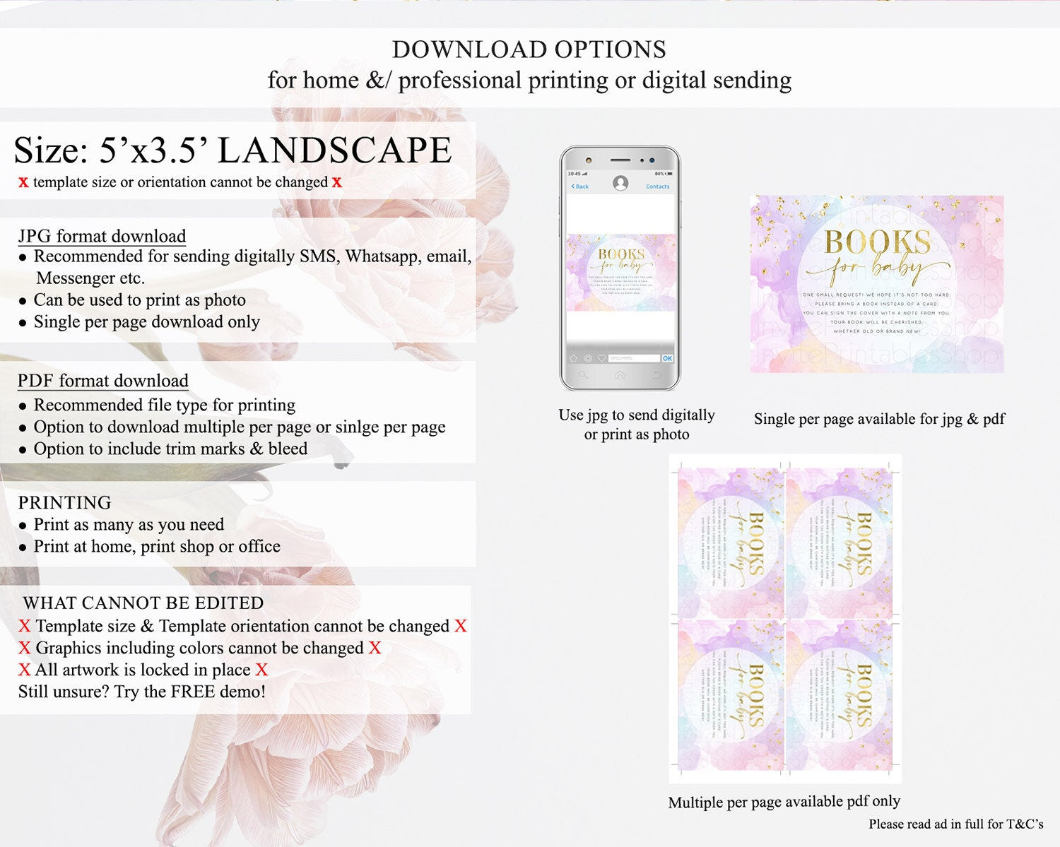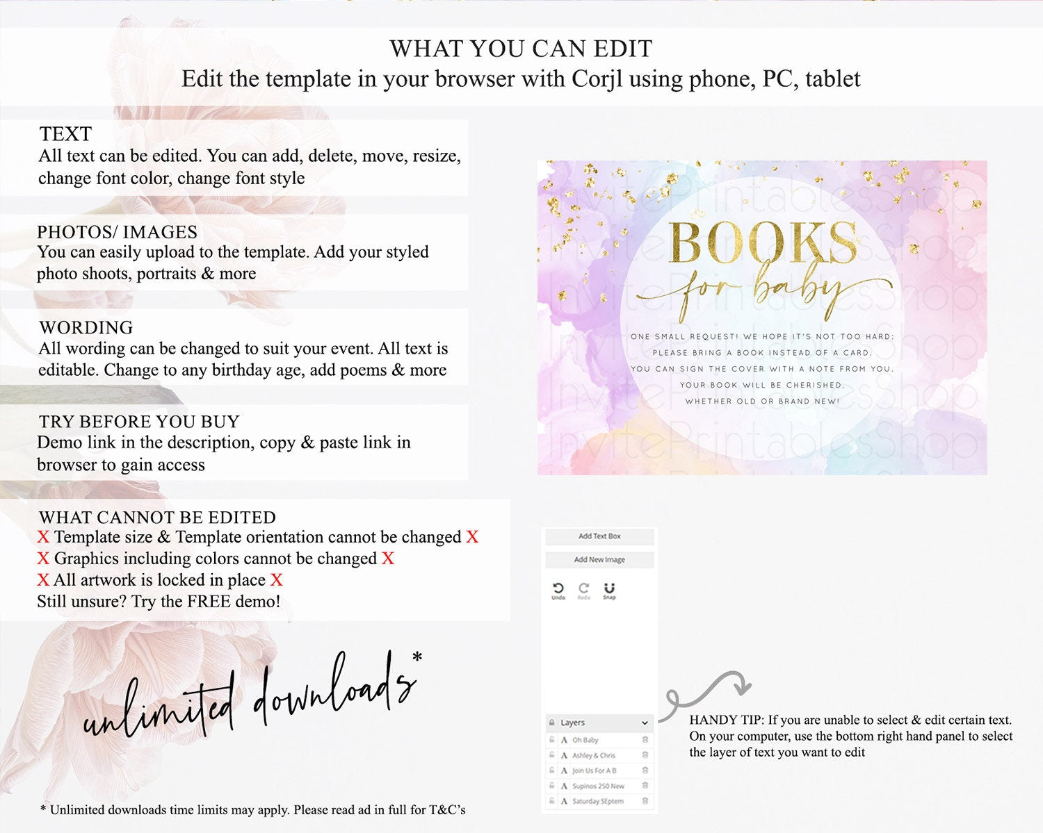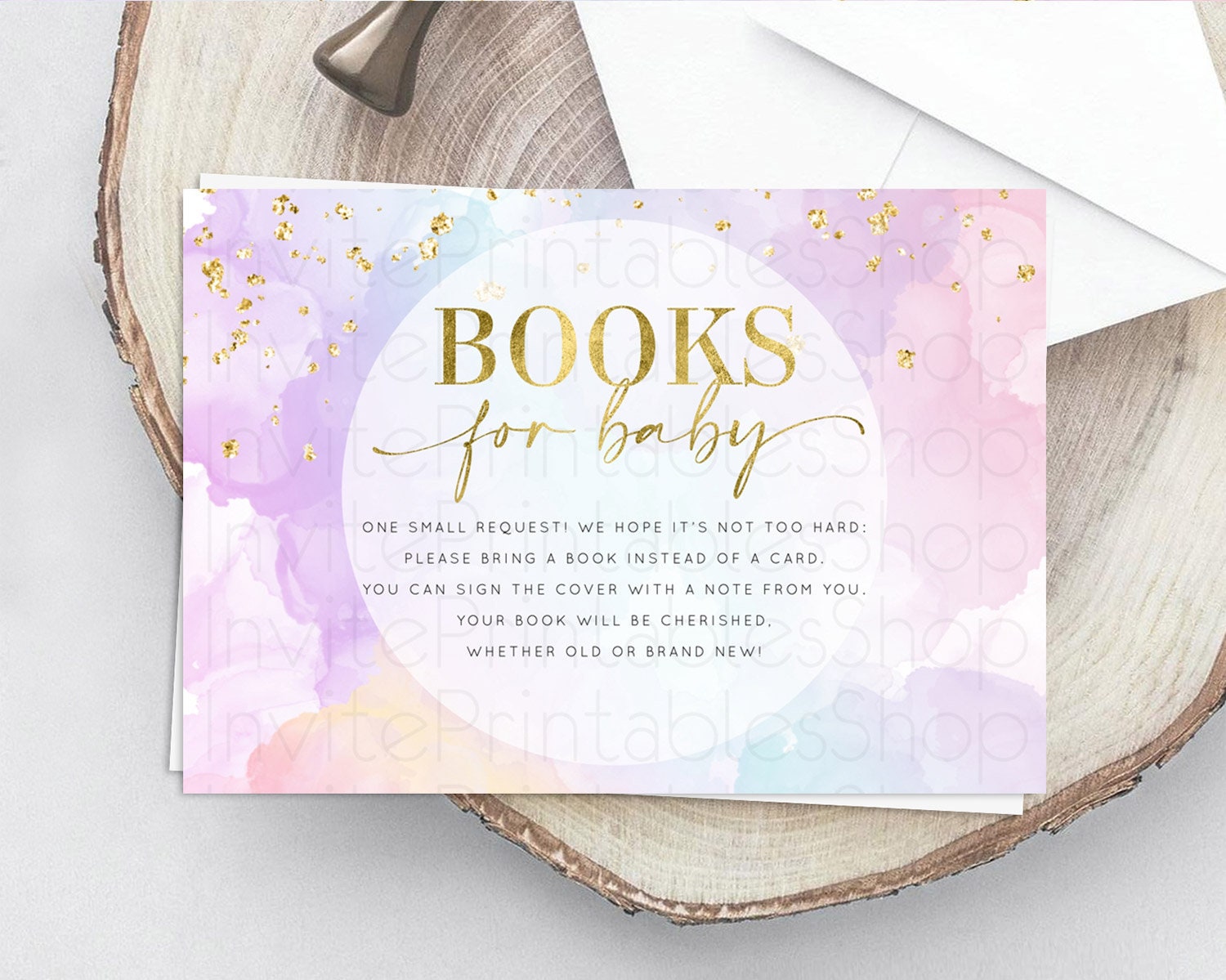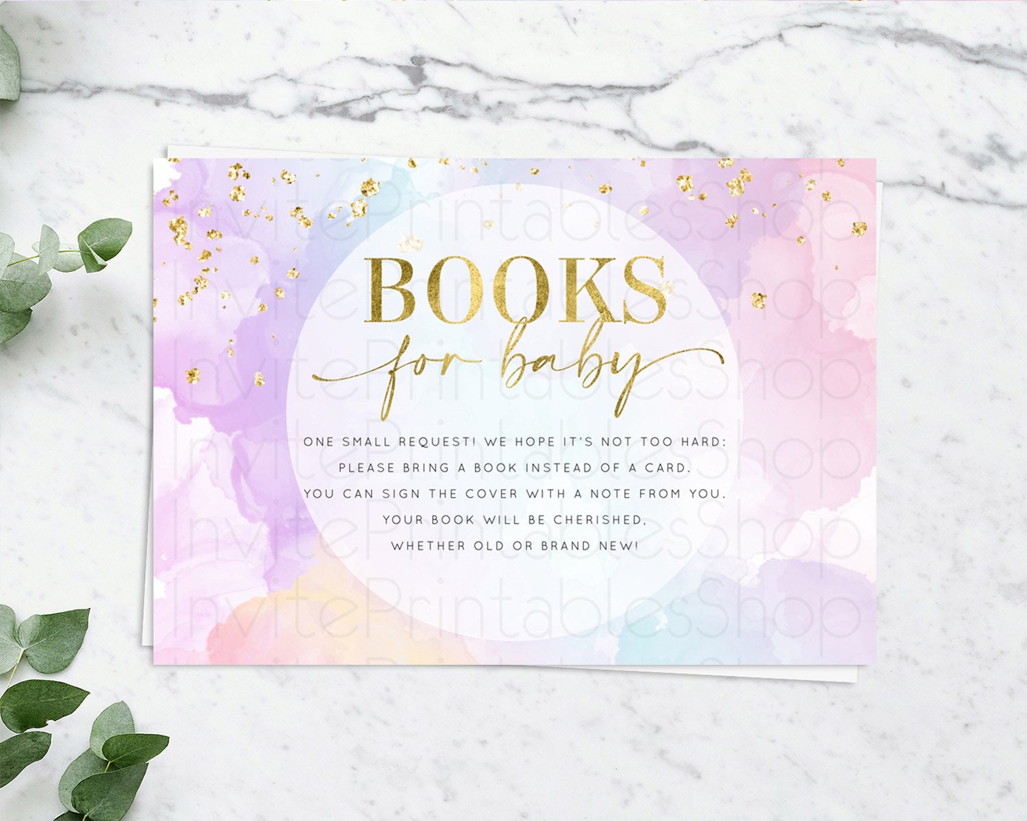 Pastel Books For Baby Card Pastel Rainbow Book Insert Colorful Ombre Watercolor Book Card Confetti Glitter Baby Book Poem Request D10623