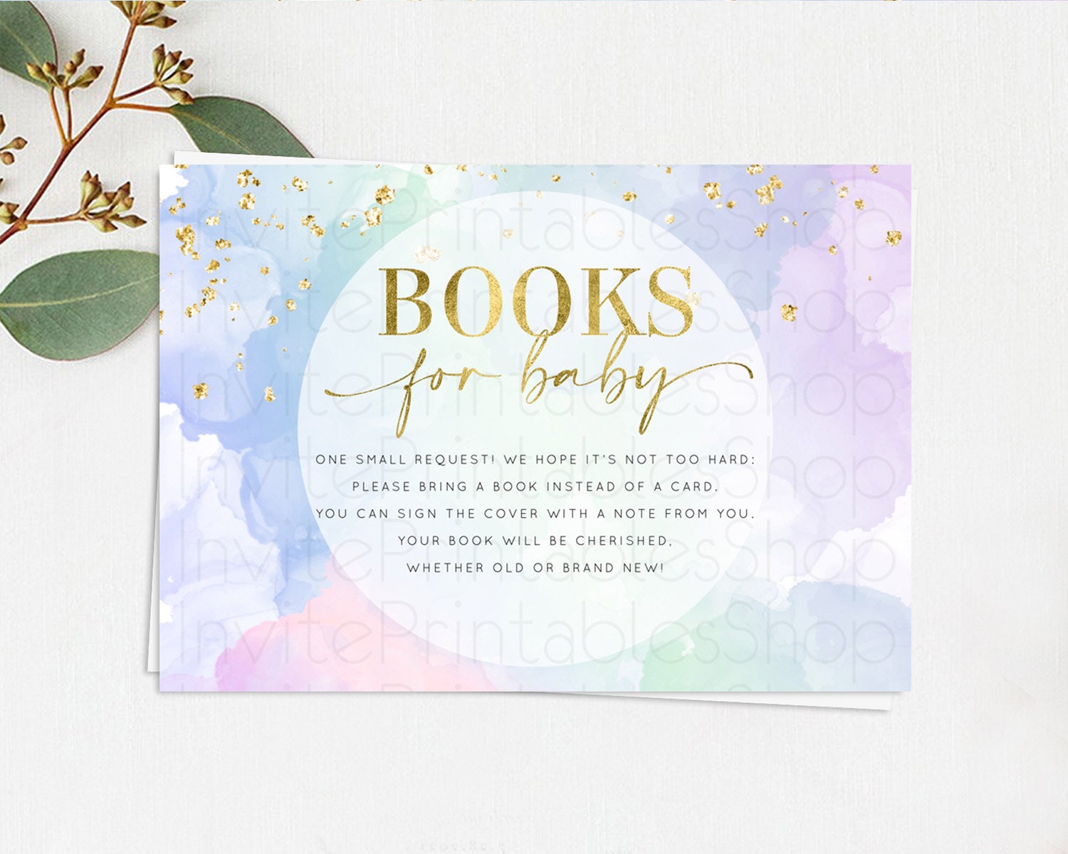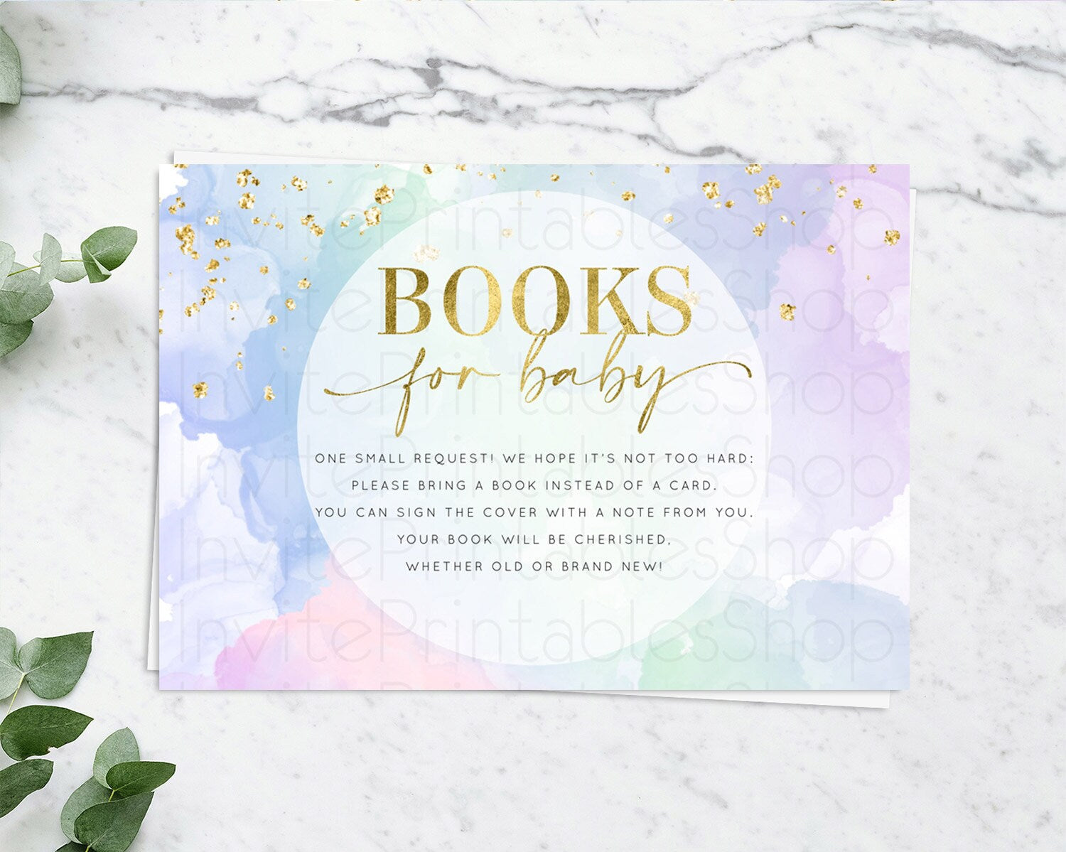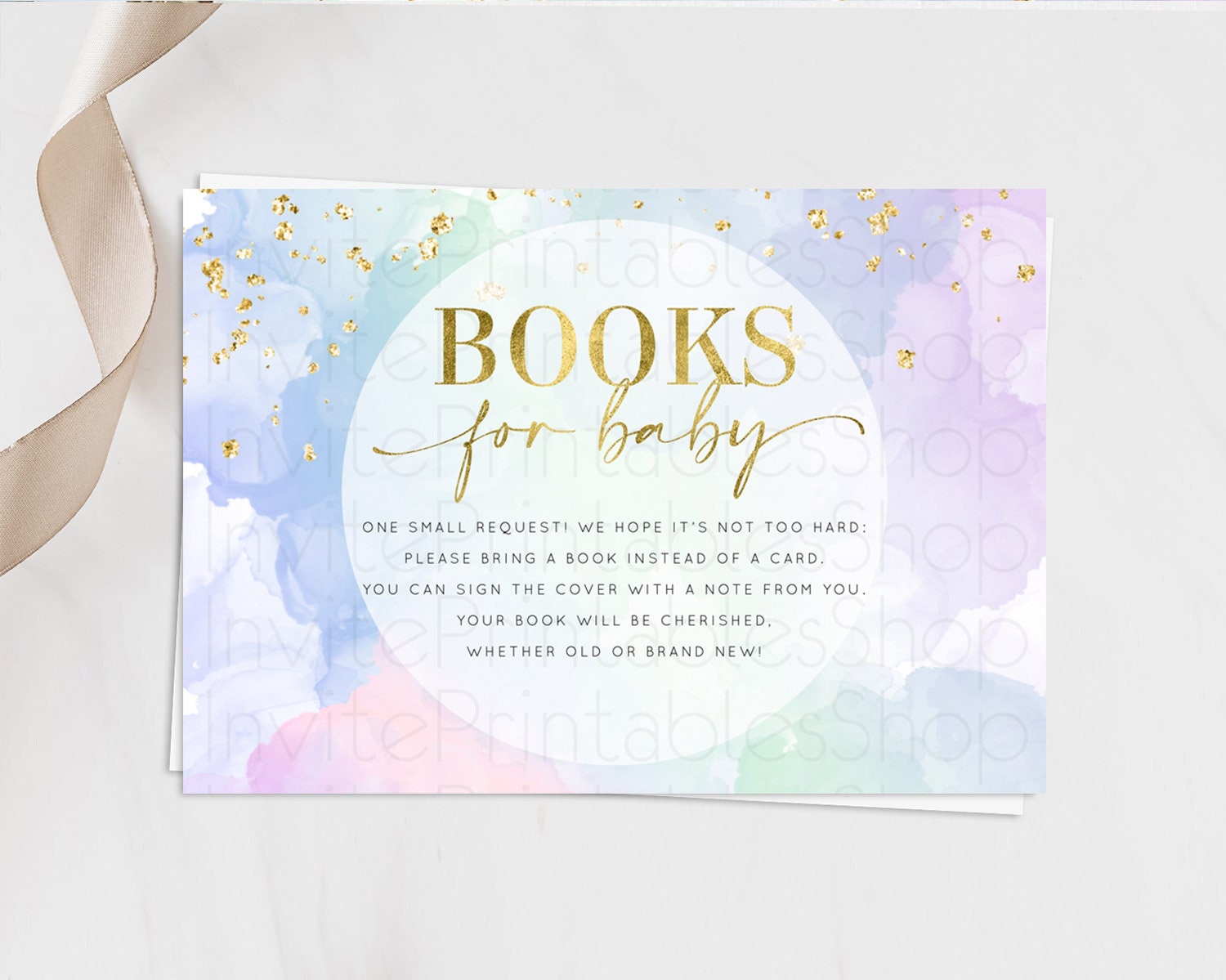 Pastel Books For Baby Card Pastel Rainbow Book Insert Colorful Ombre Watercolor Book Card Confetti Glitter Baby Book Poem Request D10624