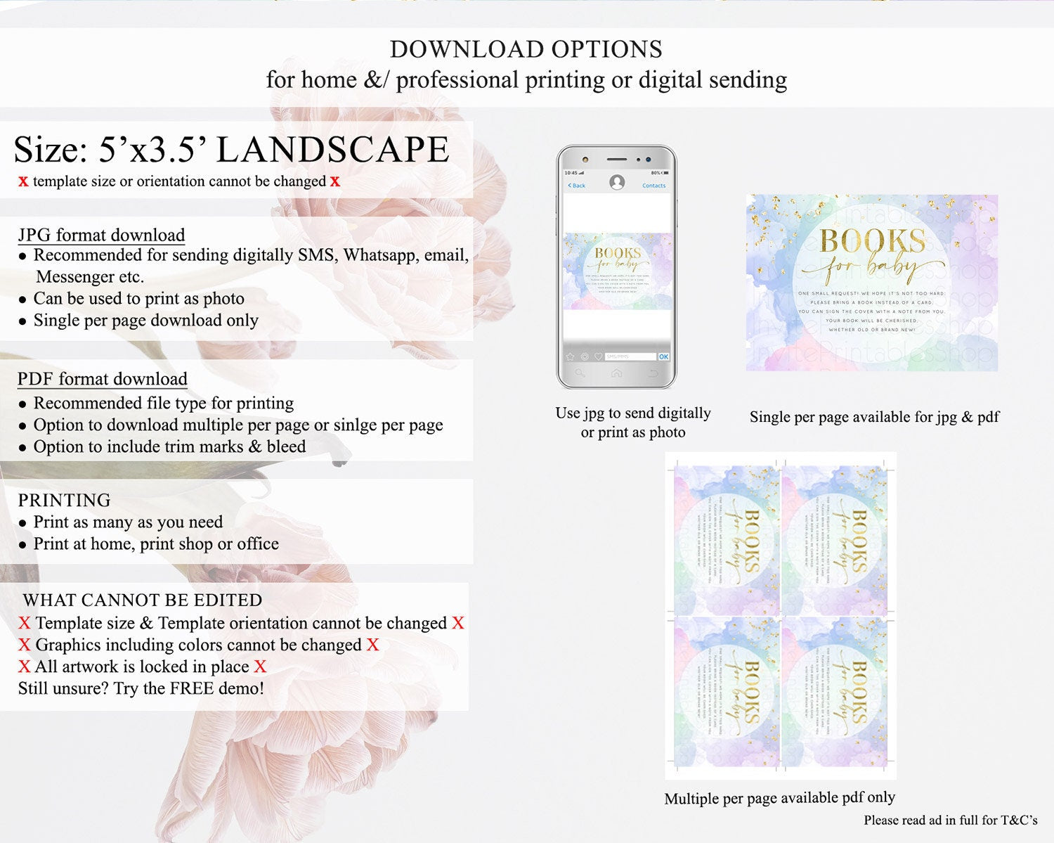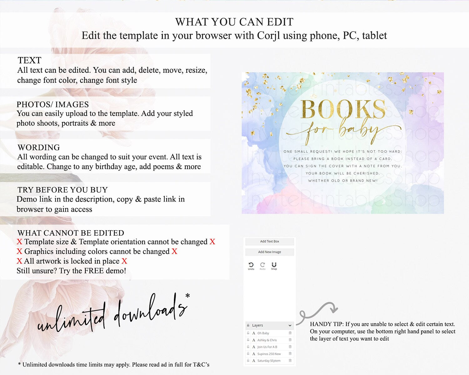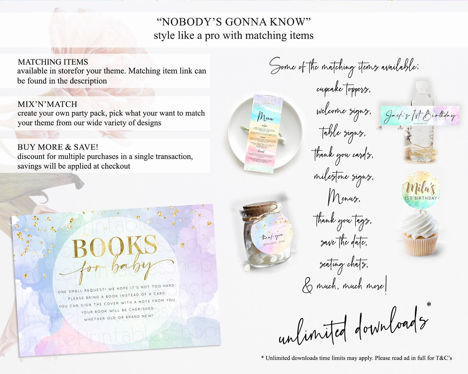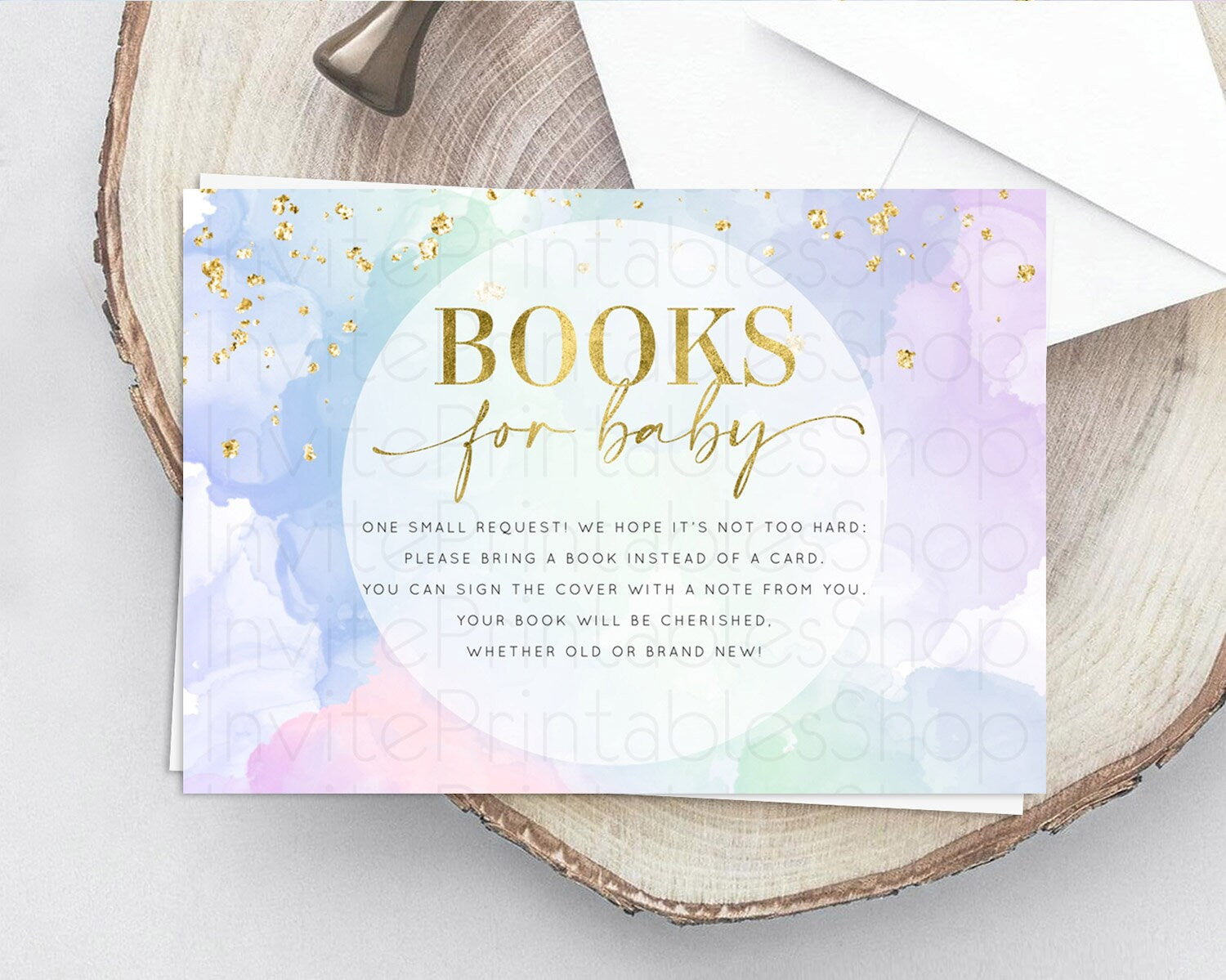 Pastel Books For Baby Card Pastel Rainbow Book Insert Colorful Ombre Watercolor Book Card Confetti Glitter Baby Book Poem Request D10624