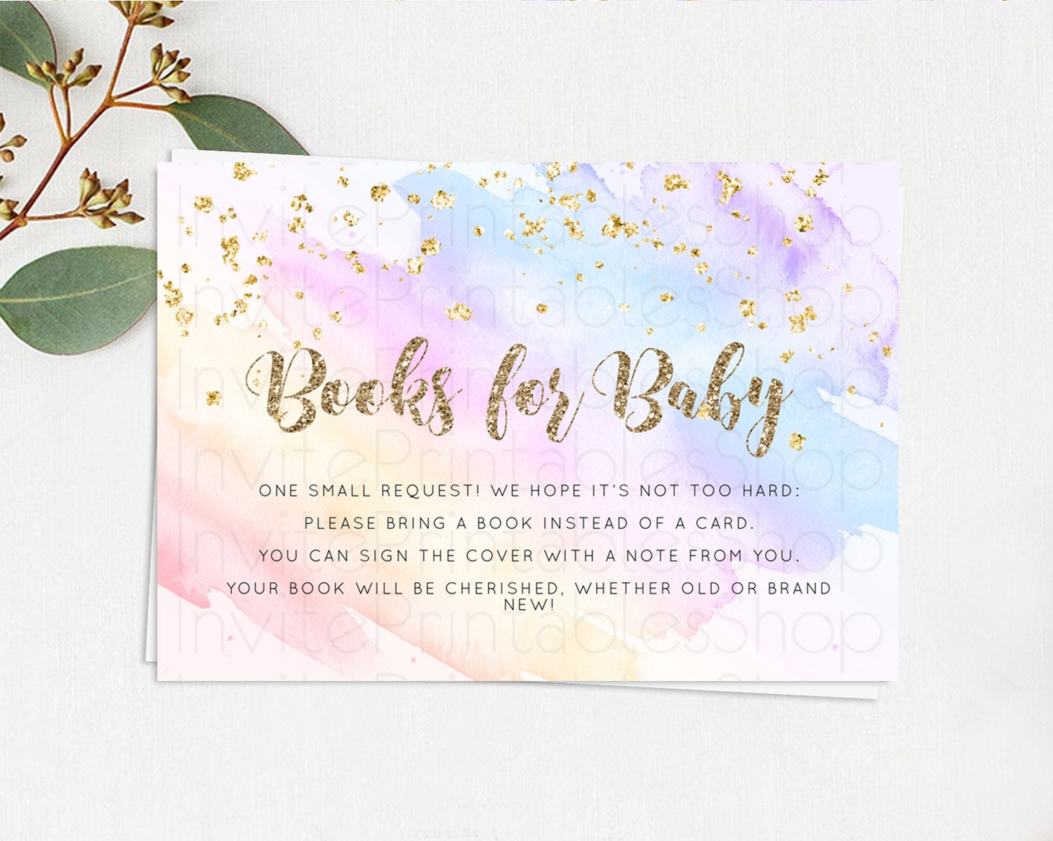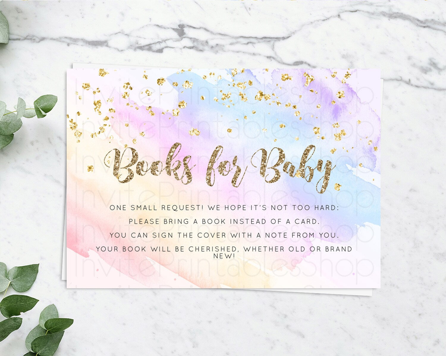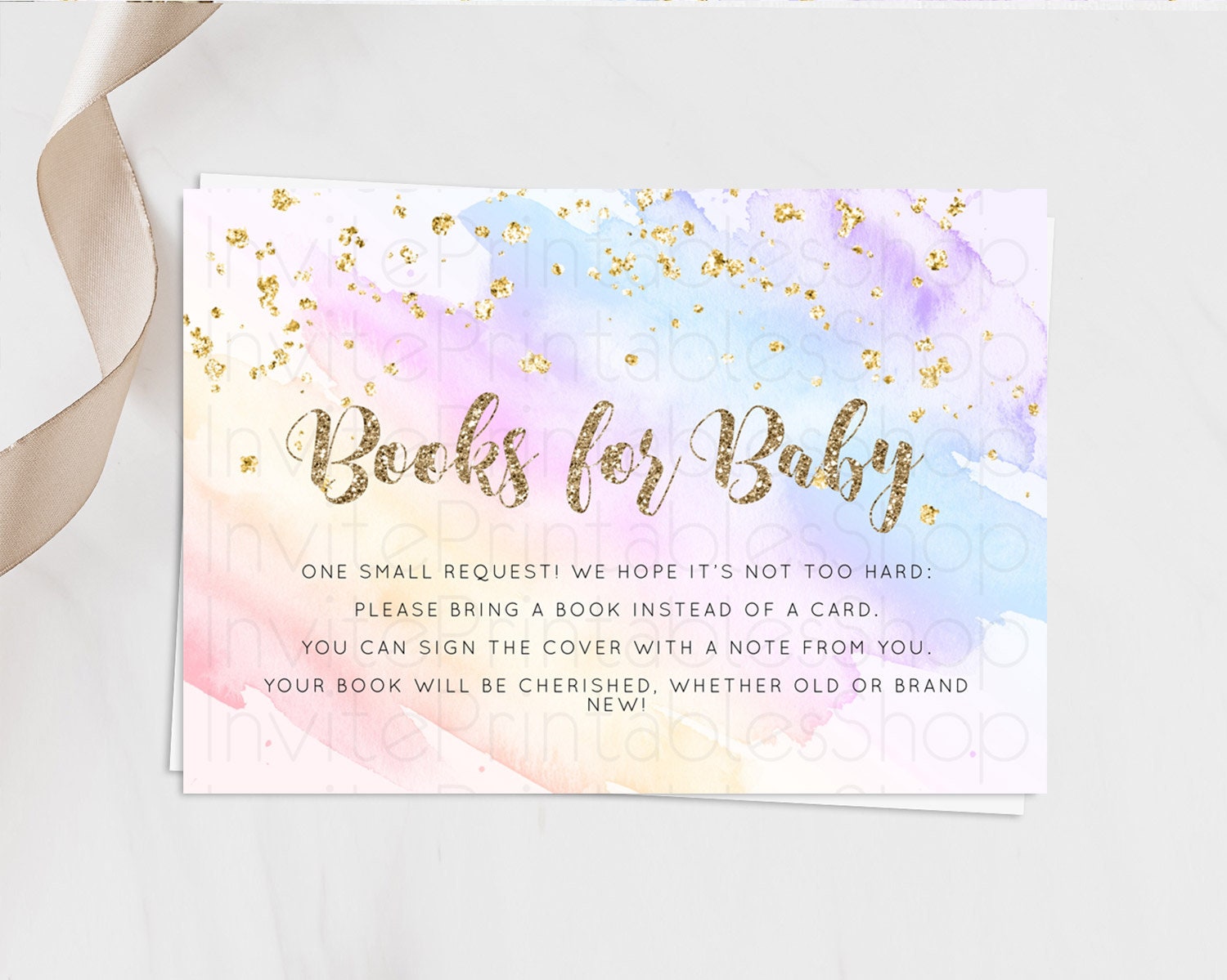 Pastel Books For Baby Card Pastel Rainbow Book Insert Colorful Ombre Watercolor Book Card Confetti Glitter Baby Book Poem Request D10633