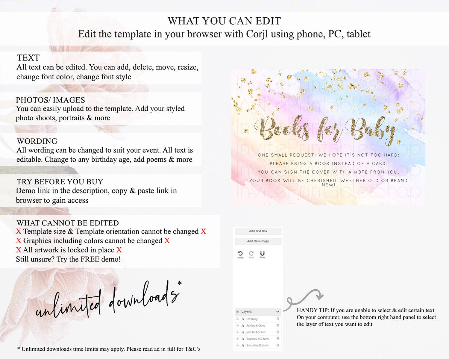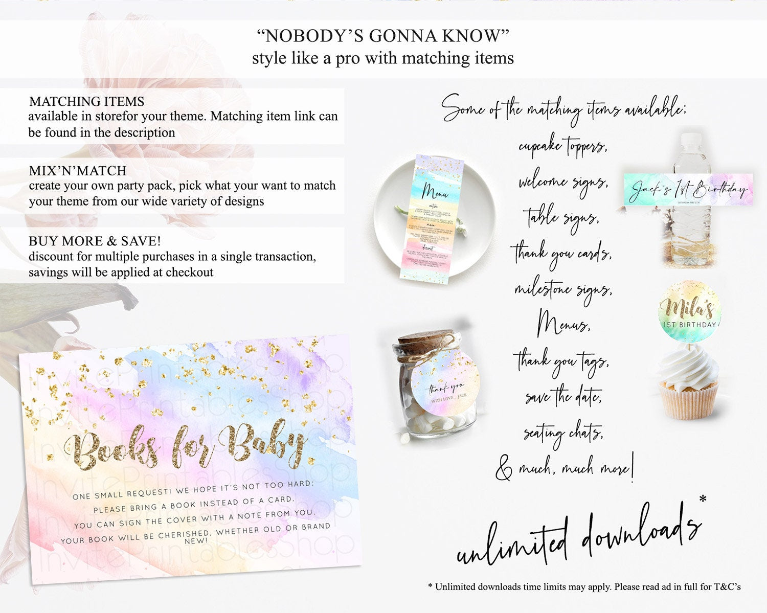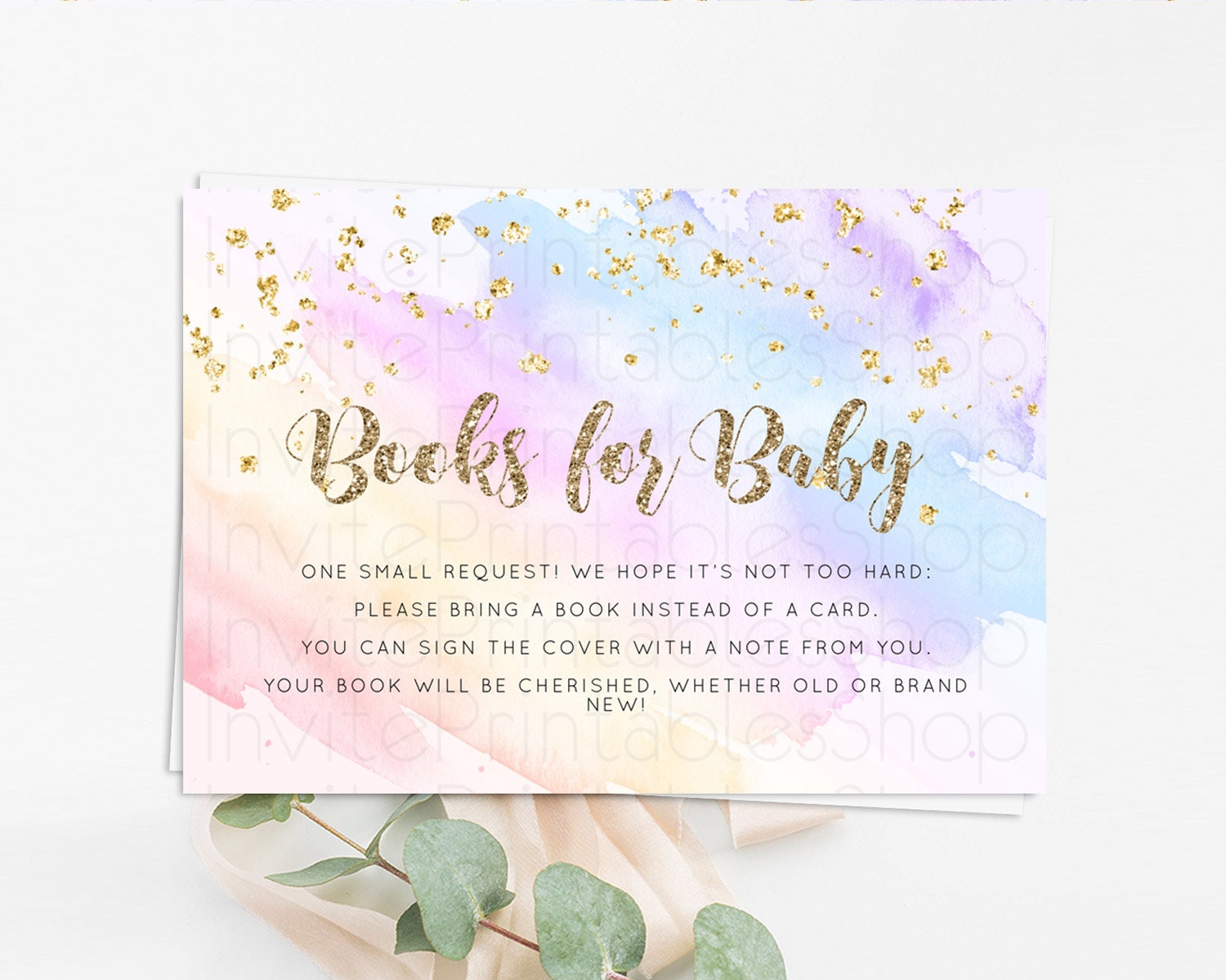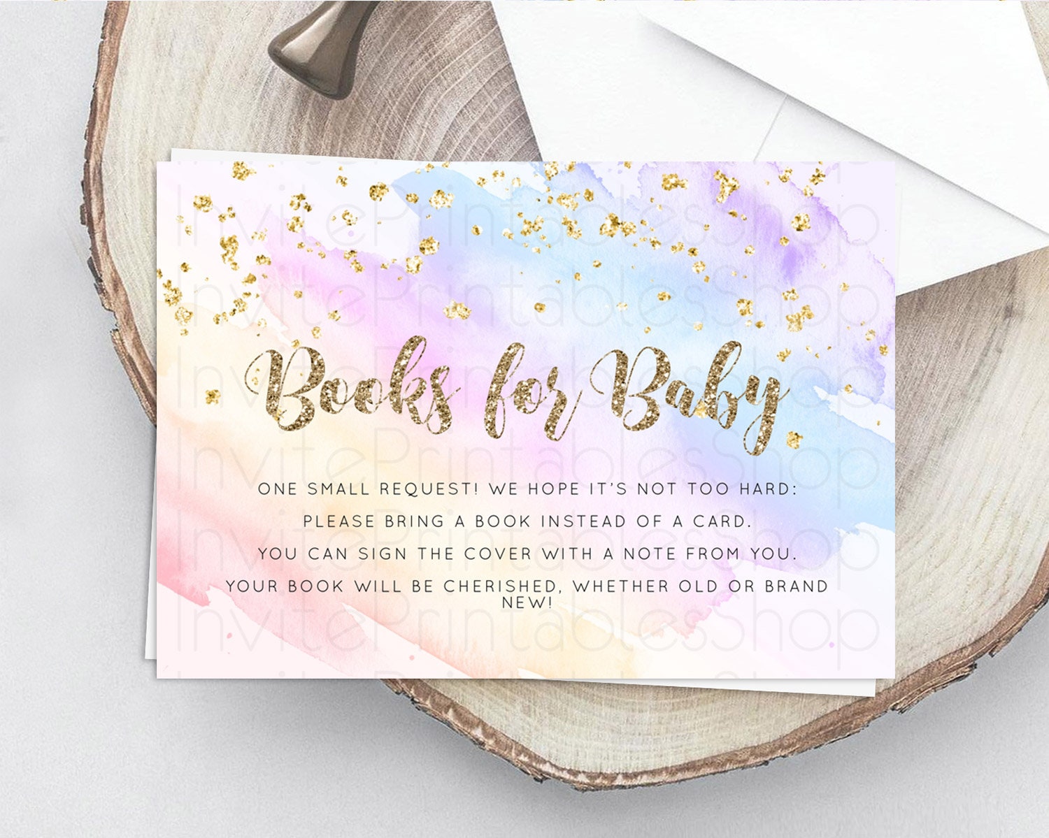 Pastel Books For Baby Card Pastel Rainbow Book Insert Colorful Ombre Watercolor Book Card Confetti Glitter Baby Book Poem Request D10633