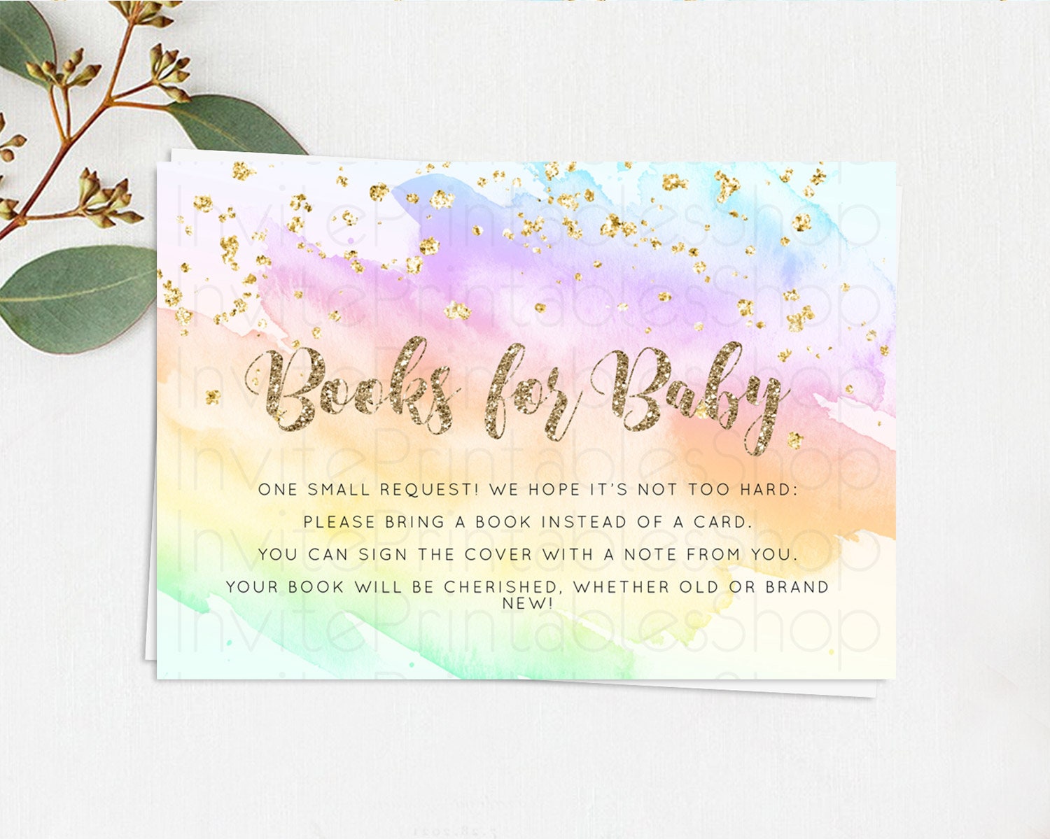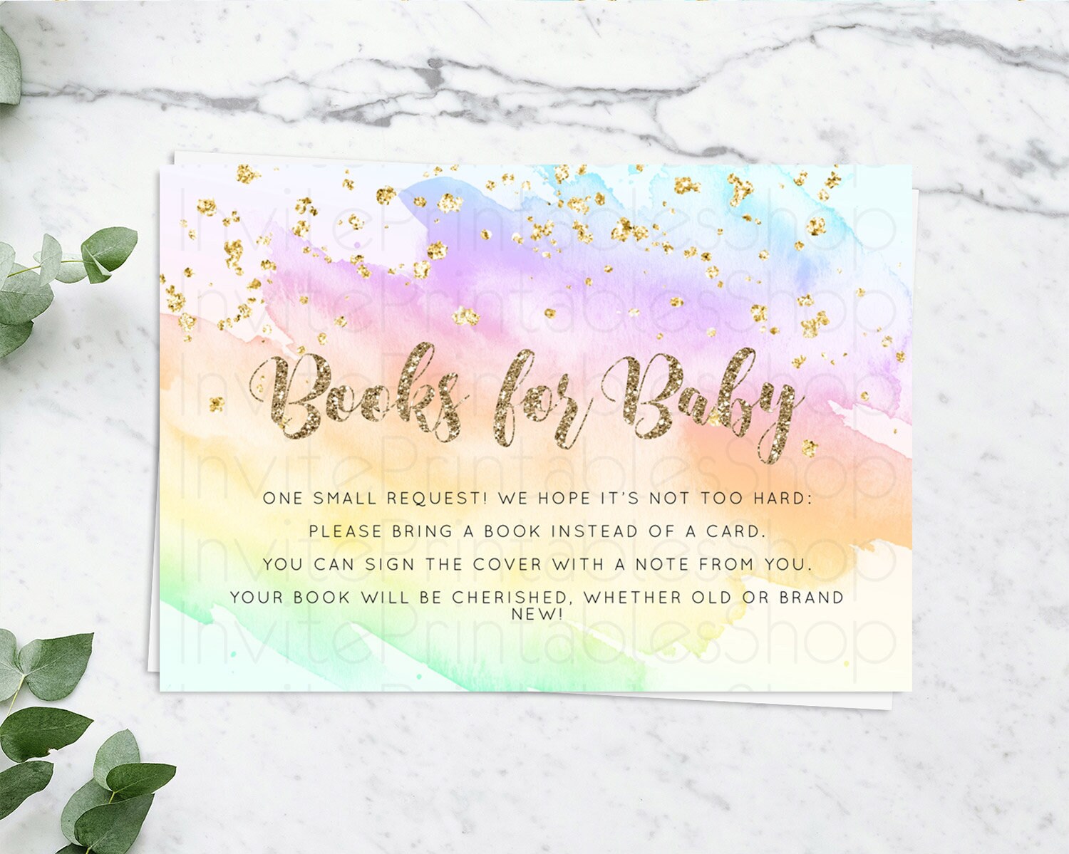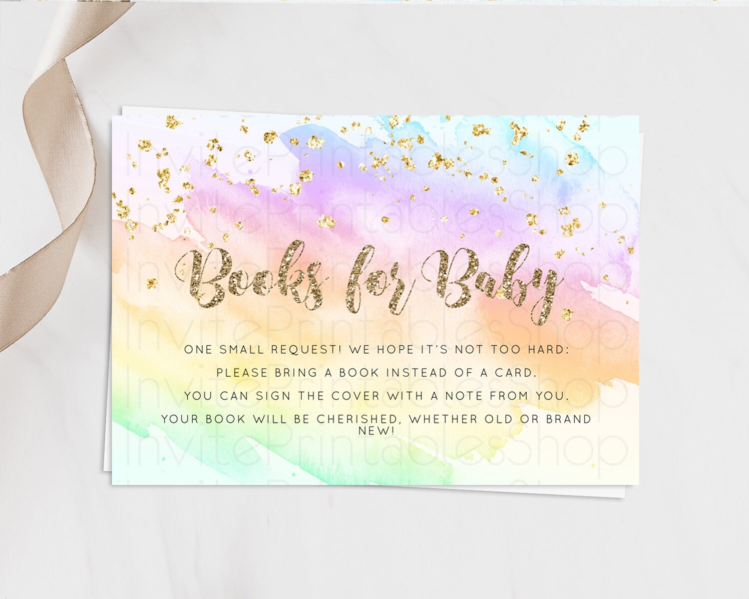 Pastel Books For Baby Card Pastel Rainbow Book Insert Colorful Ombre Watercolor Book Card Confetti Glitter Baby Book Poem Request D10643