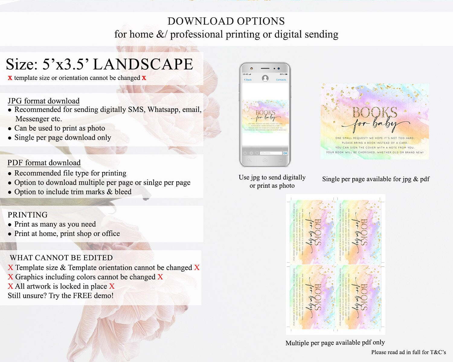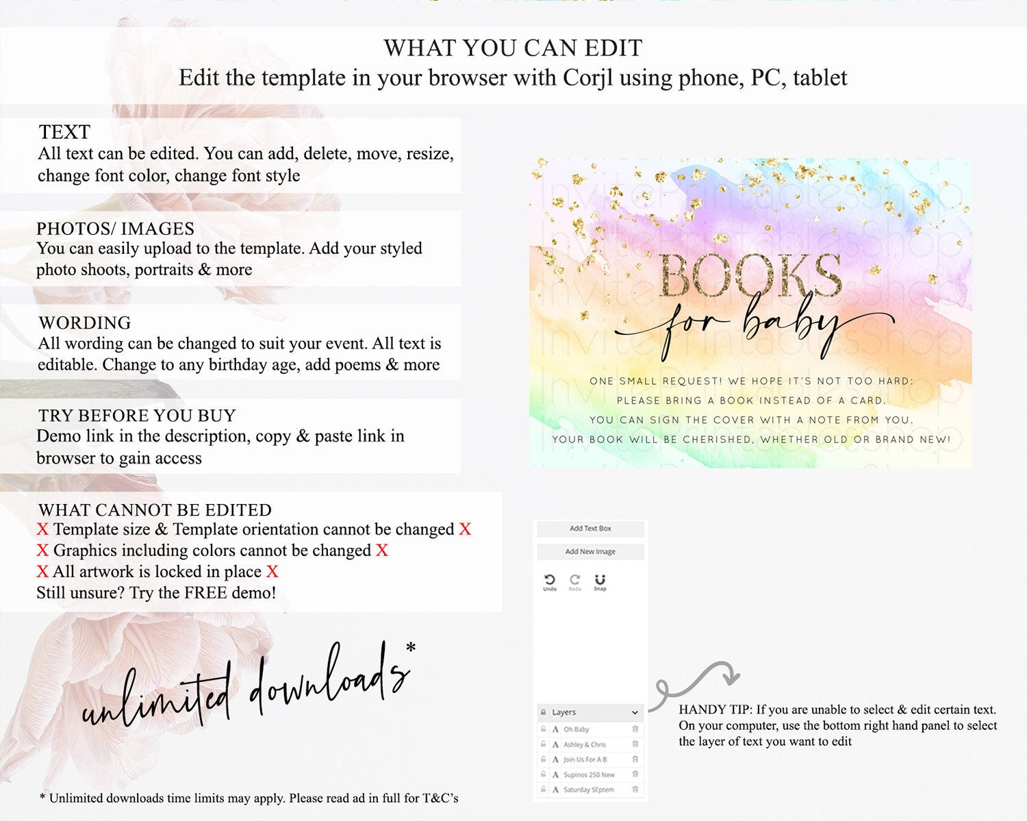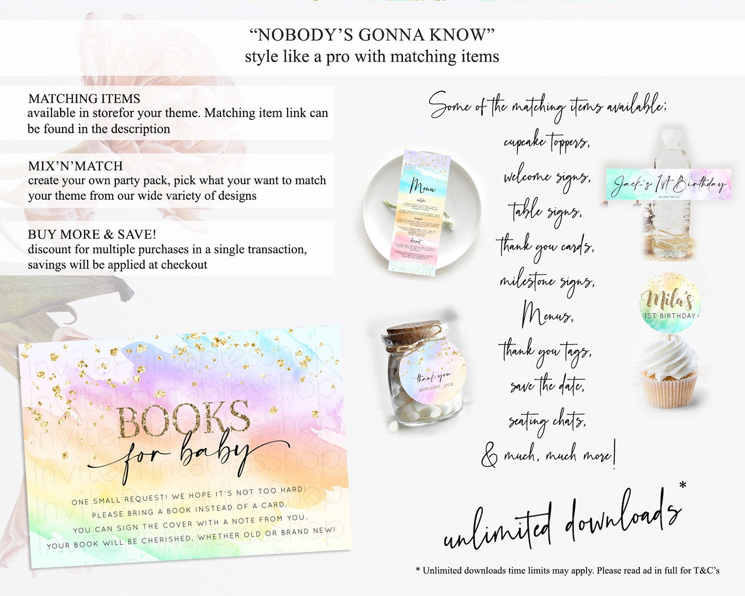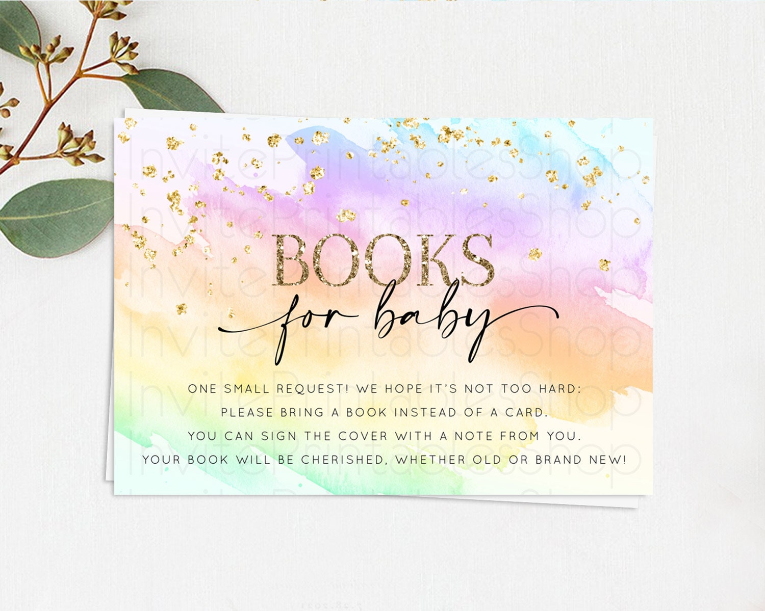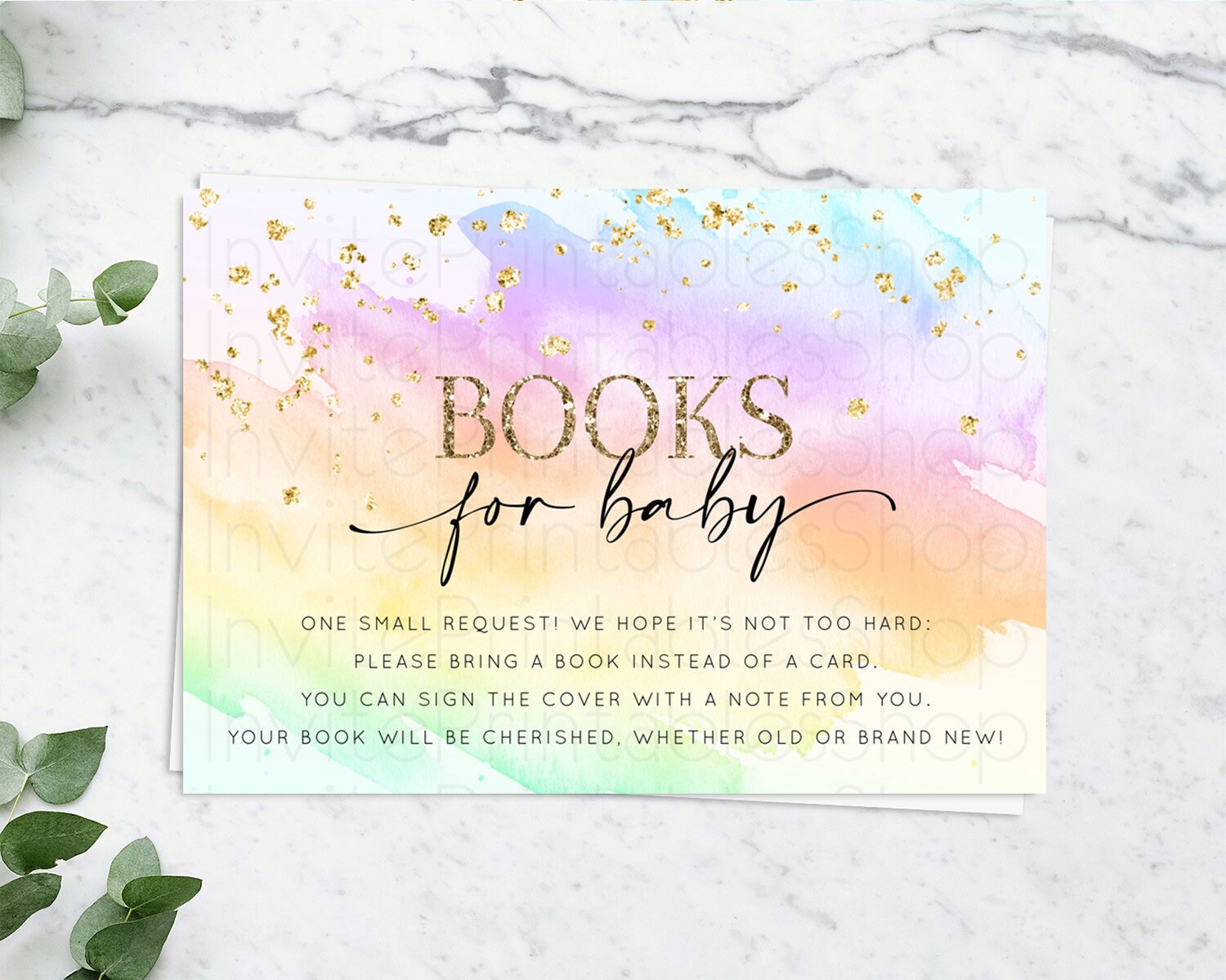 Pastel Books For Baby Card Pastel Rainbow Book Insert Colorful Ombre Watercolor Book Card Confetti Glitter Baby Book Poem Request D10645