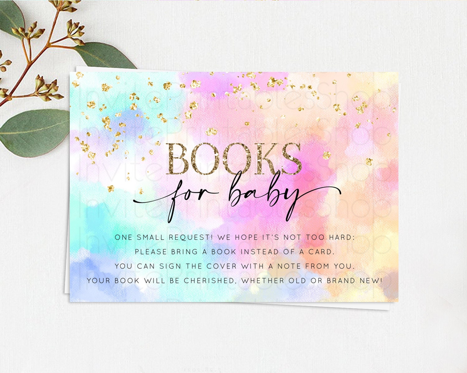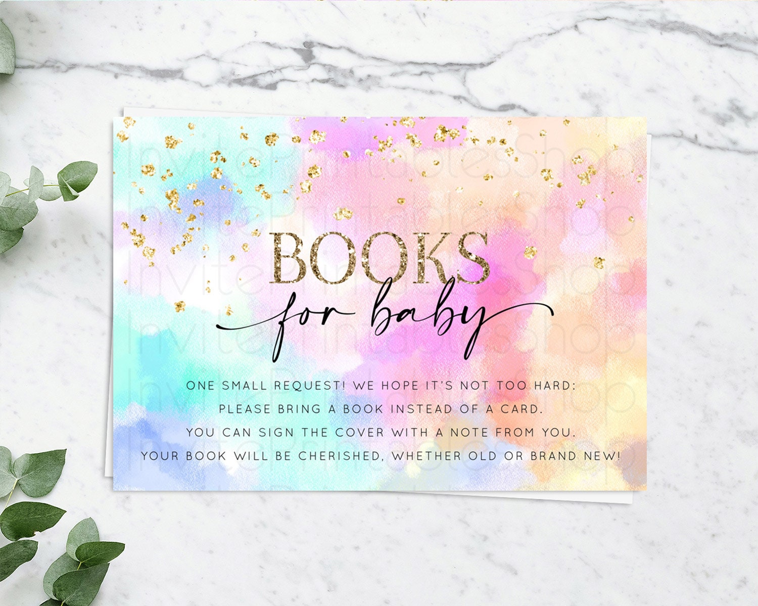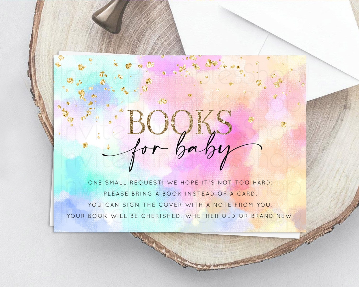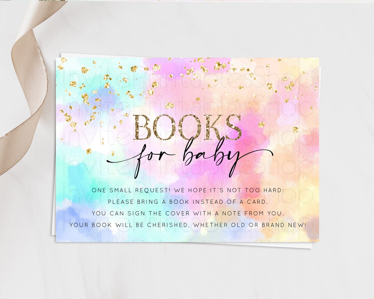 Pastel Books For Baby Card Pastel Rainbow Book Insert Colorful Ombre Watercolor Book Card Confetti Glitter Baby Book Poem Request D10667