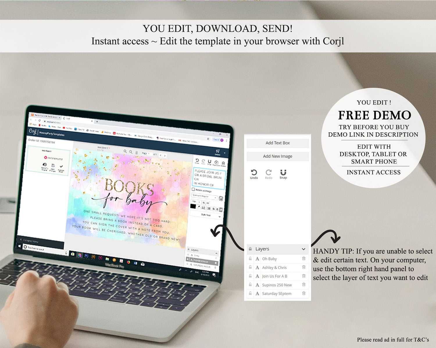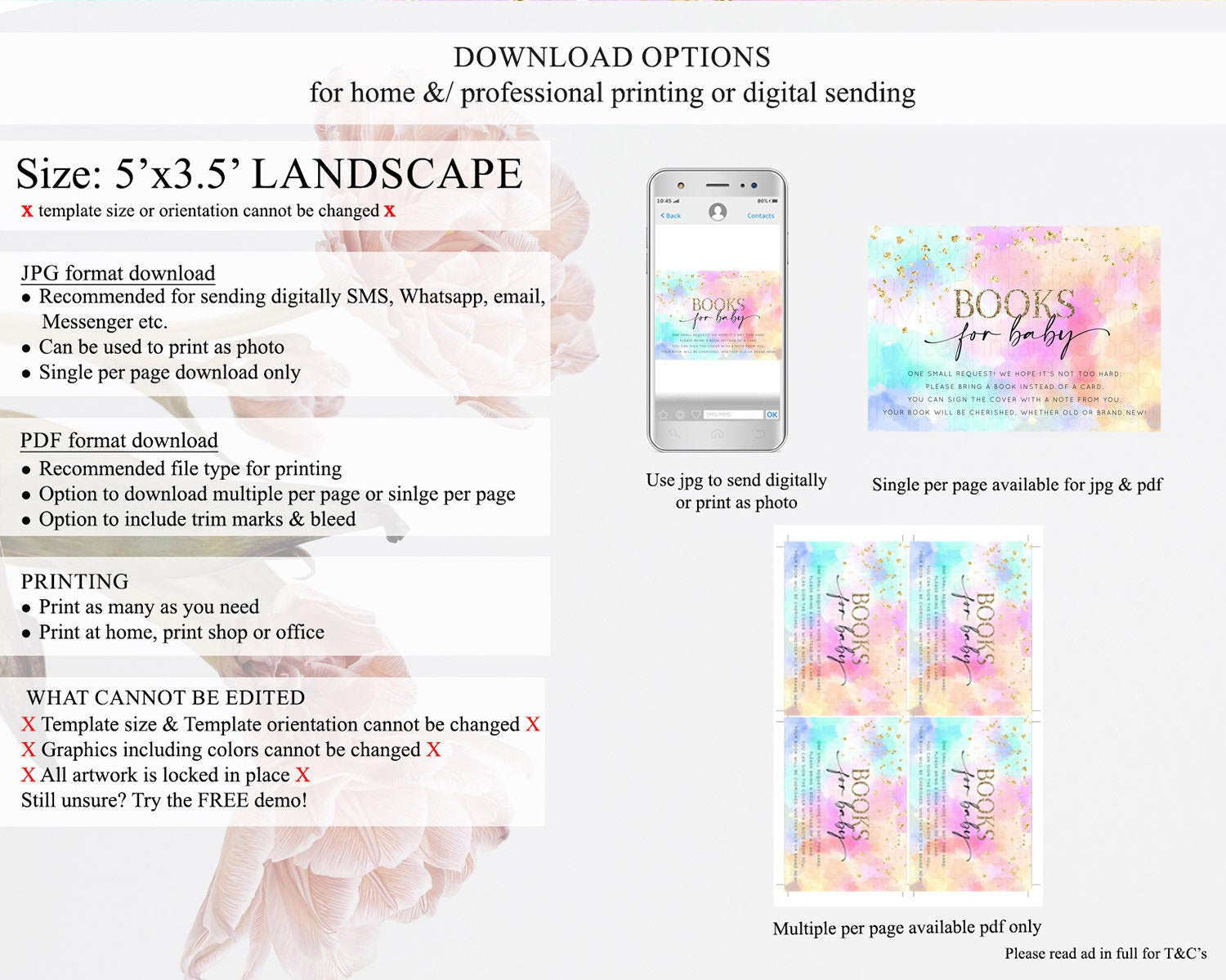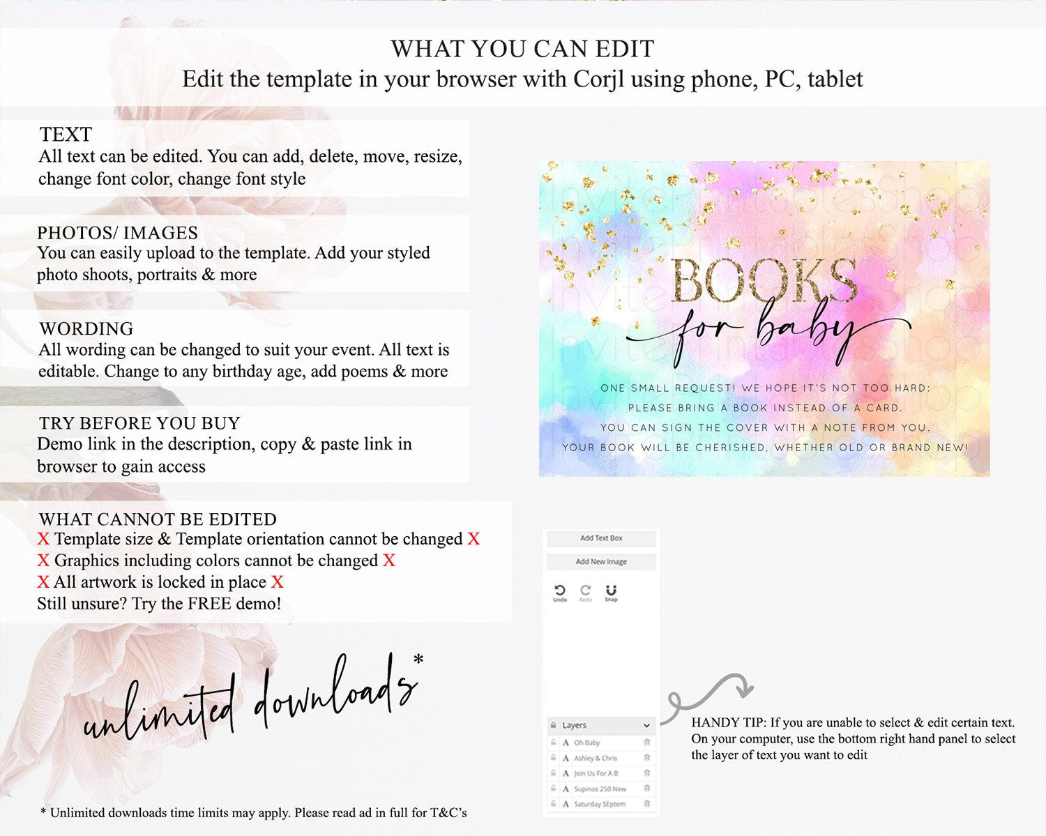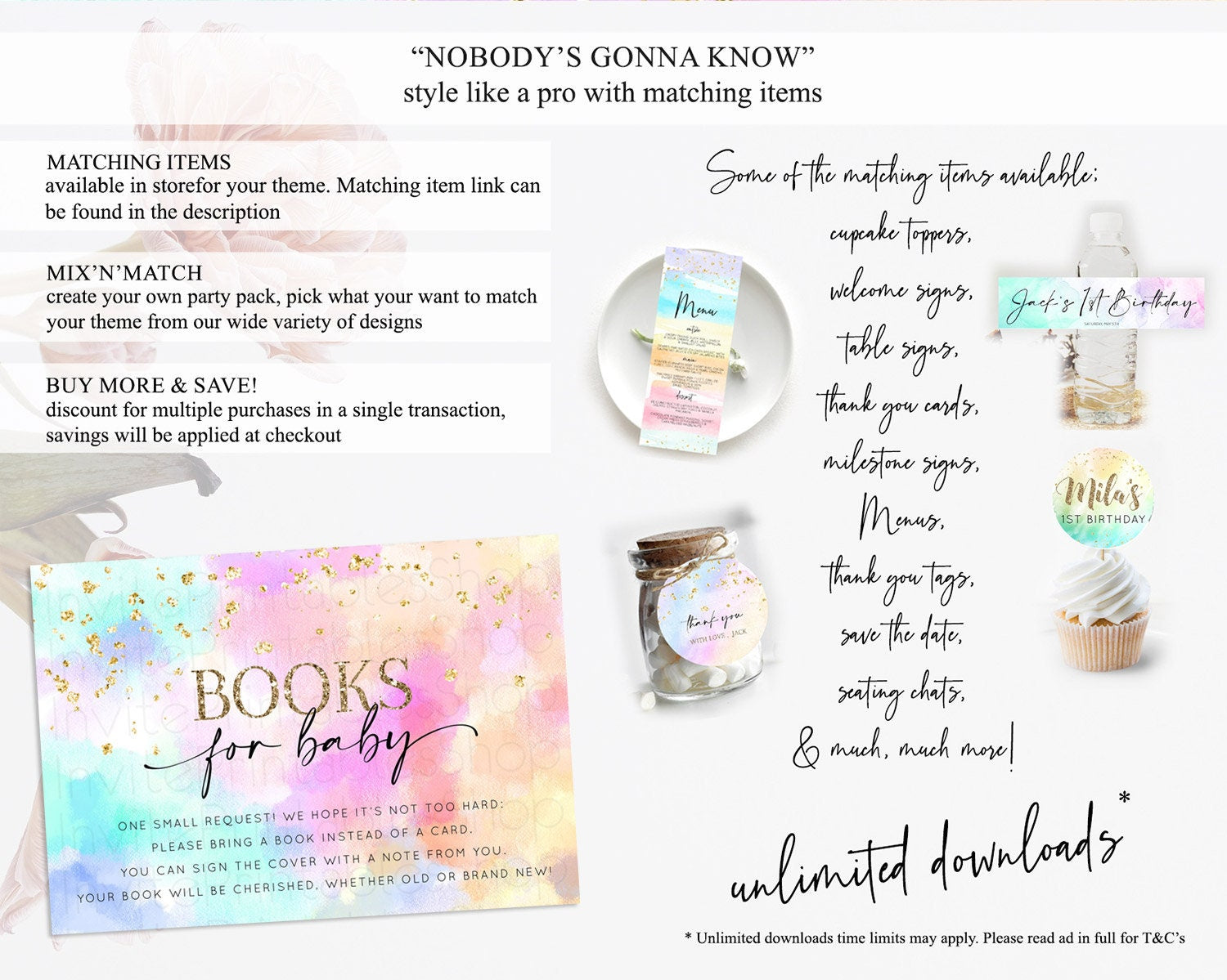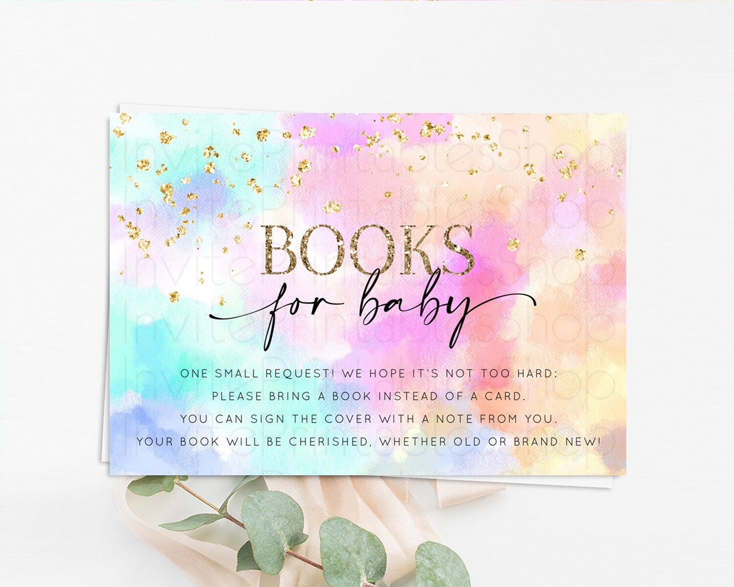 Pastel Books For Baby Card Pastel Rainbow Book Insert Colorful Ombre Watercolor Book Card Confetti Glitter Baby Book Poem Request D10667