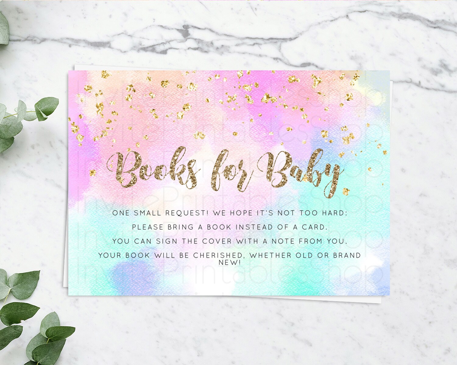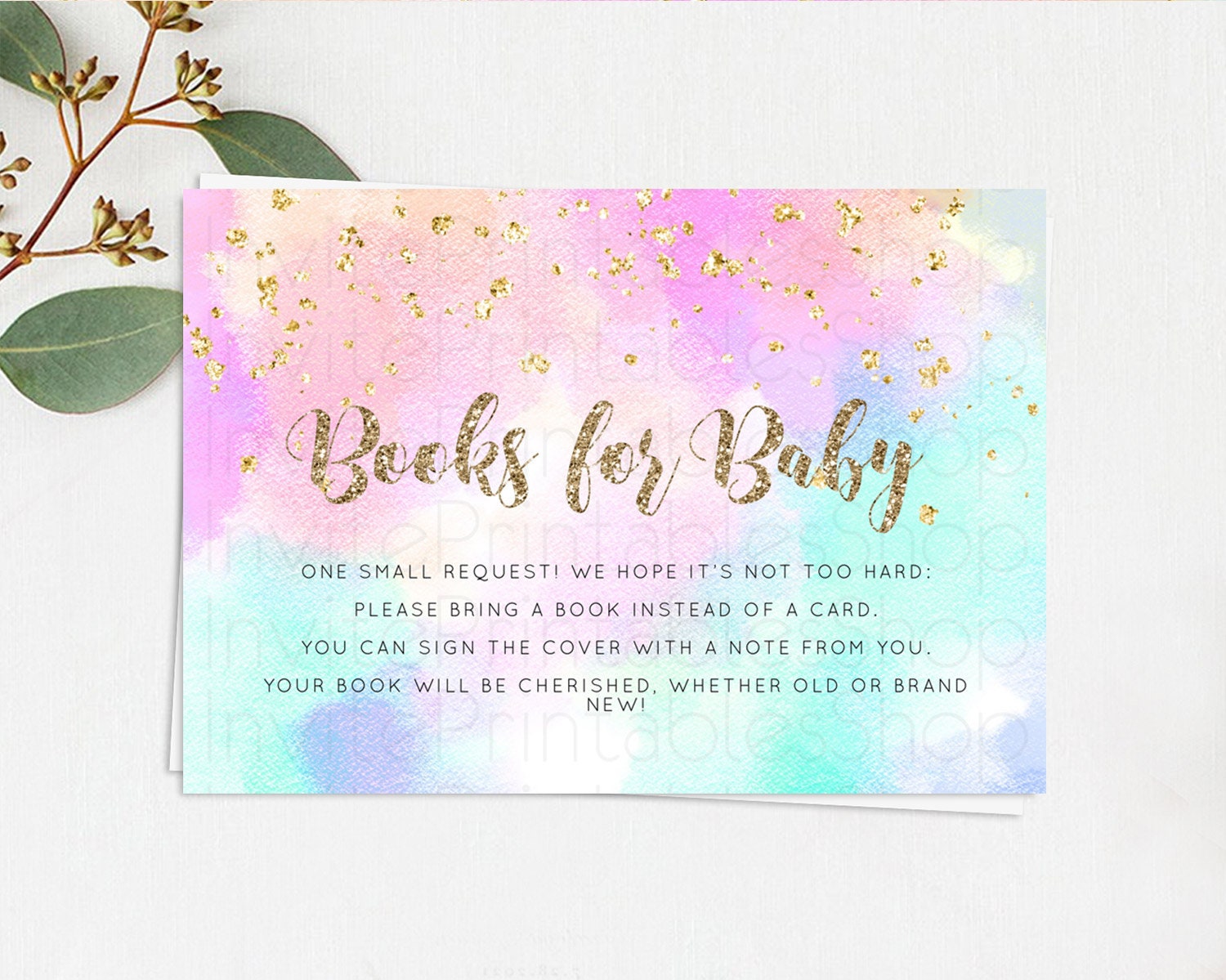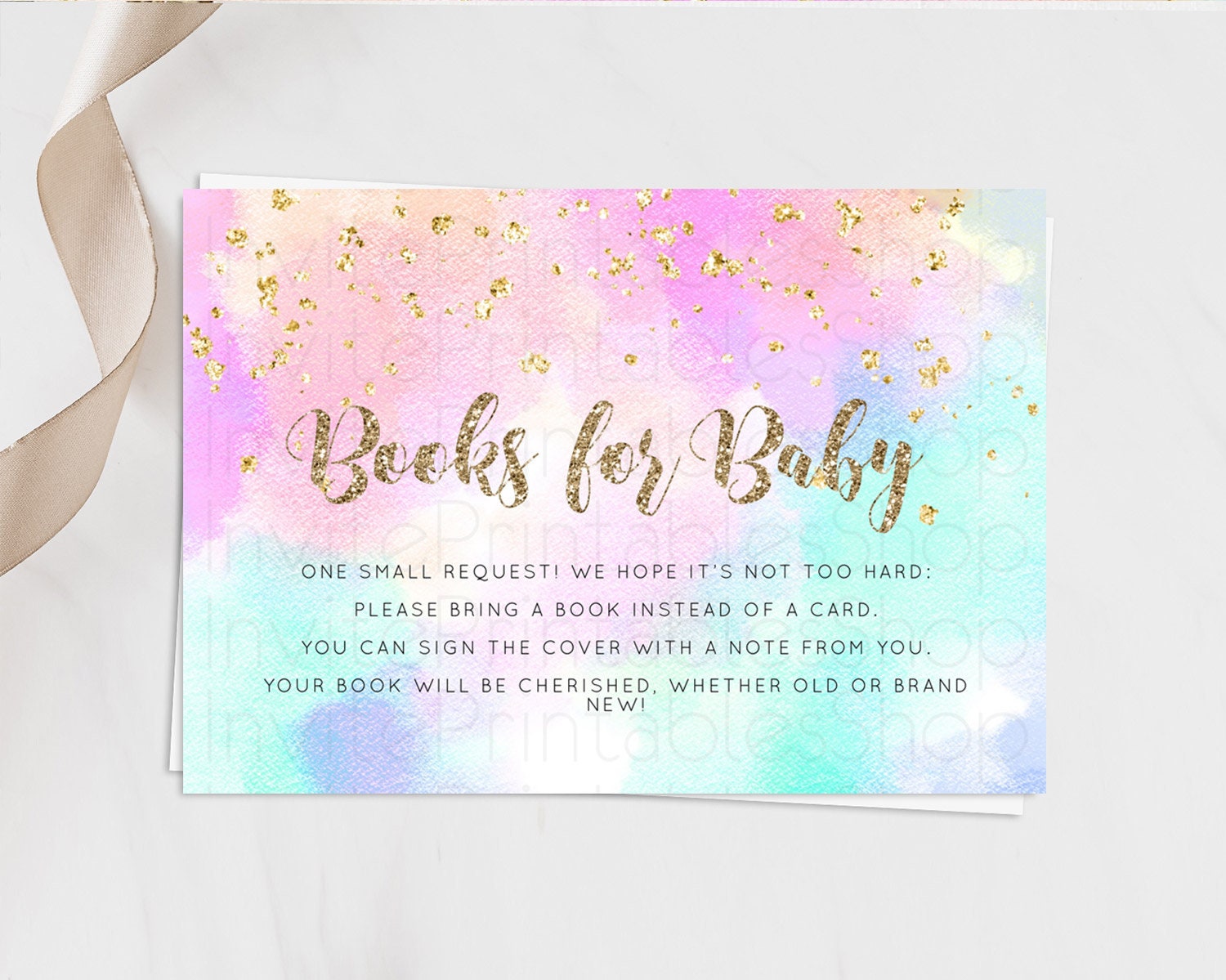 Pastel Books For Baby Card Pastel Rainbow Book Insert Colorful Ombre Watercolor Book Card Confetti Glitter Baby Book Poem Request D10669