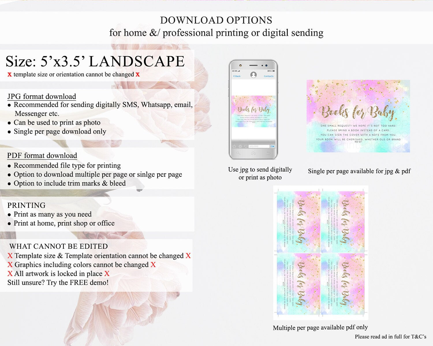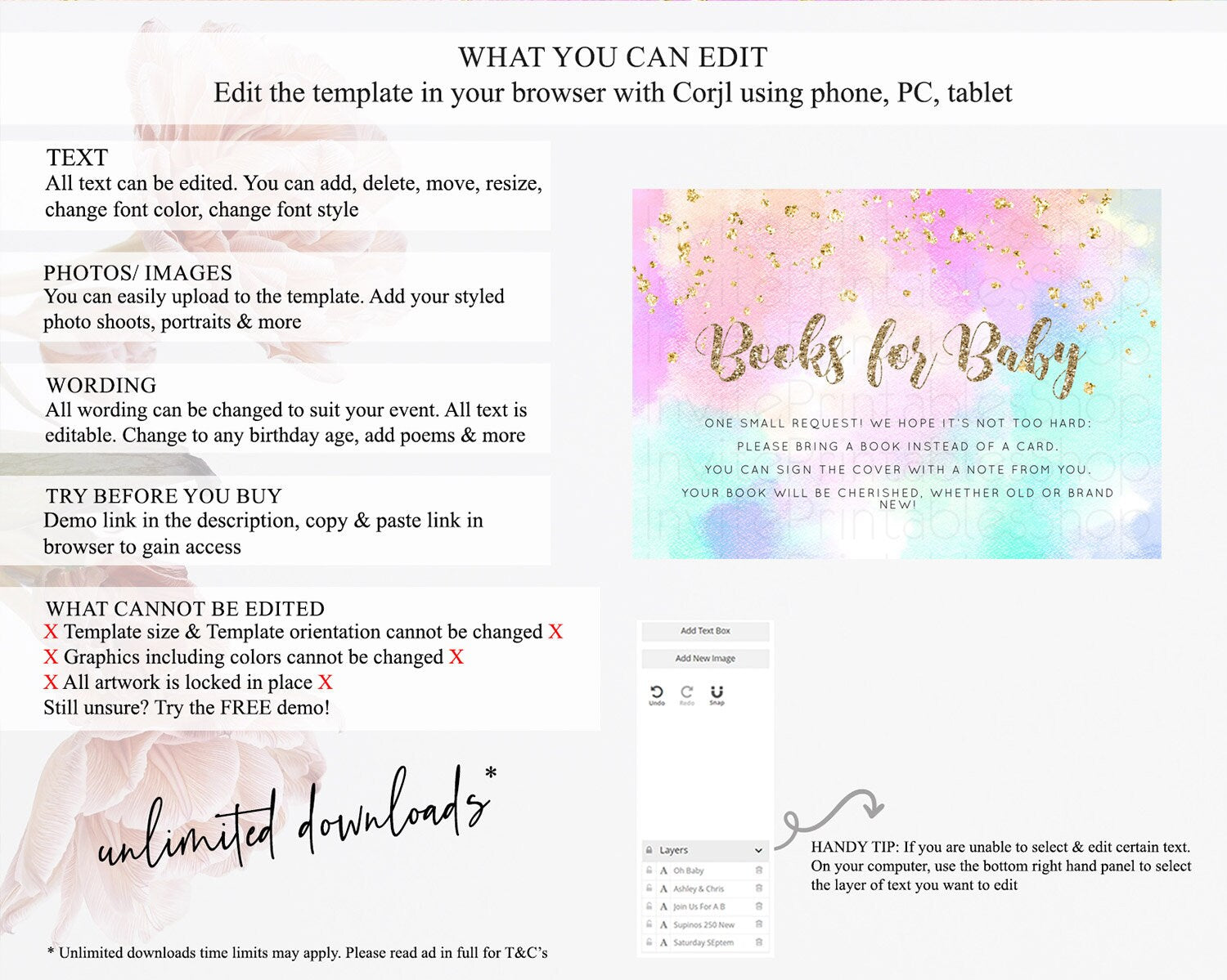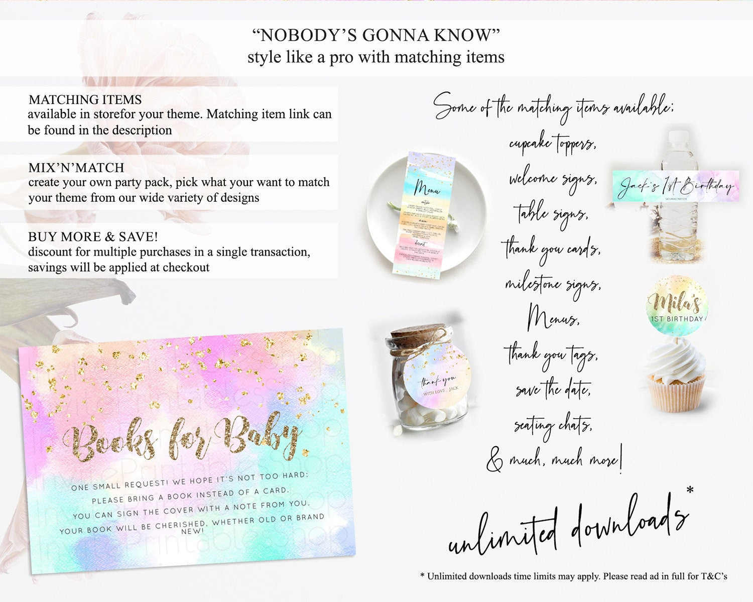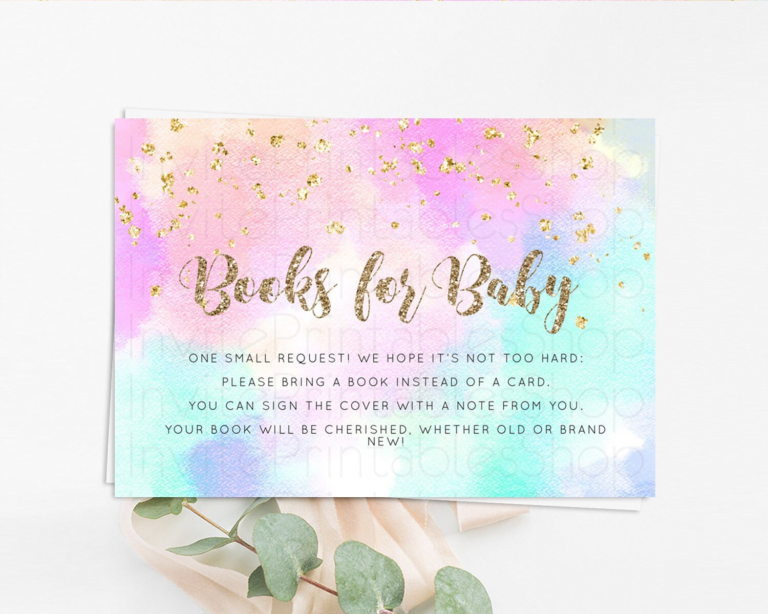 Pastel Books For Baby Card Pastel Rainbow Book Insert Colorful Ombre Watercolor Book Card Confetti Glitter Baby Book Poem Request D10669