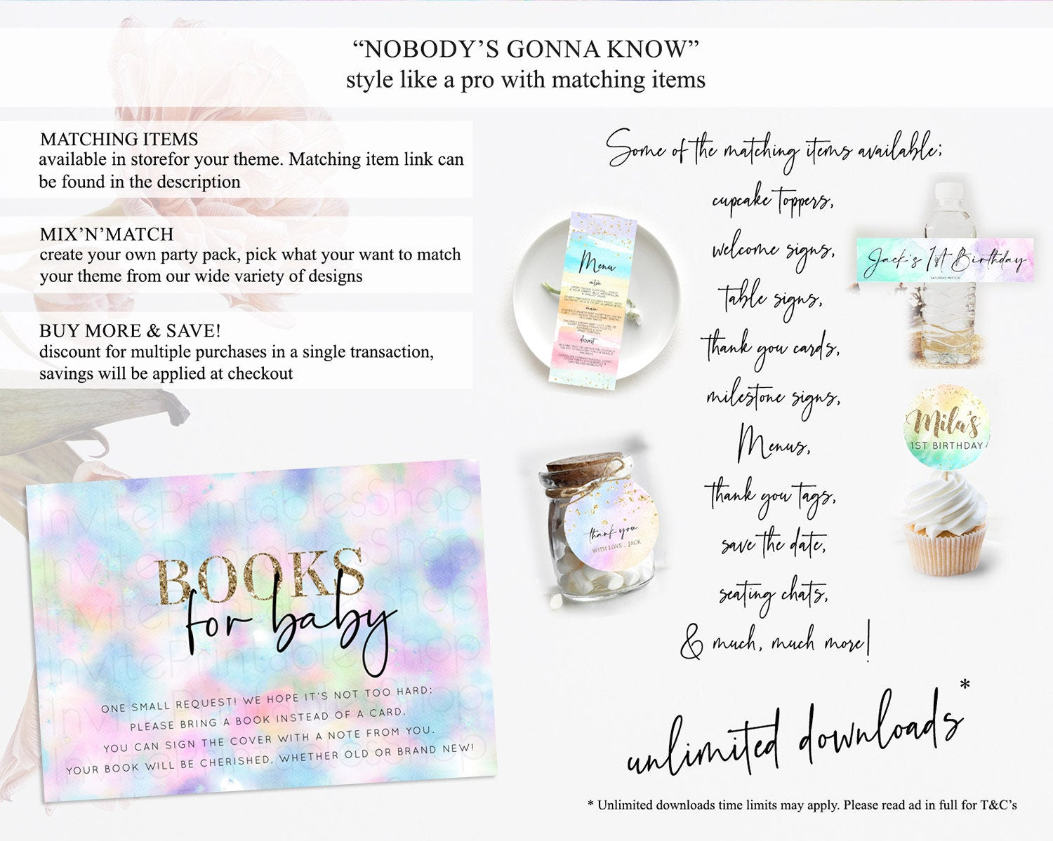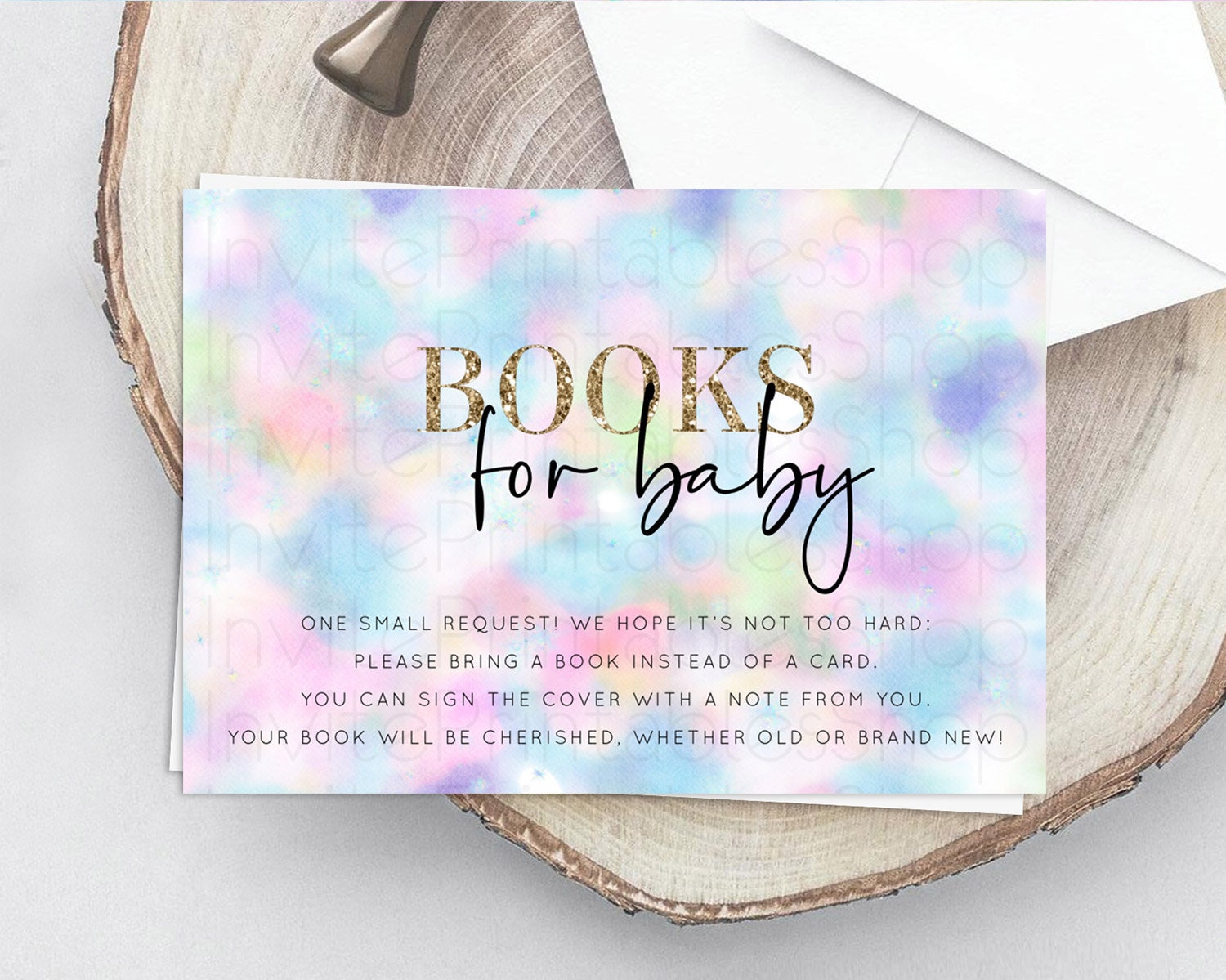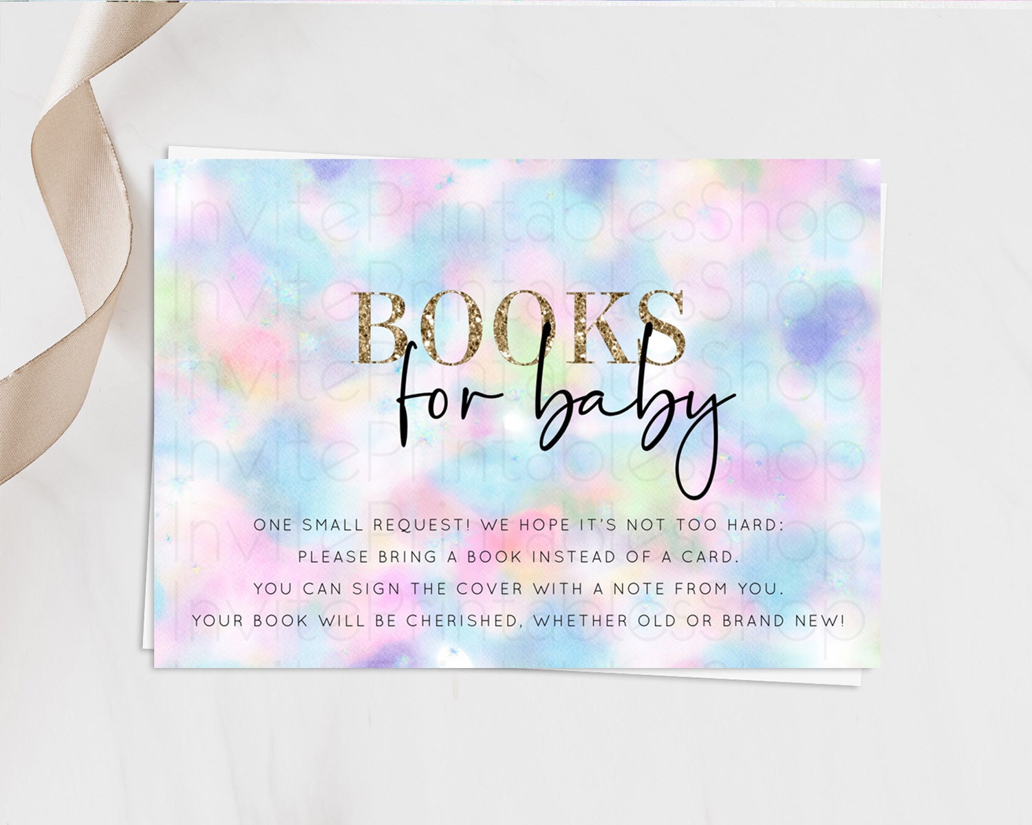 Pastel Books For Baby Card Pastel Rainbow Book Insert Colorful Ombre Watercolor Book Card Confetti Glitter Baby Book Poem Request D10694