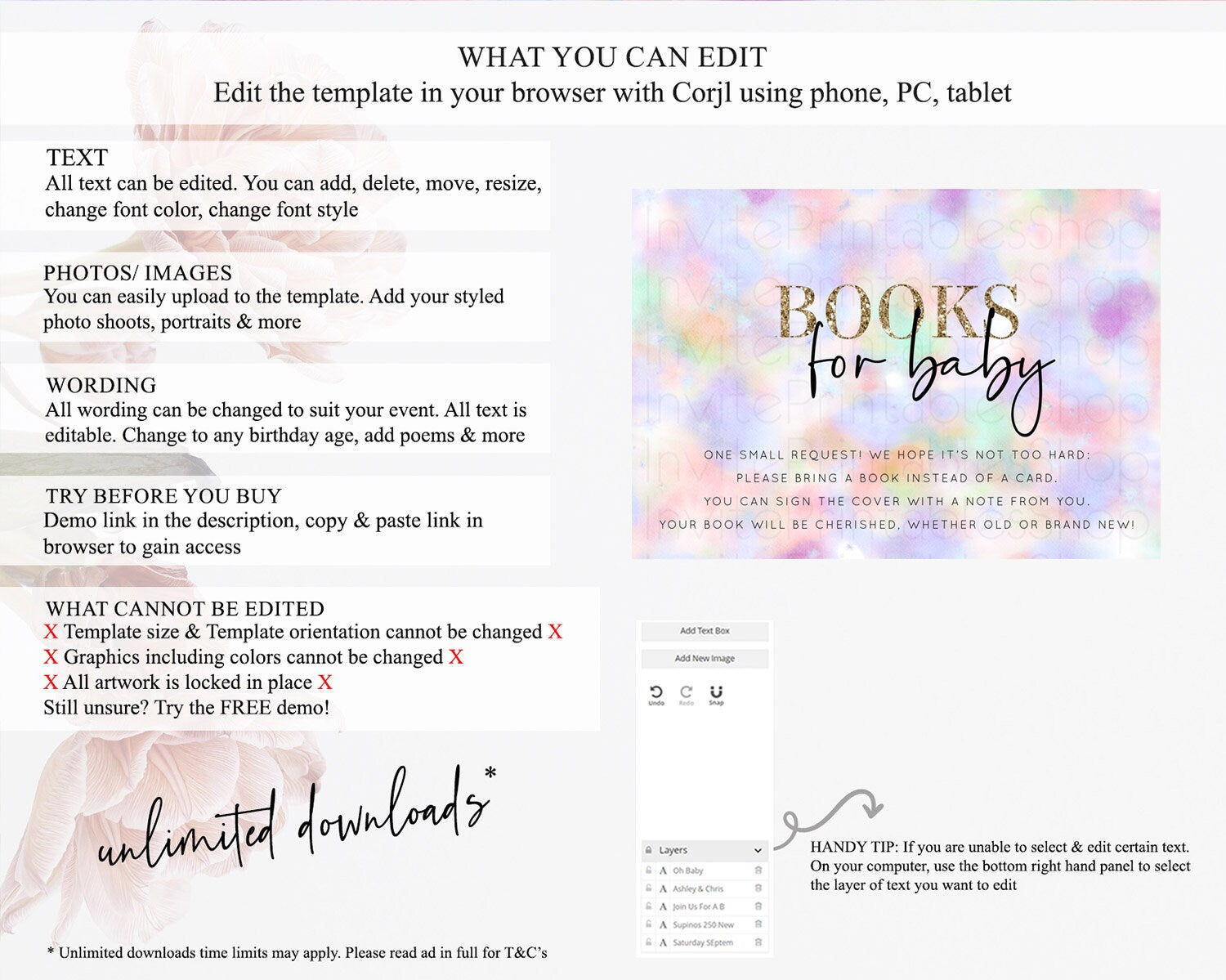 • After purchase, Corjl emails your editing link. Allow up to 15 minutes for delivery.
