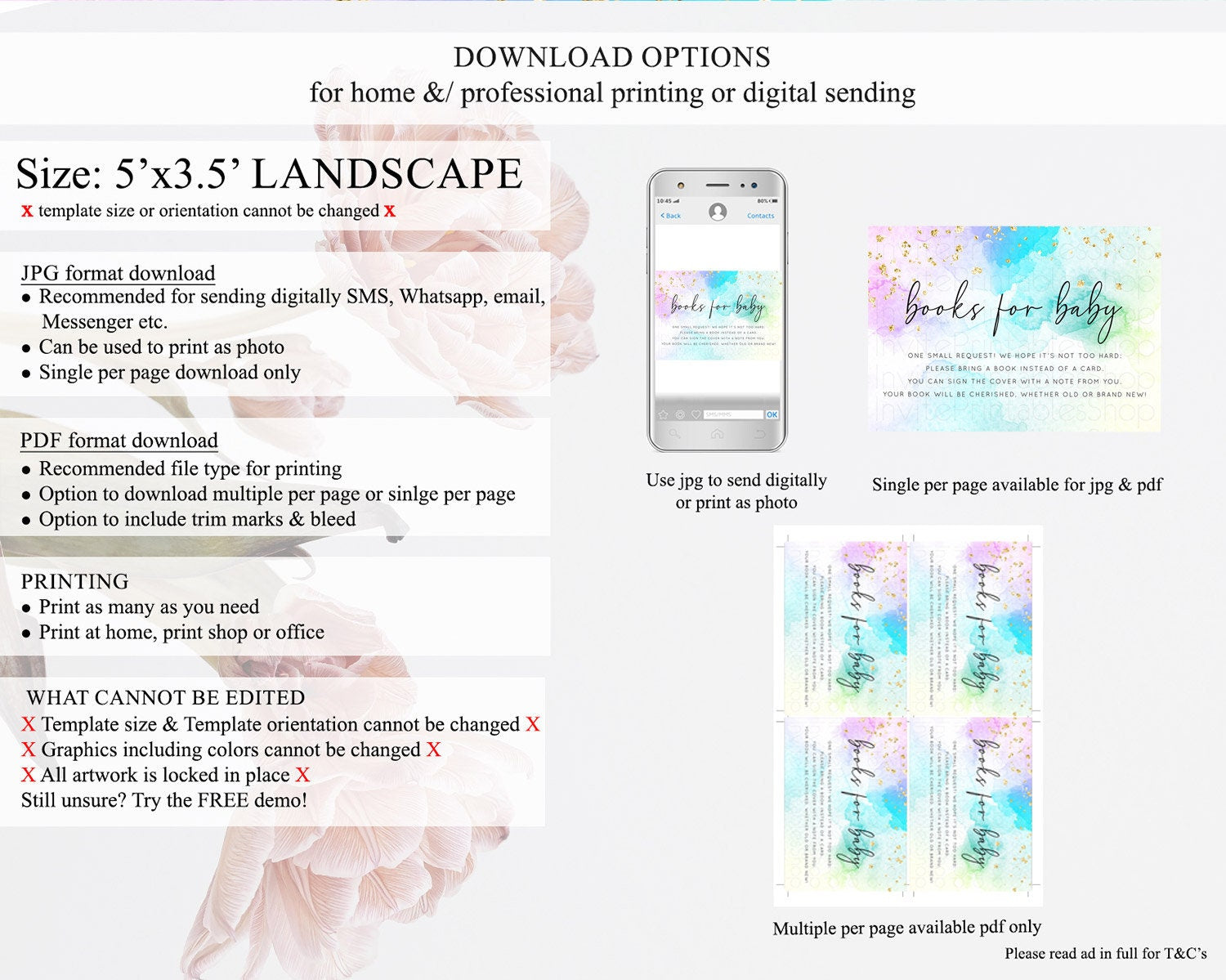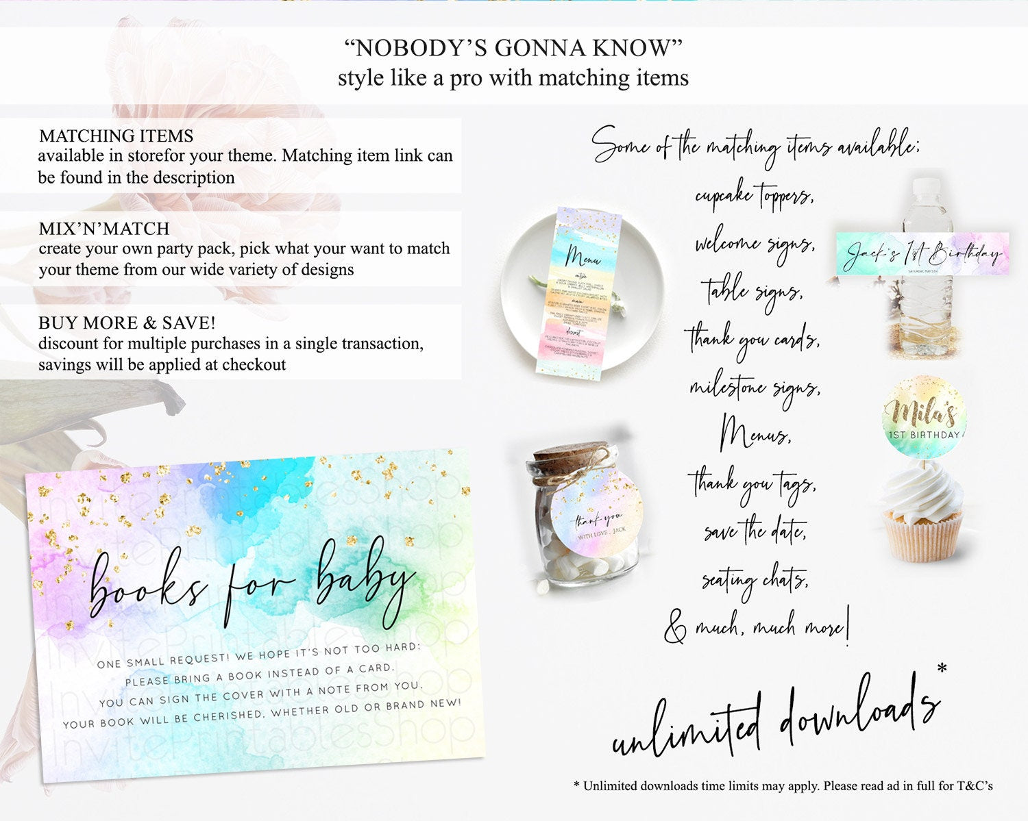 Pastel Books For Baby Card Pastel Rainbow Book Insert Colorful Ombre Watercolor Book Card Confetti Glitter Baby Book Poem Request D10771