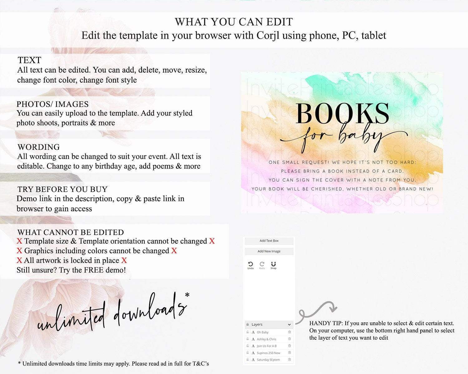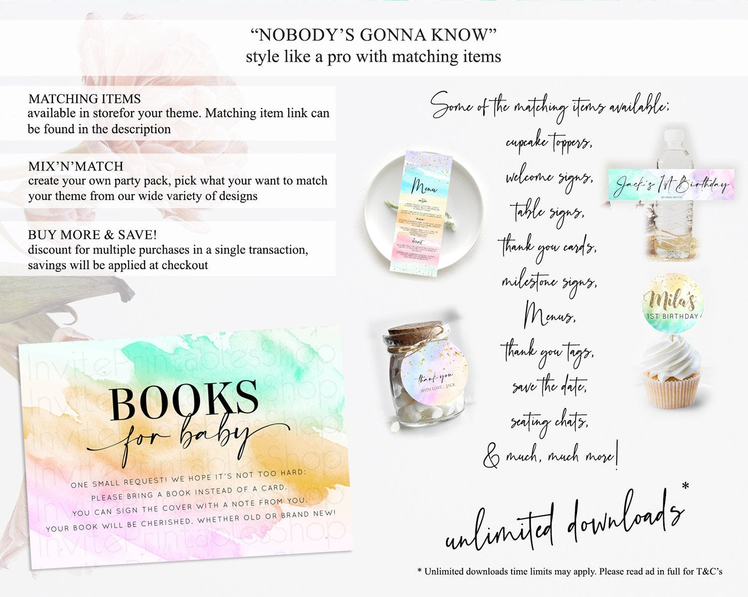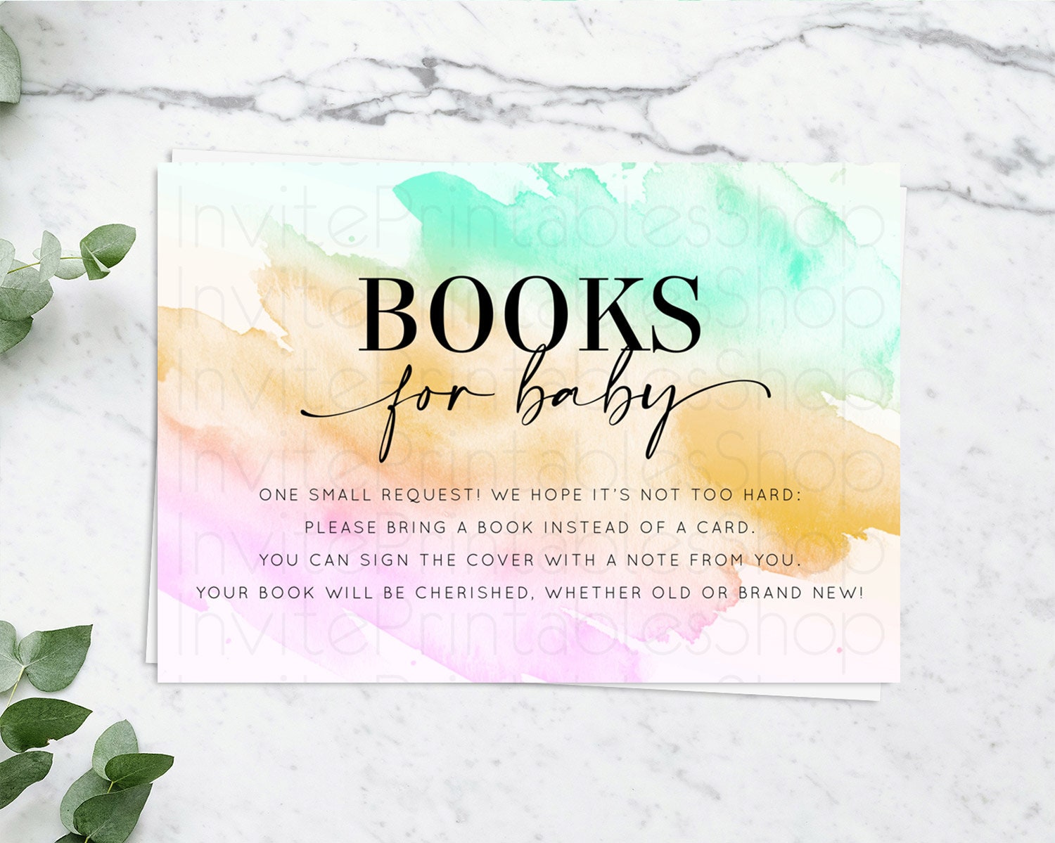 Pastel Books For Baby Card Pastel Rainbow Book Insert Colorful Ombre Watercolor Book Card Confetti Glitter Baby Book Poem Request D10962